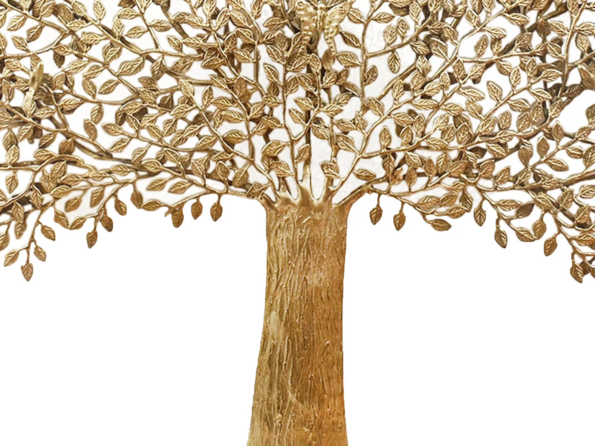 It is said that a person who can listen to the trees will become wise. The trees whisper but to their favourite person. This majestic brass wall hanging tree made to look like a Banyan tree is a fine depiction, a testament of the age-old battles of life. This simple yet elegant piece depicting full-grown branches, burdened with leaves symbolise patience and the growth of wisdom with time. The beautiful butterflies sitting on the branches display a vibrant play between various elements of nature. The solid trunk indicated a solid mind which can grasp ever-growing wisdom. This piece a symbol of knowledge and amalgamated with classy style will definitely enhance the look of a royal living room.
