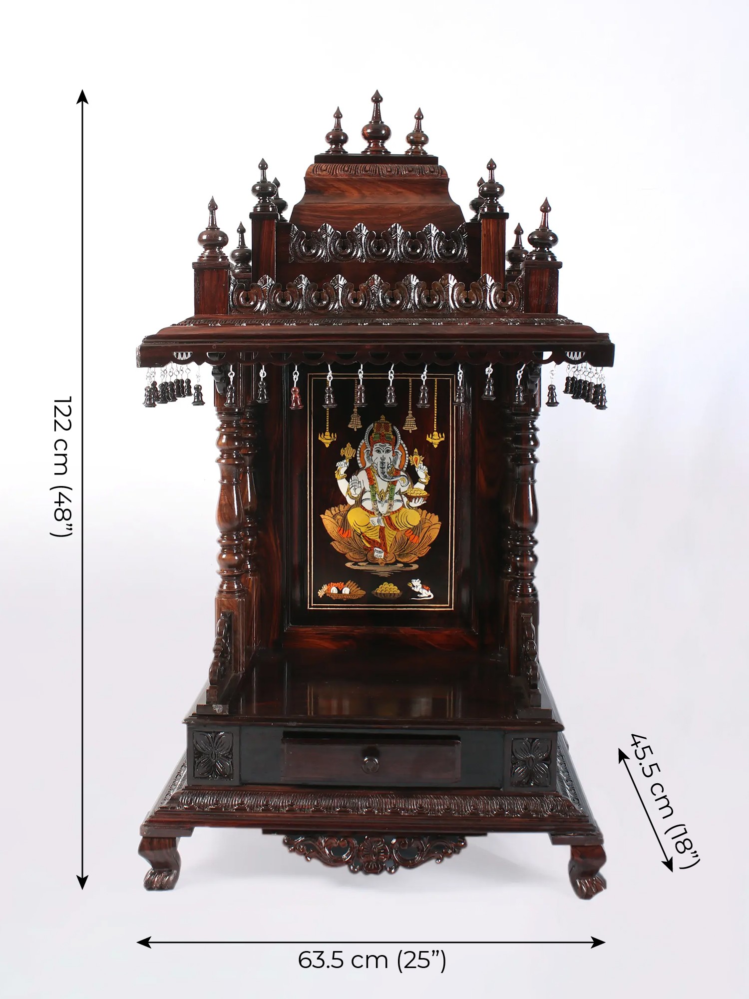 53" Large Designer Wooden Temple with Lord Ganesha Inlay