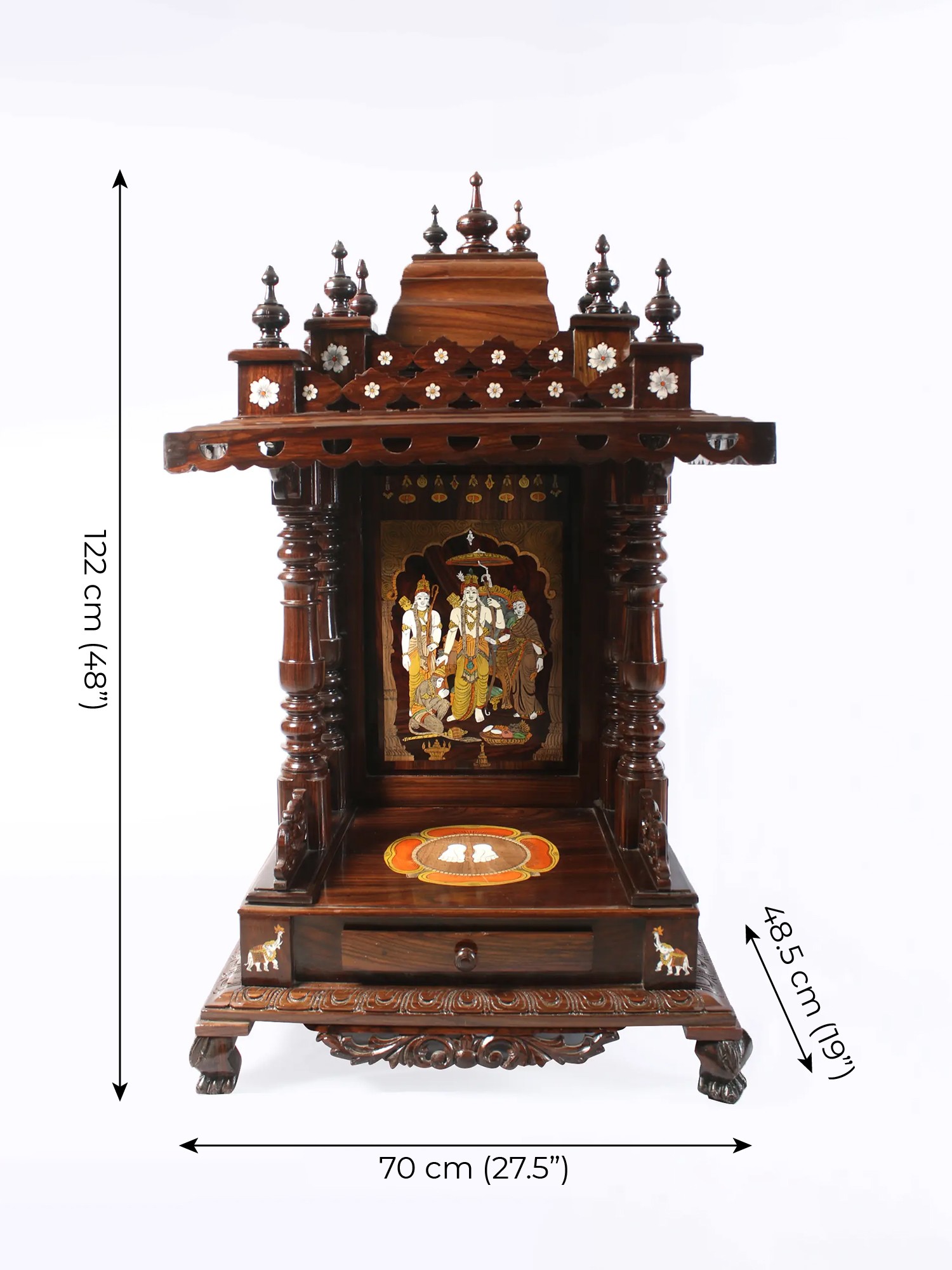 26" Home Temple Altar with Prabhavali and pedestal on Two Elephants Stand
