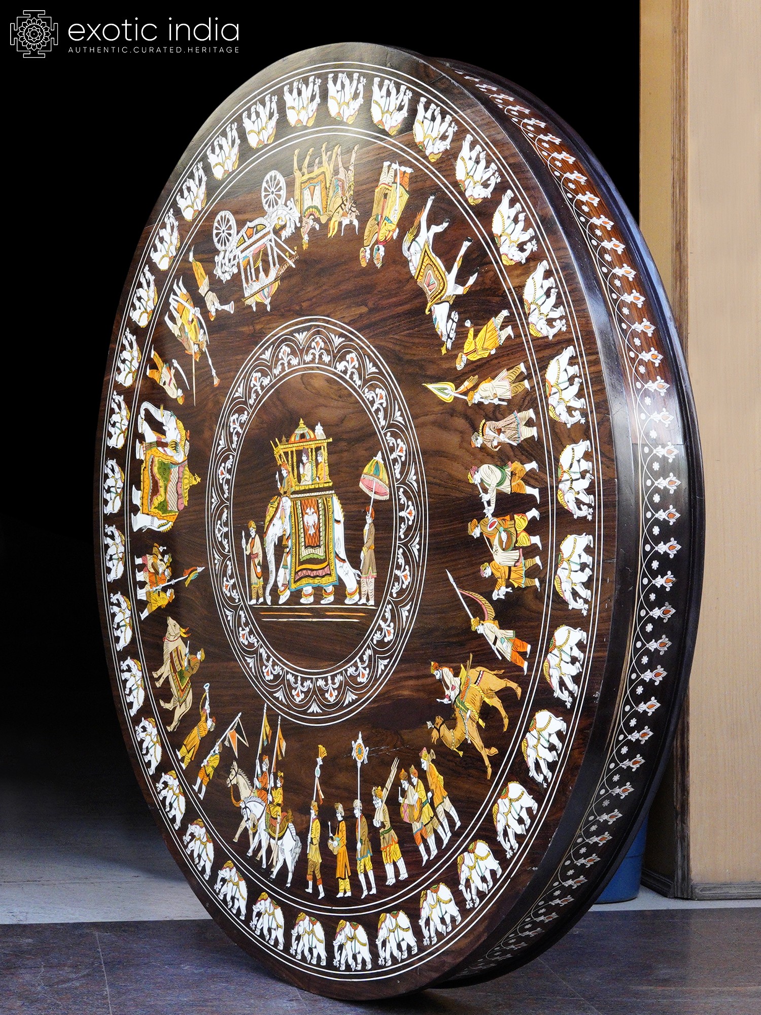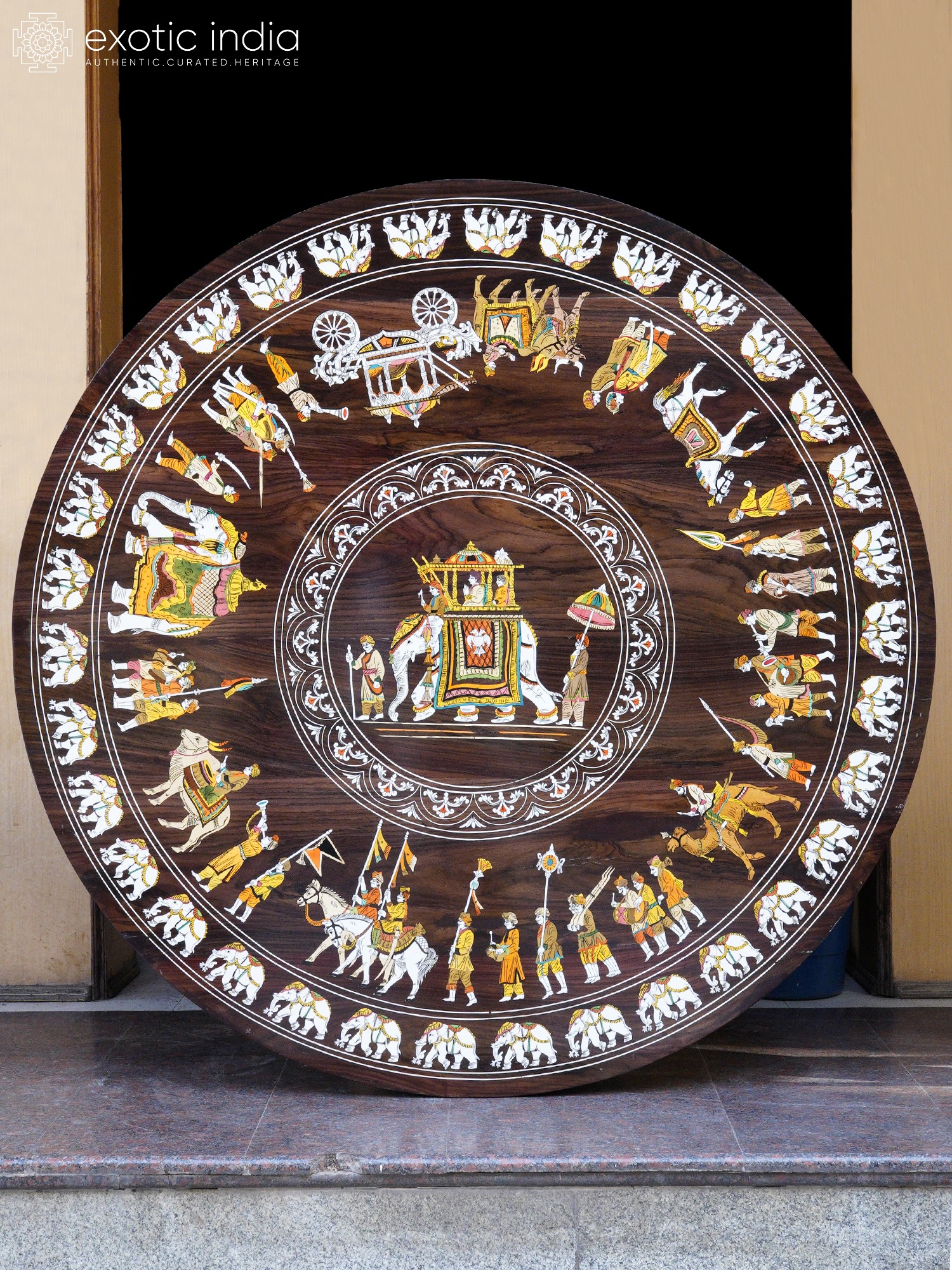 48" Square Table Top with Royal Procession of King | Rosewood Item For Home
