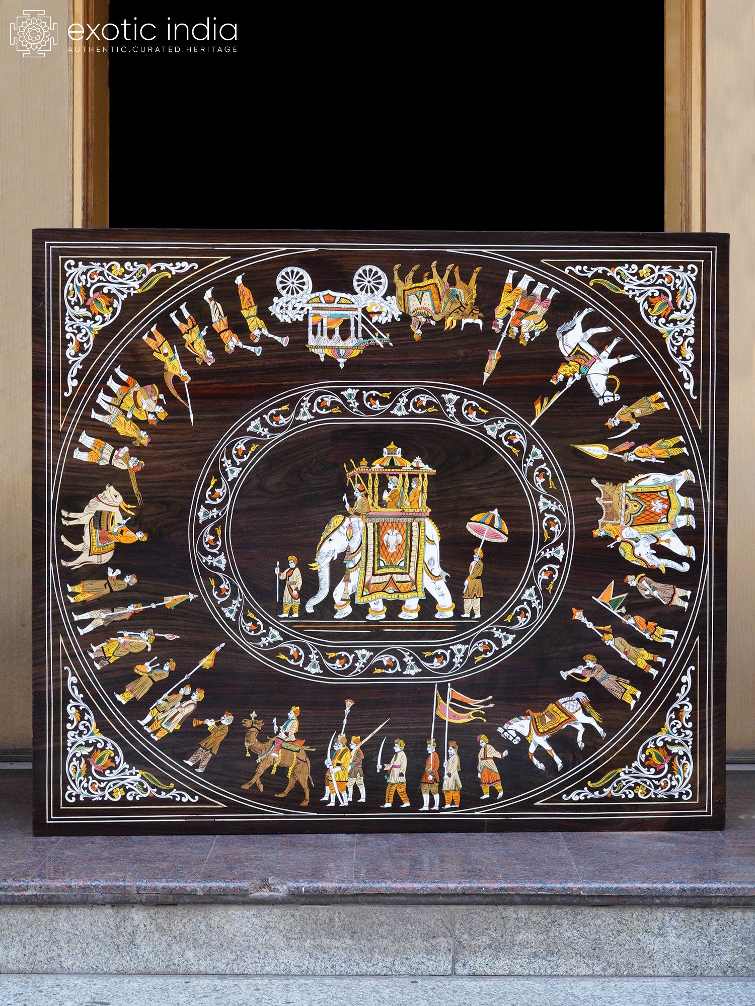 48" Square Table Top with Royal Procession of King | Rosewood Item For Home