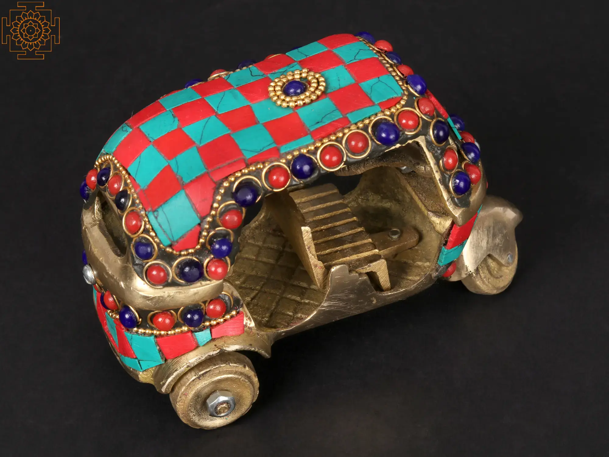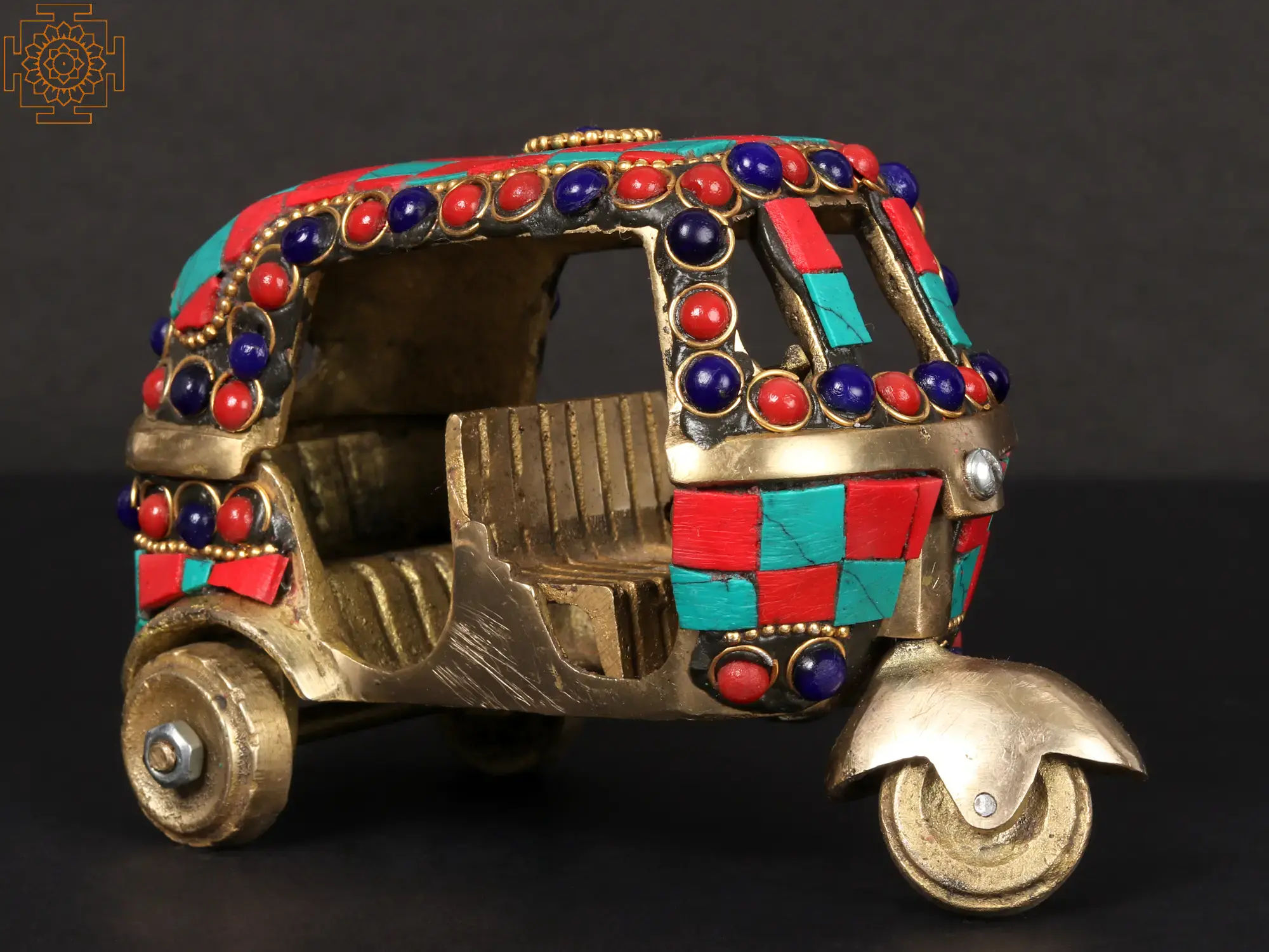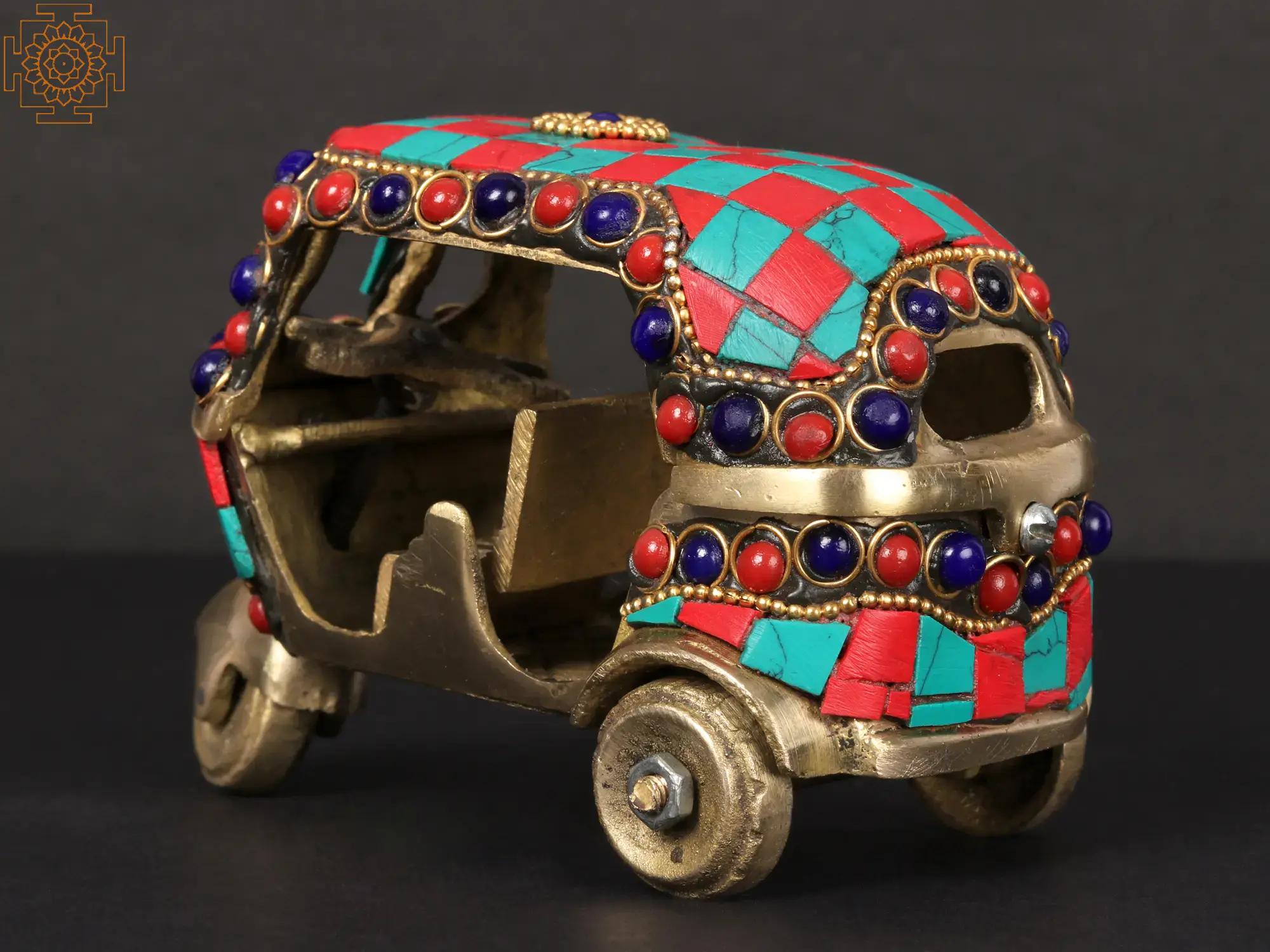 5'' Brass Auto Rickshaw with Inlay Work | Table Decor Item