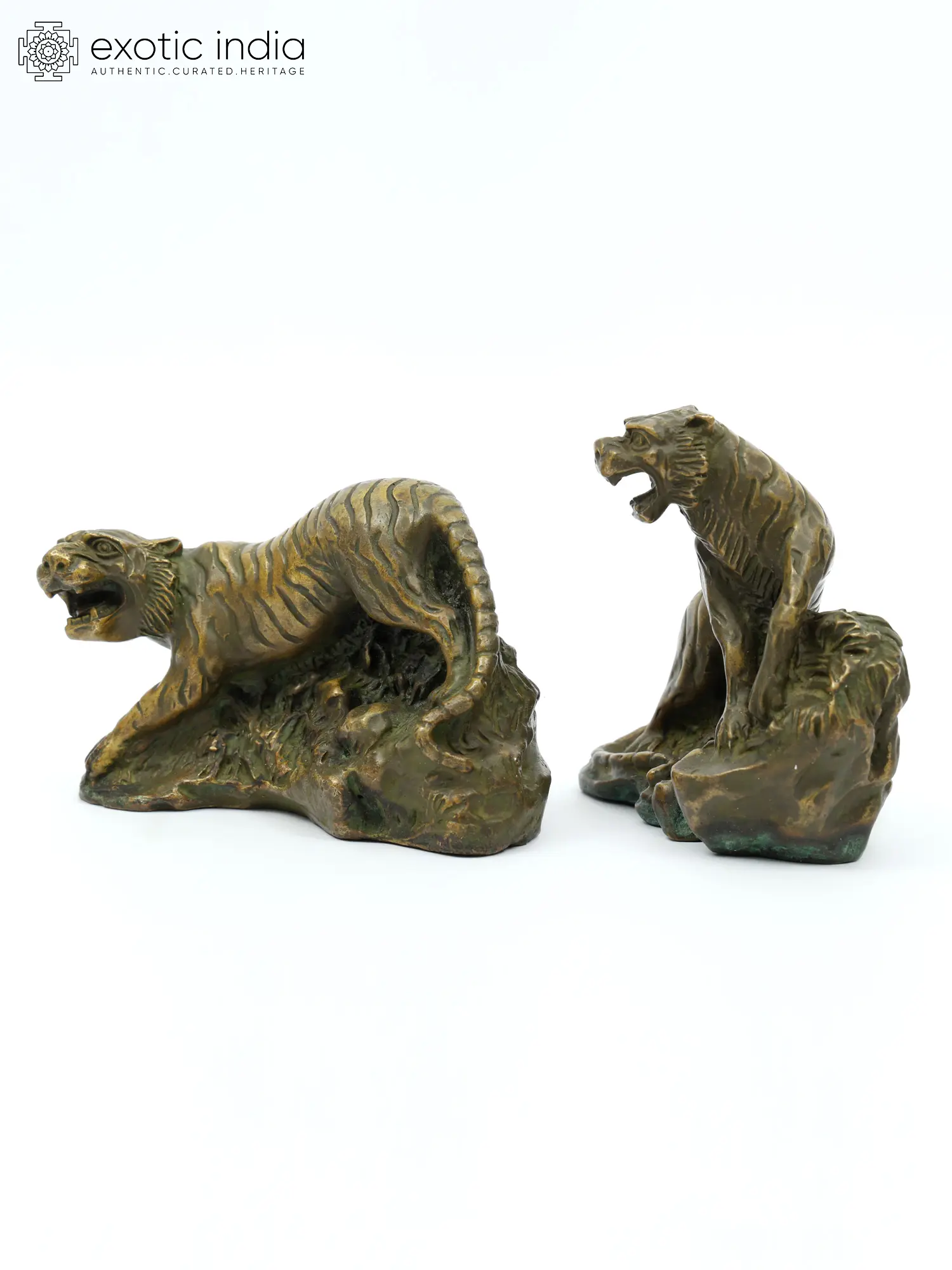 Made from high-quality bronze, each tiger is designed with intricate detailing that highlights its powerful physique, sharp eyes, and muscular form, representing the fierce yet graceful nature of the Bengal tiger.