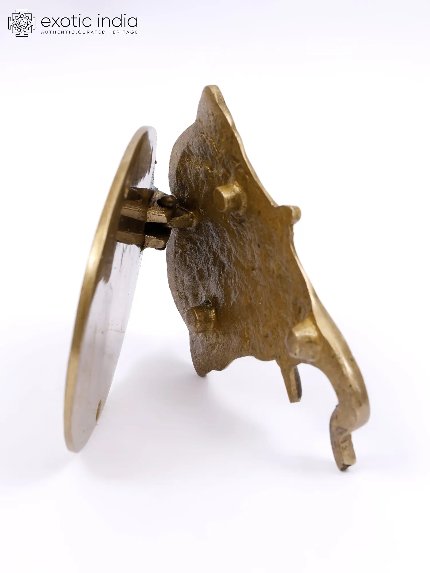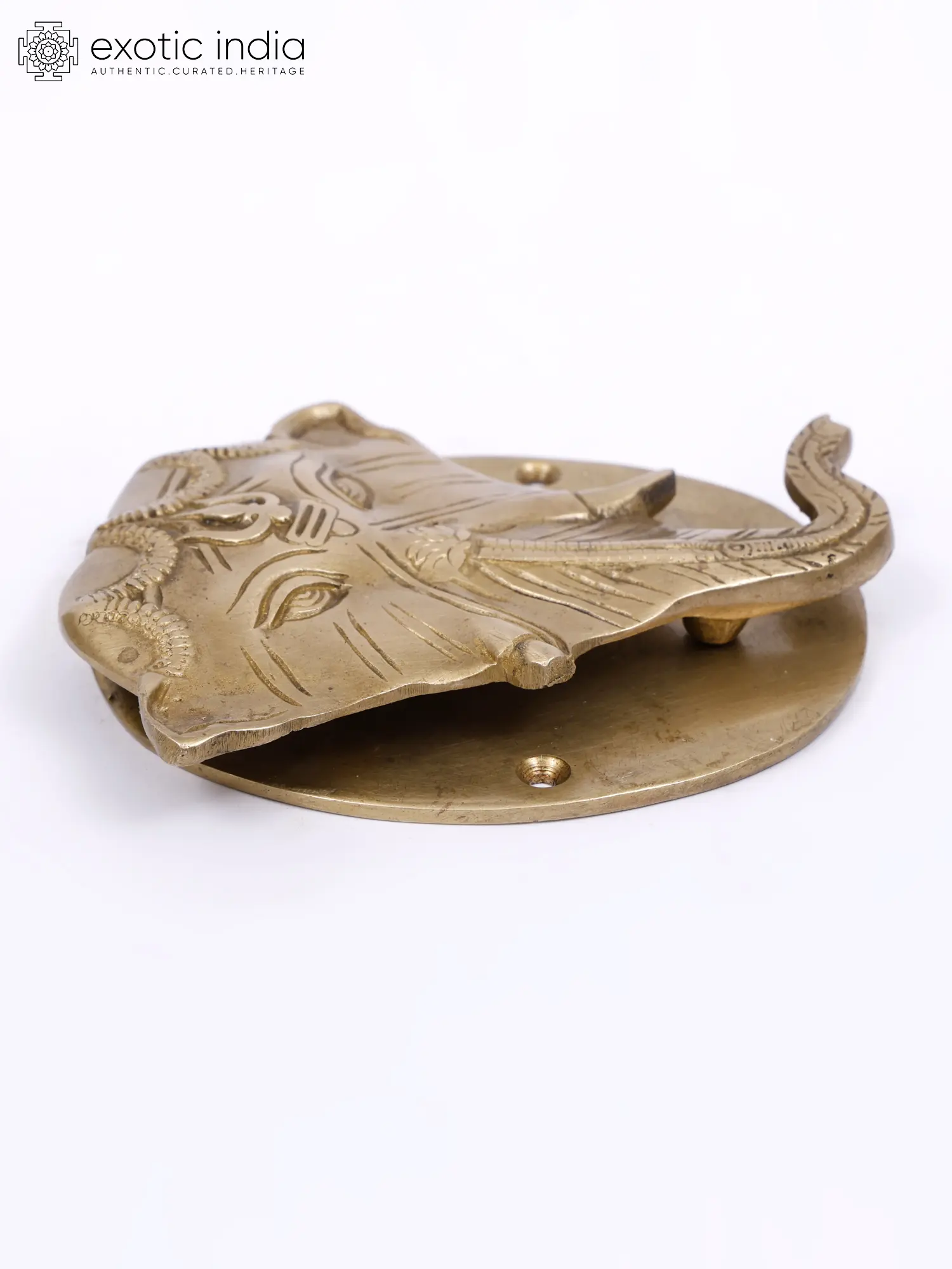 This door knocker is inspired by the similarity and connection between Ganesha and the Peepal leaf. Crafted with pure brass, the knocker features the countenance of Ganesha- with a Trishula (trident) and Tripunda (both marks of Shiva) and a lotus vine adorning him. The eyes of Ganesha are especially animated, making the door knocker a heavenly element to have in any space.