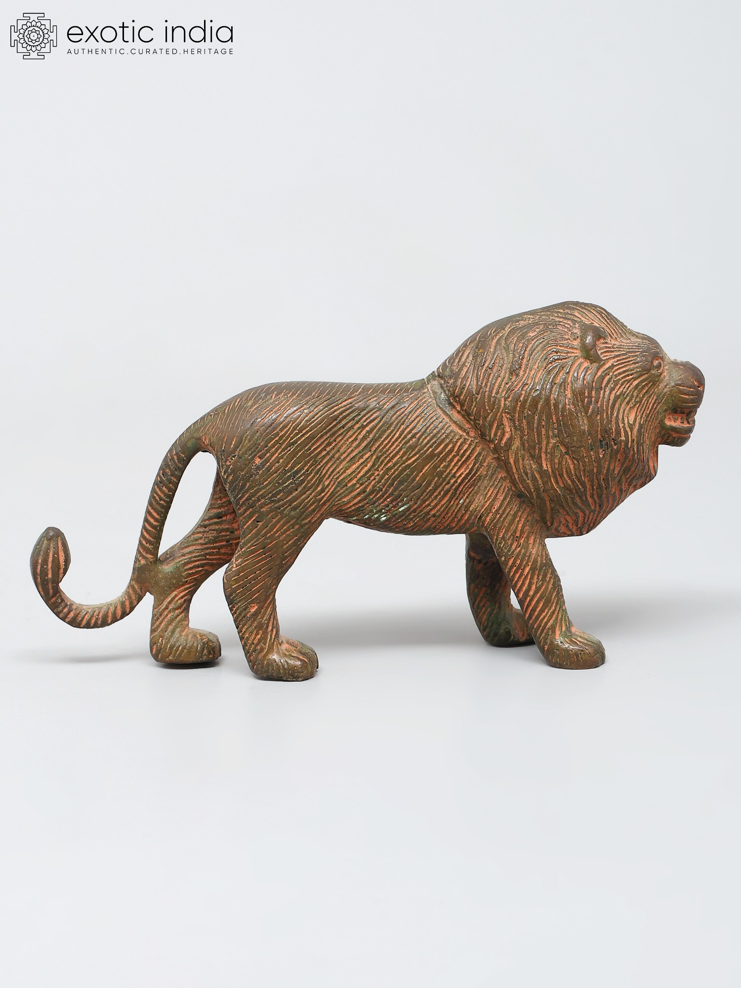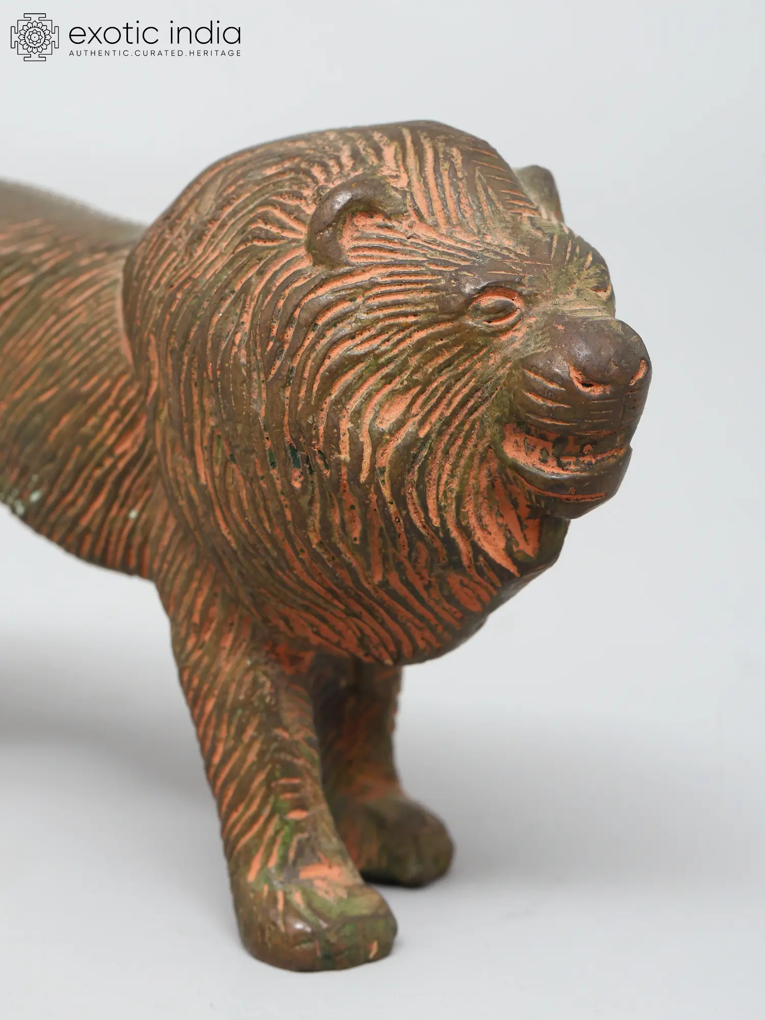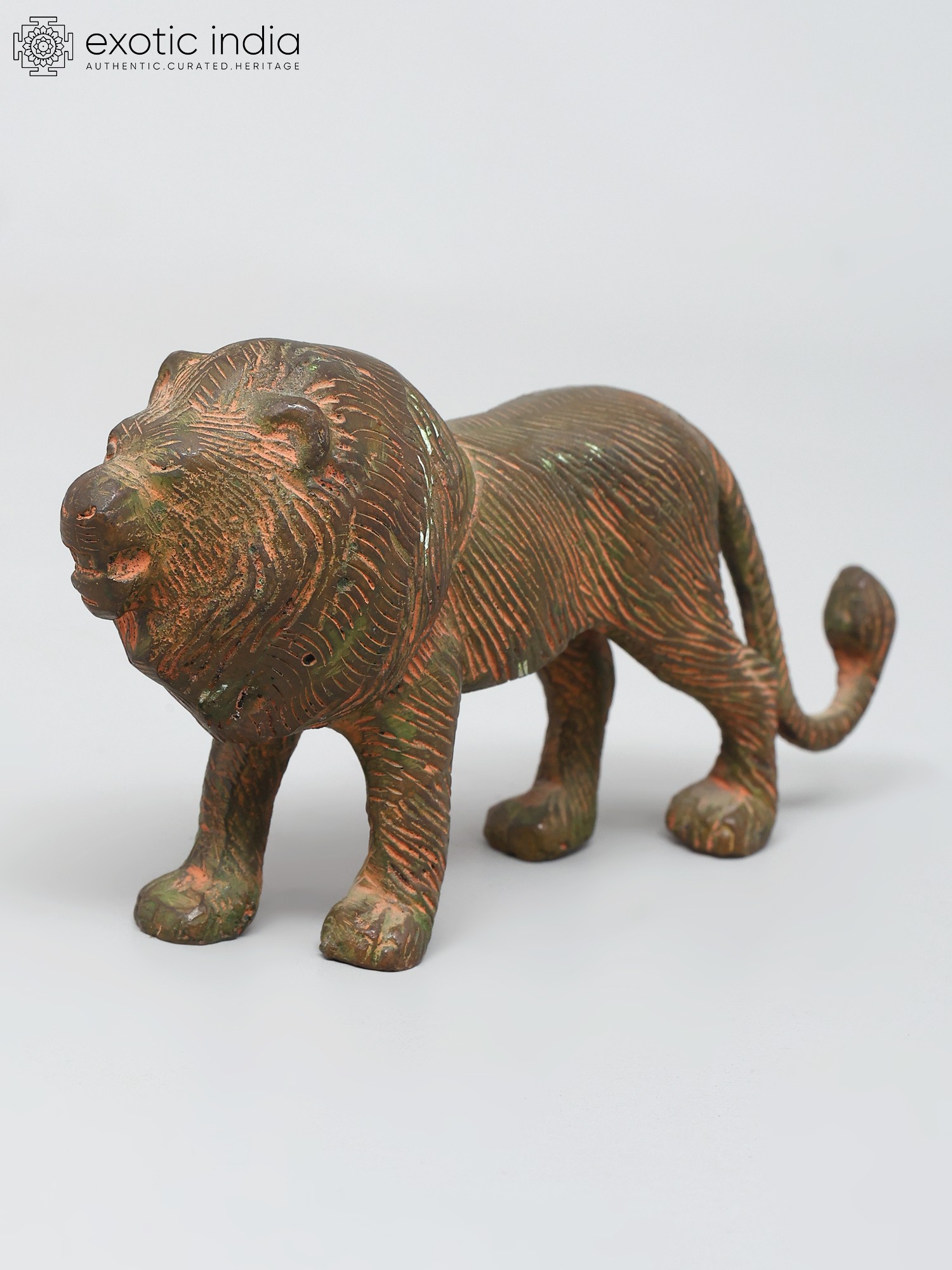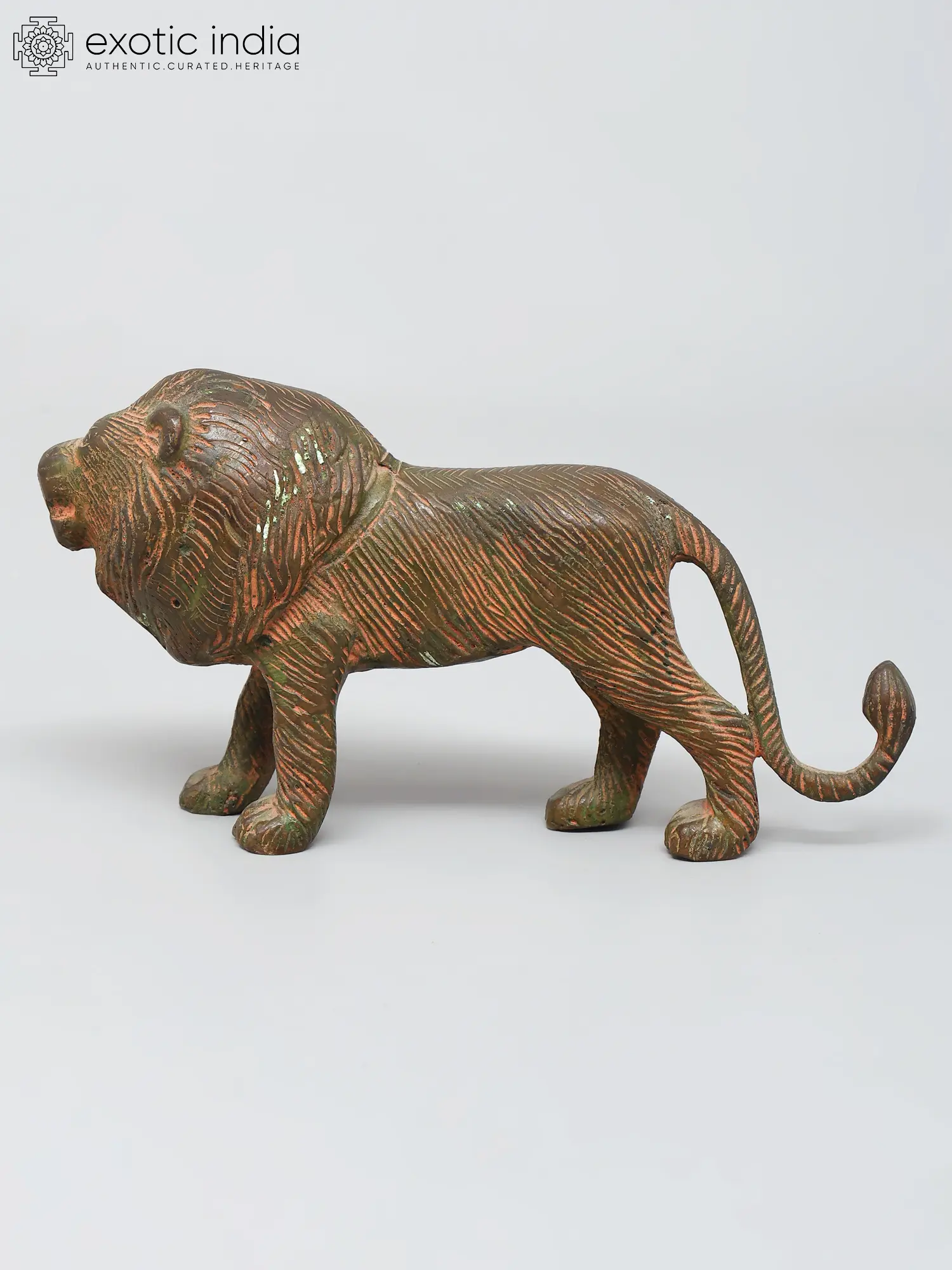 9" Hunter Hunting Lion | Tribal Brass Statue
