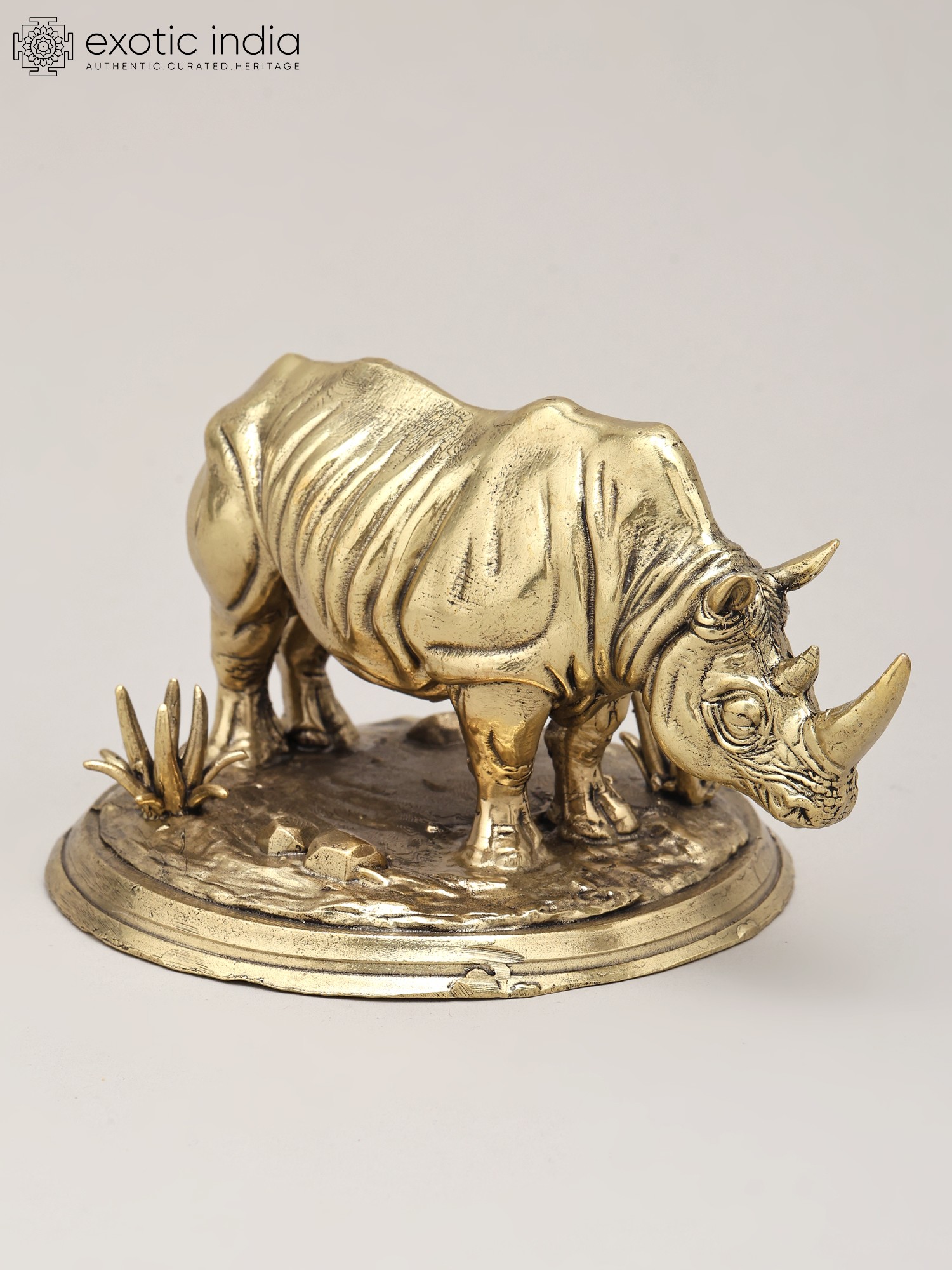 5" Small Superfine Rhinoceros Figurine | Brass Statue | Table Decor