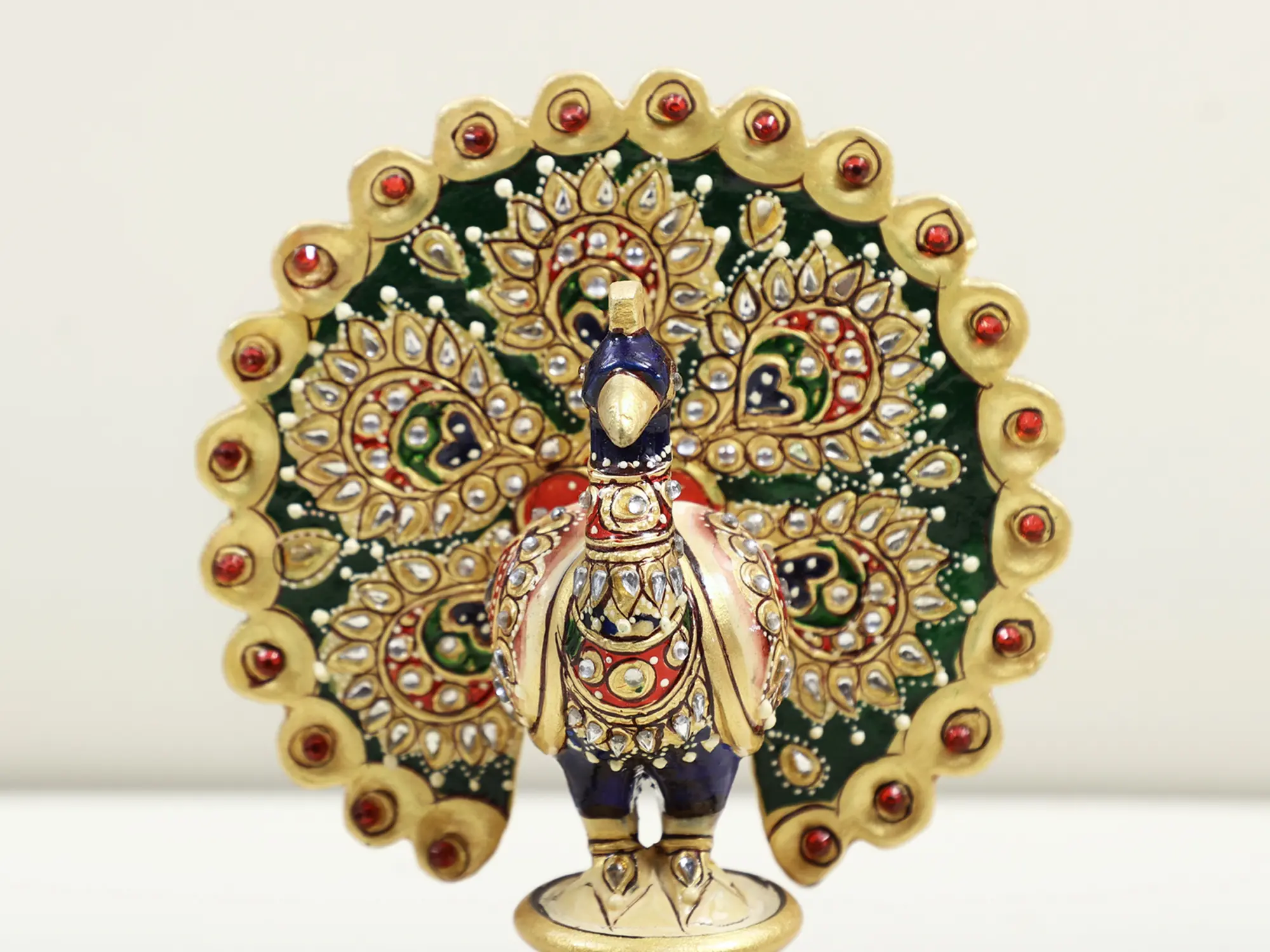 Give a royal touch to your home decor with this artwork, a captivating blend of artistry and nature. This statue has a beautiful finish and appears very classy and appealing. Each meticulously carved detail and vibrant hues tell a story of tradition and craftsmanship. Symbolising grace and beauty, the peacock represents renewal and immortality in various cultures. This wooden masterpiece effortlessly gives a touch of enchantment to any space. Enrich your surroundings with this symbol of allure and sophistication, and invite the spirit of the peacock into your home.