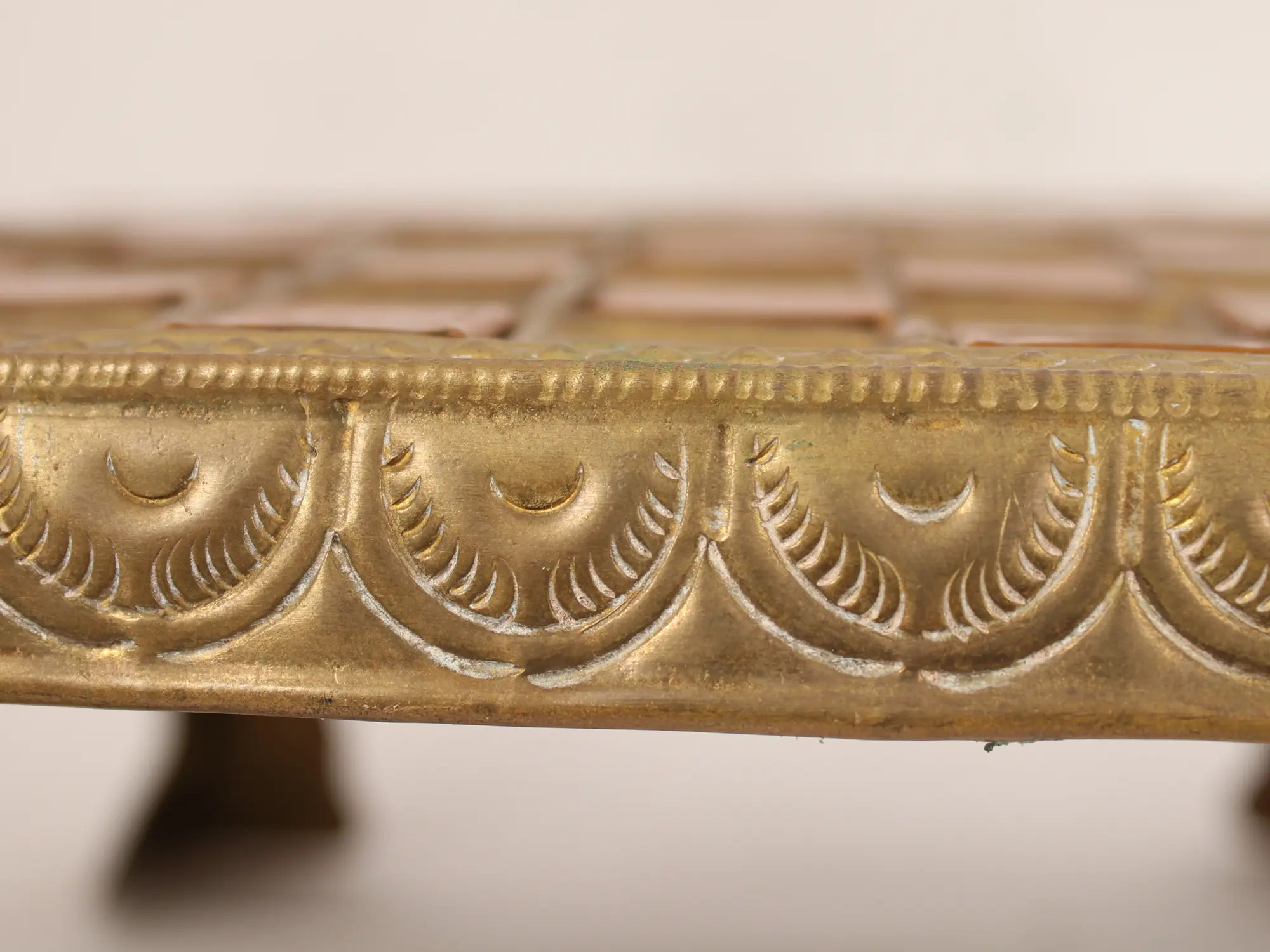 This chowki is crafted with meticulous attention to detail, using a blend of copper and bronze to create a unique and durable design.