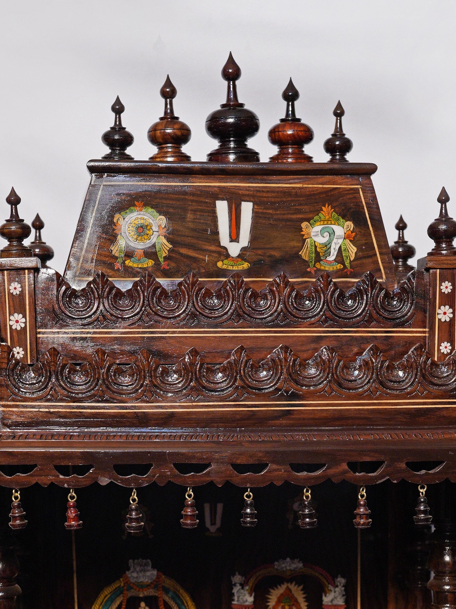 54" Designer Wood Carved Temple with Vaishnava Symbols