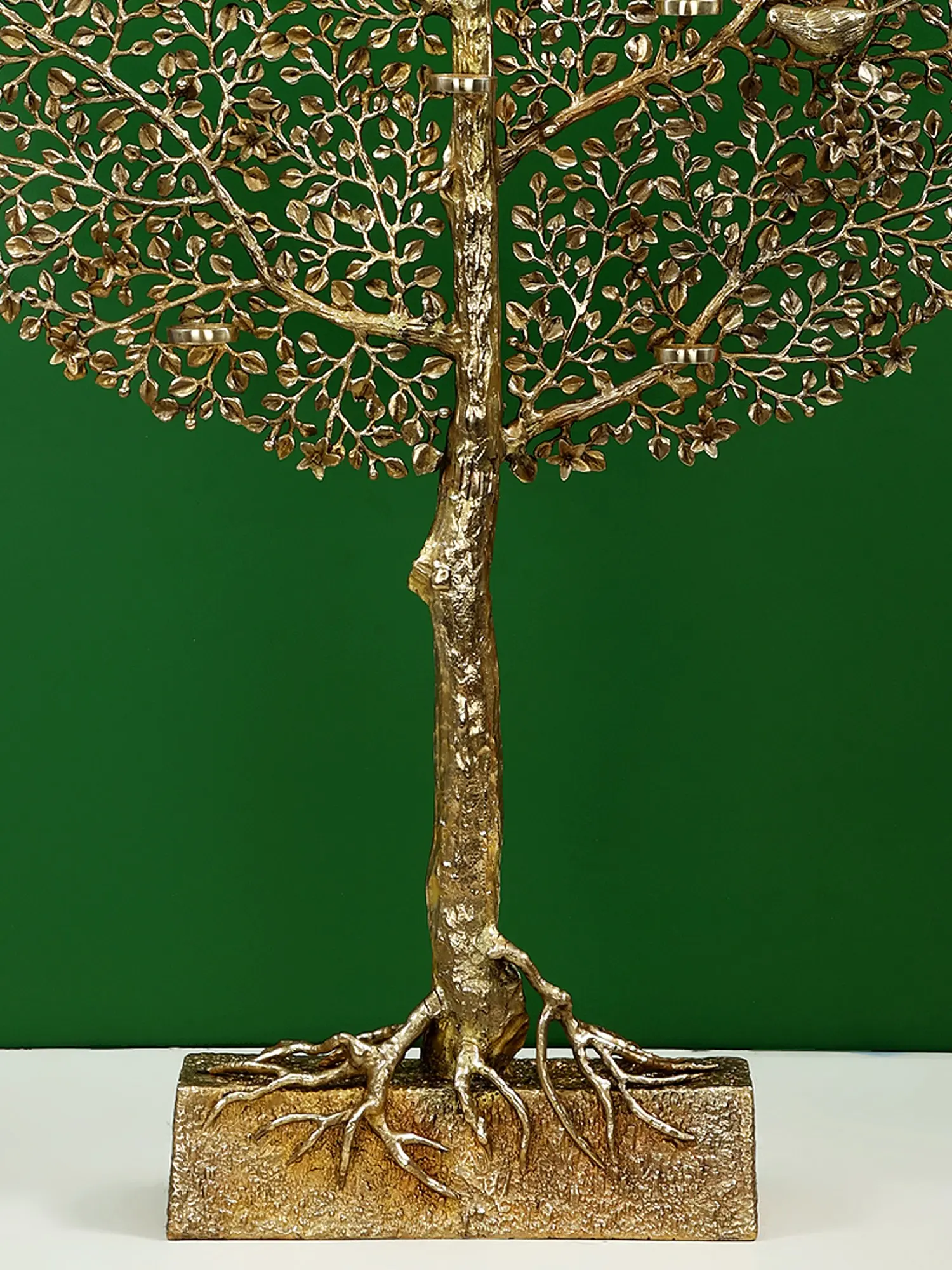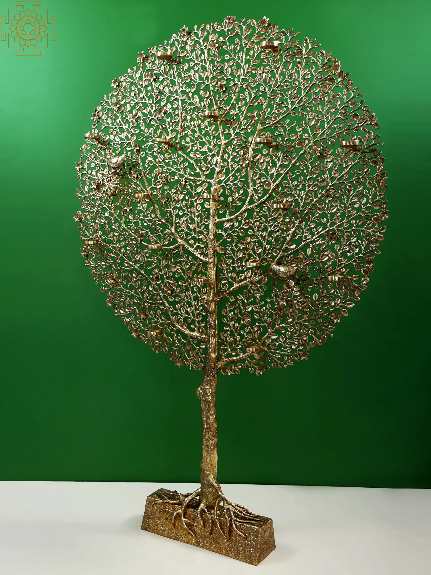 This inventive metal candle holder is fashioned to resemble a lovely tree and has been lovingly crafted to exude beauty and aesthetic finesse. It features the shape of a tree with leafy branches, accentuating grace and upward growth. The sculpture comes with seventeen candle holders that illuminate all directions at once. When we light the candles, they are arranged skillfully on the tree to optimise light reflection and look like multiple stars in the sky. The birds preaching on the branches symbolise harmony. This also depicts light's capacity to bring attention to objects.