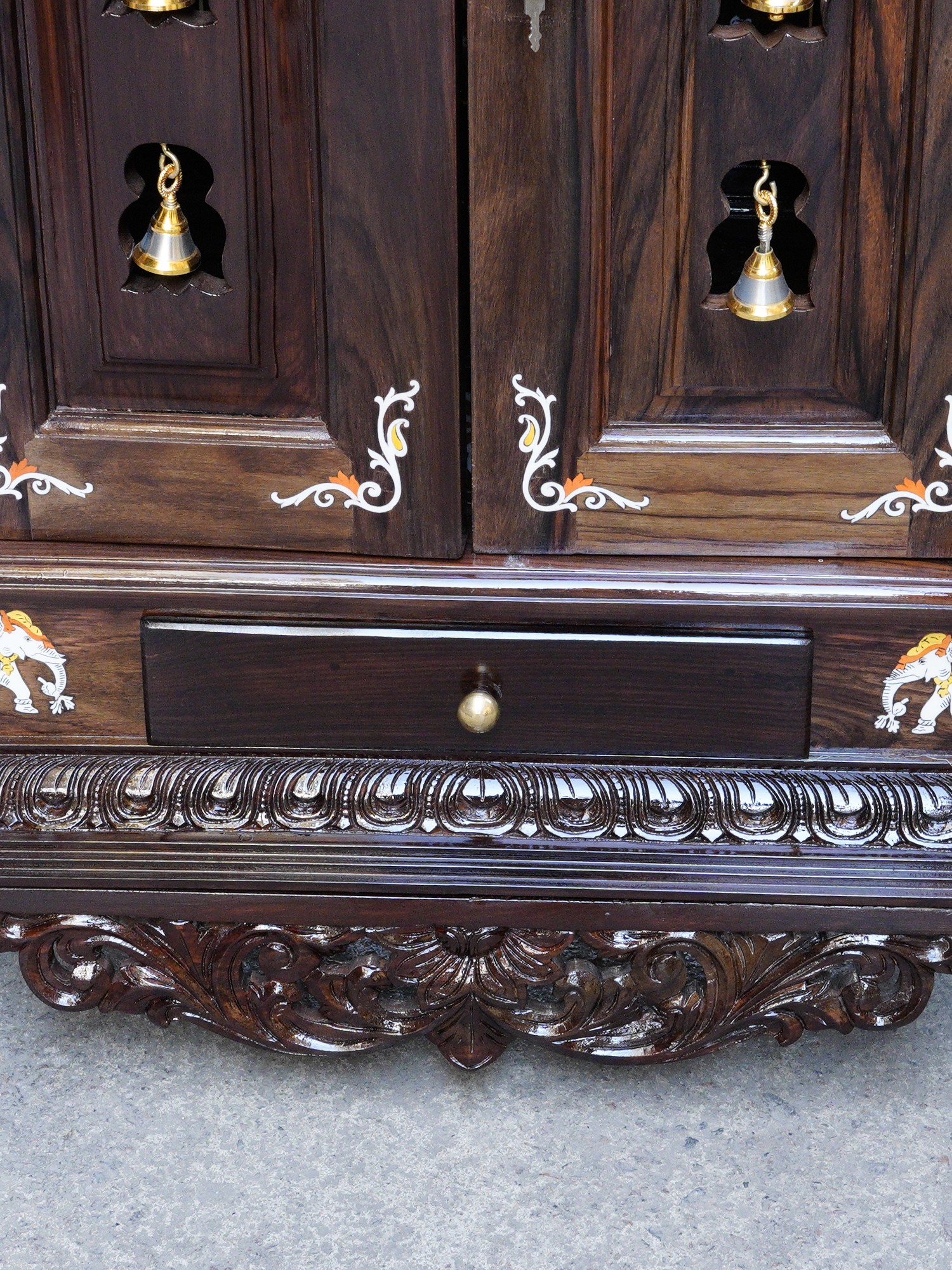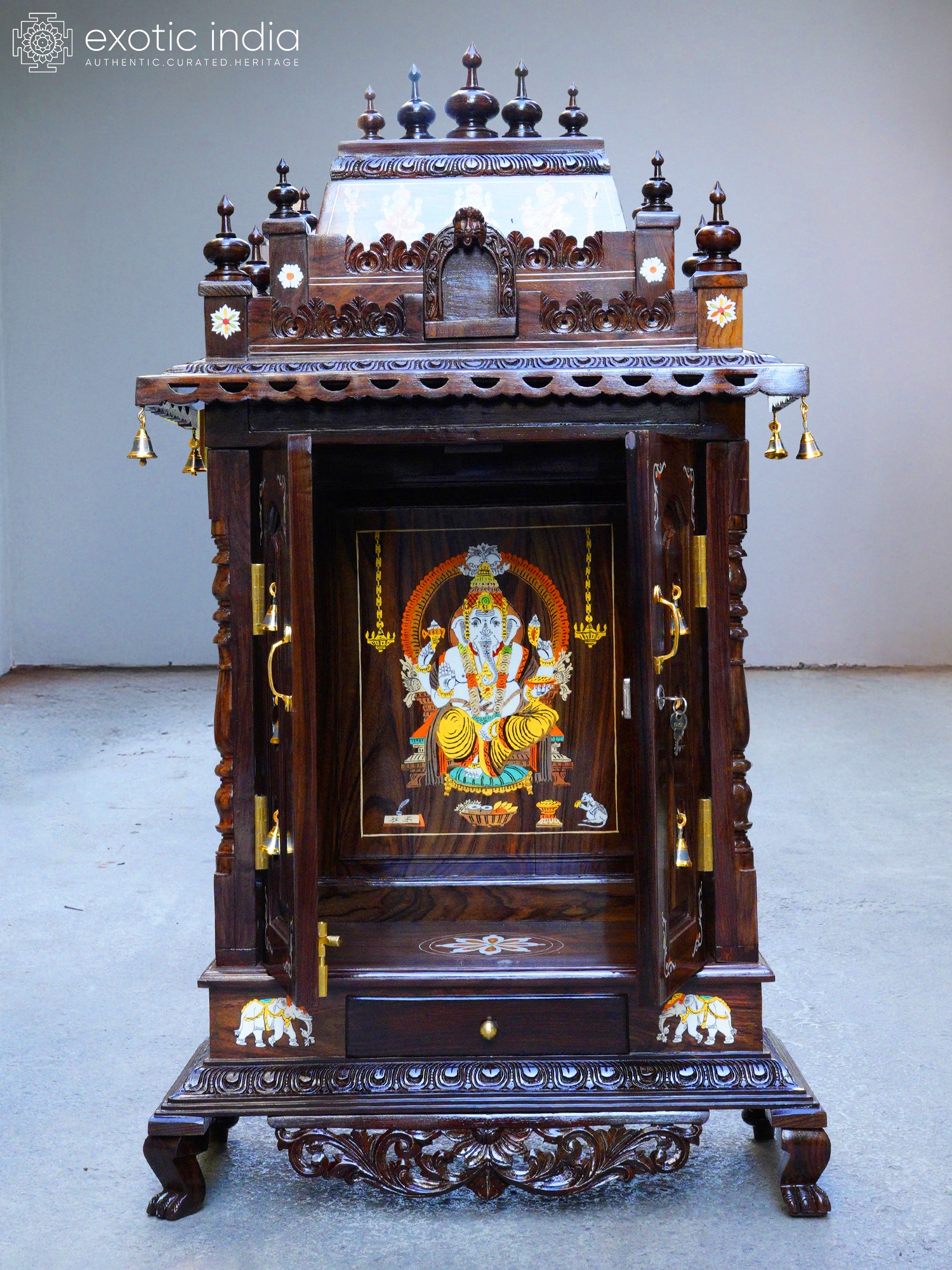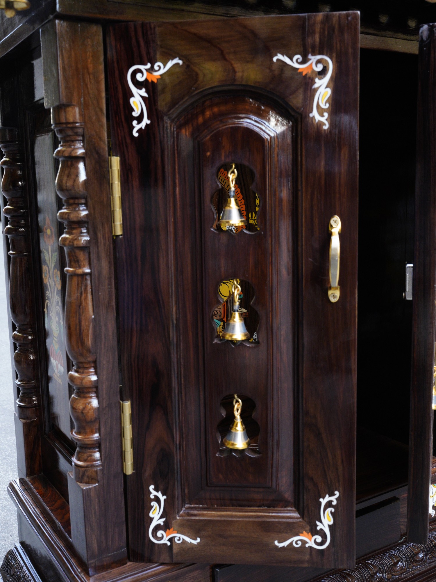 52" Handmade Puja Temple with Deity Motifs | Rosewood Temple For Home