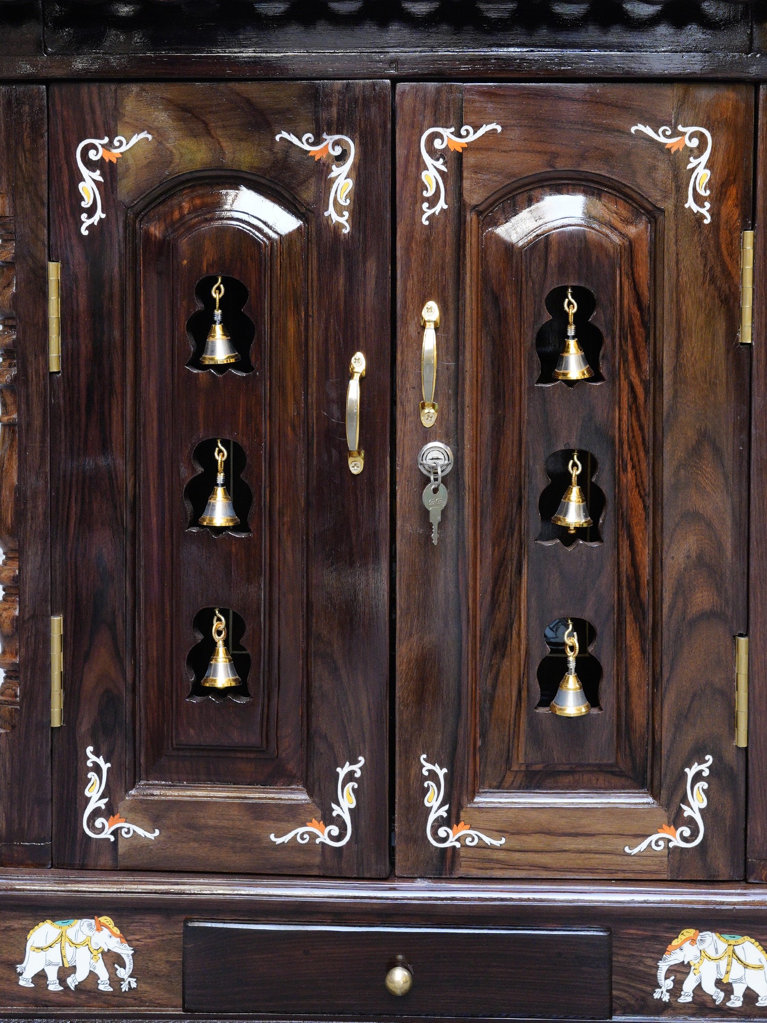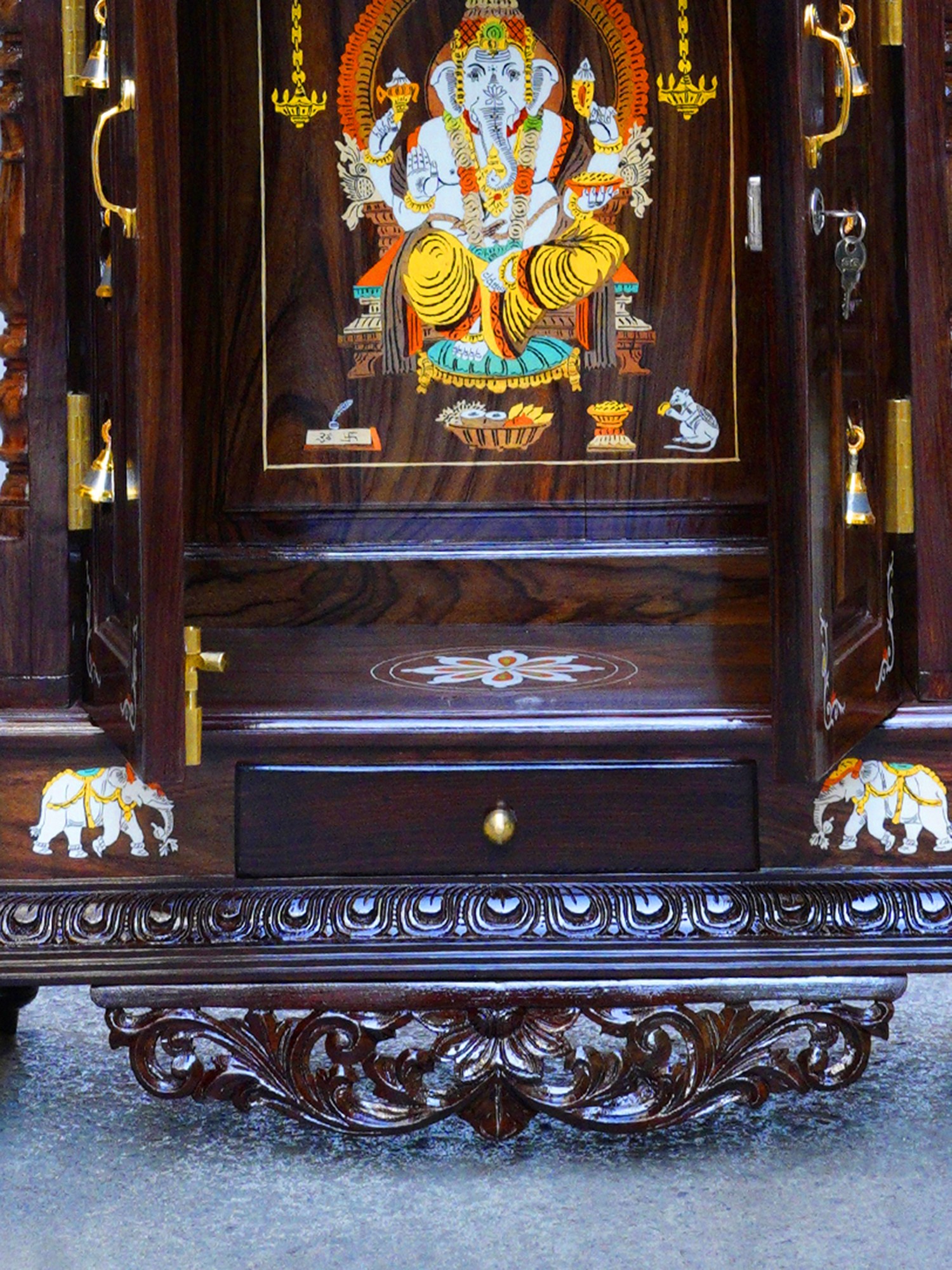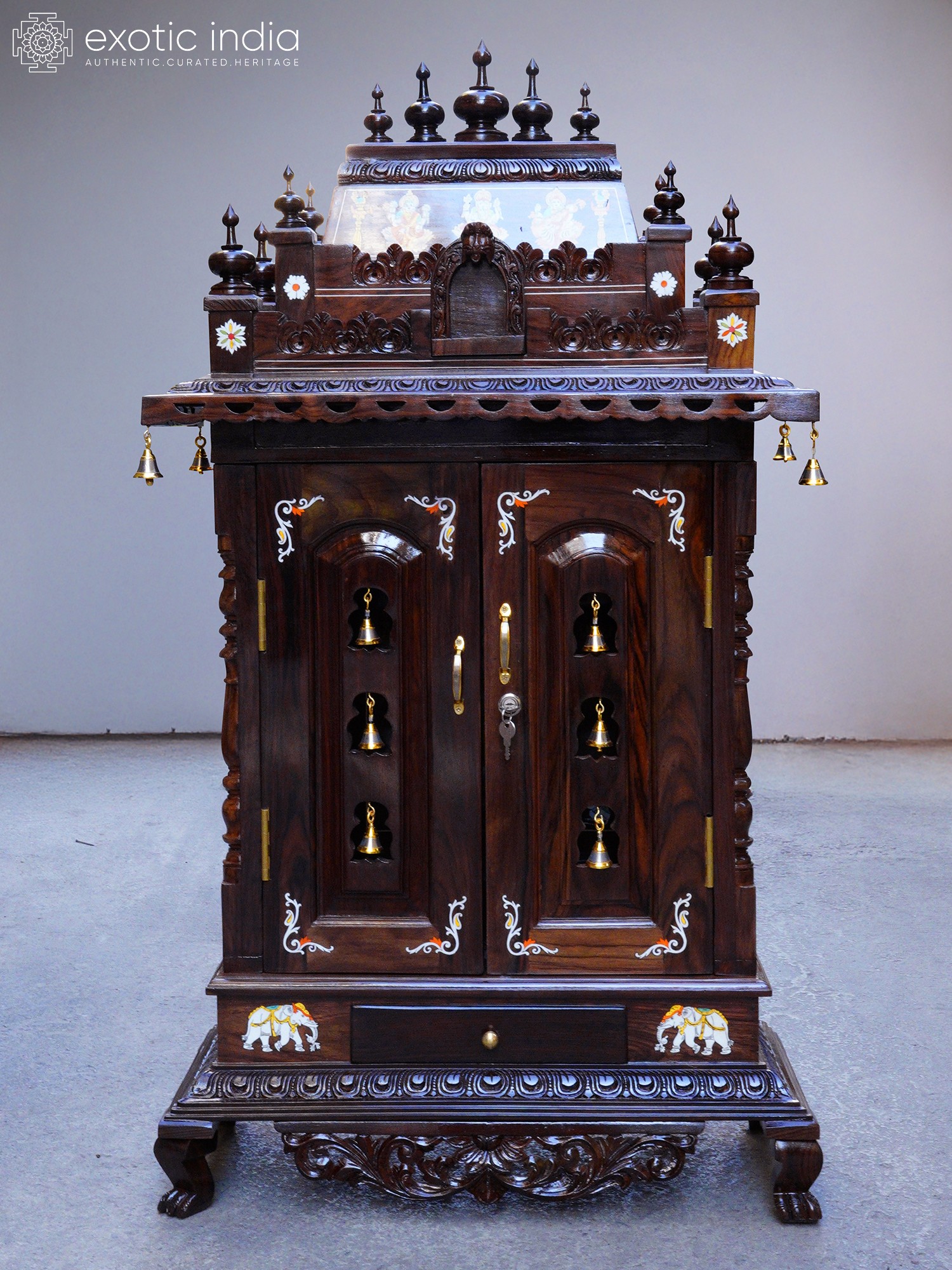 52" Handmade Puja Temple with Deity Motifs | Rosewood Temple For Home