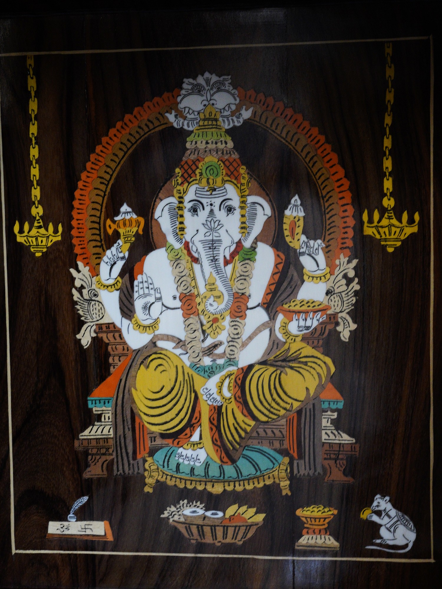 70" Designer Huge Temple in Wood with Lord Ganesha Inlay