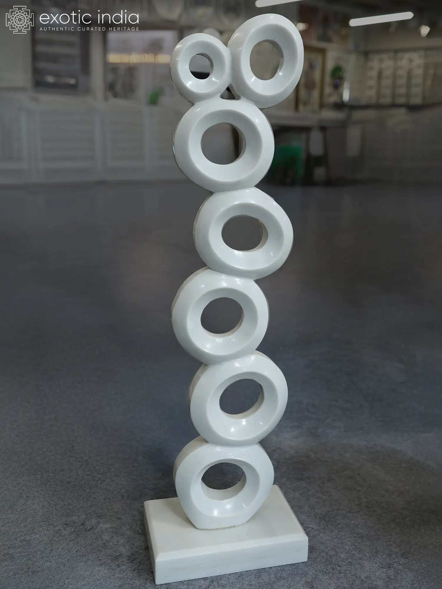 52" Ring Balance | Abstract Modern Art | White Marble Sculpture | Exquisite Indian Art