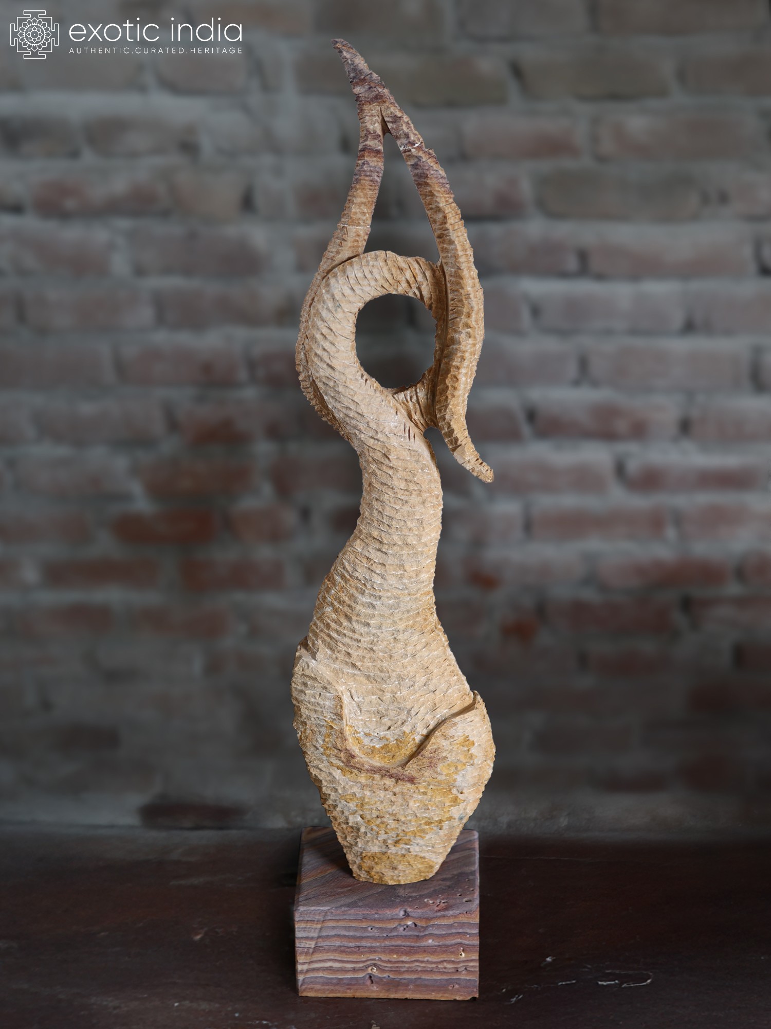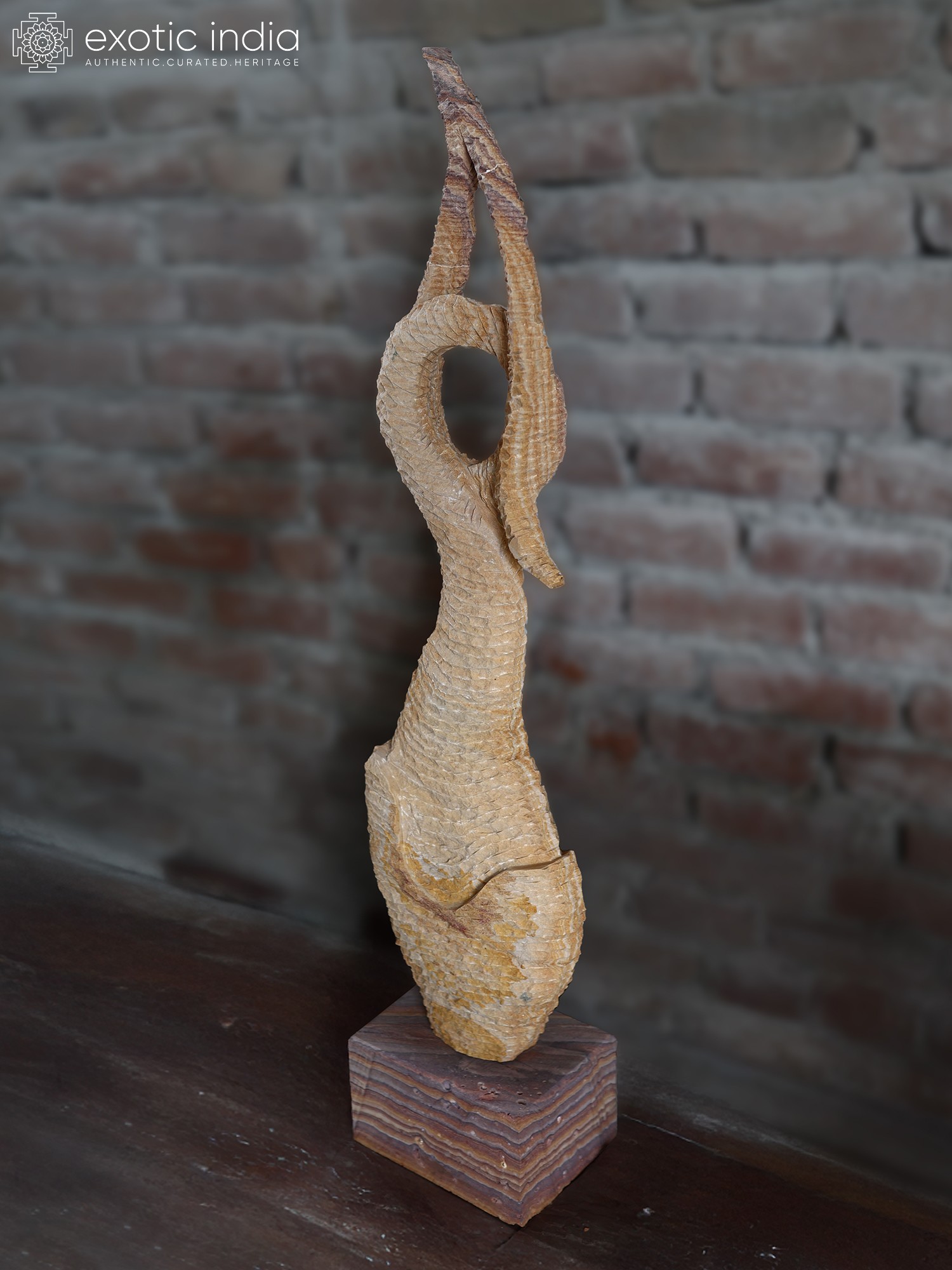 Behold a masterpiece of abstract modern art, a testament to the enduring beauty of stone sculpture and the rich artistic heritage of India. This arresting piece, a striking representation of a fish, transcends mere representation to become an embodiment of fluid motion and primal energy. Standing tall at an impressive height, it commands attention, inviting contemplation and sparking the imagination.