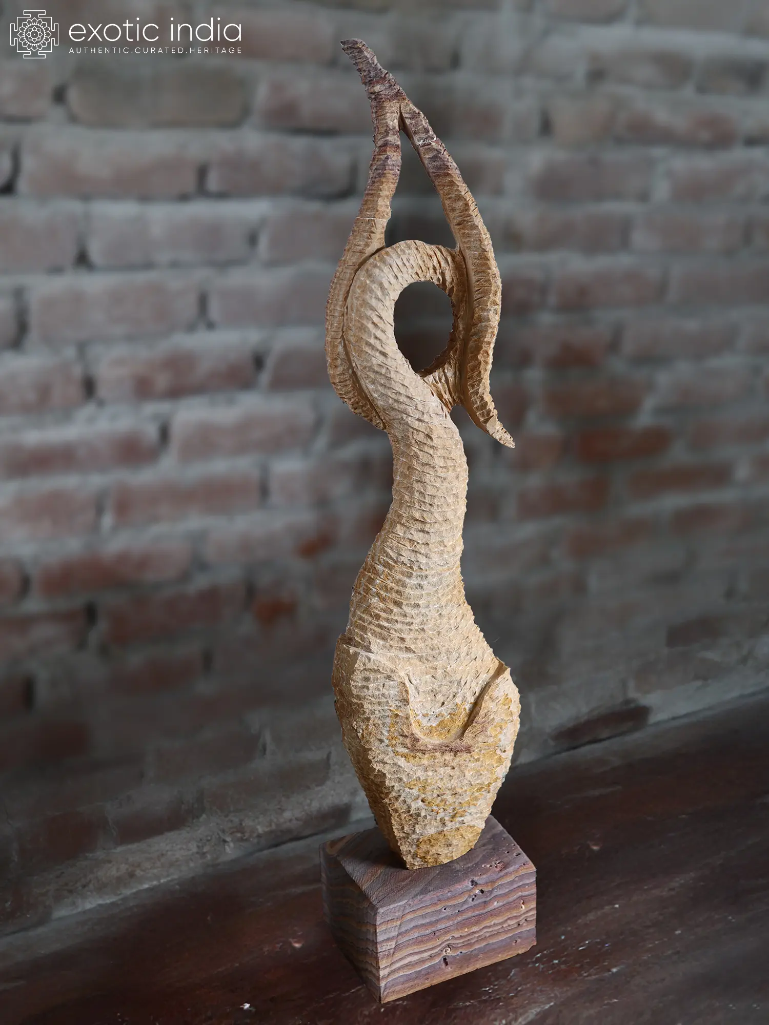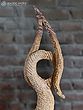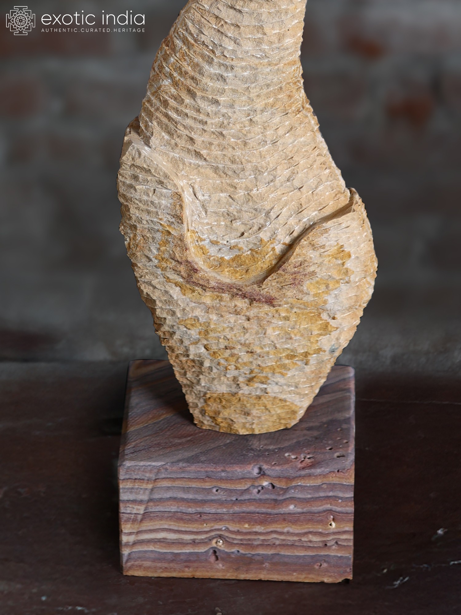 Carved from a single, substantial piece of stone, this sculpture showcases the artisan's profound understanding of the material. The surface is intricately textured, with a rhythmic pattern that suggests scales, movement, or perhaps the very essence of water itself. Each groove and contour has been meticulously shaped, revealing the sculptor's skill in coaxing life and dynamism from the unyielding stone. The natural variations in the stone, with its subtle shifts in color and tone, add layers of depth and character, making each angle of the sculpture a new discovery.