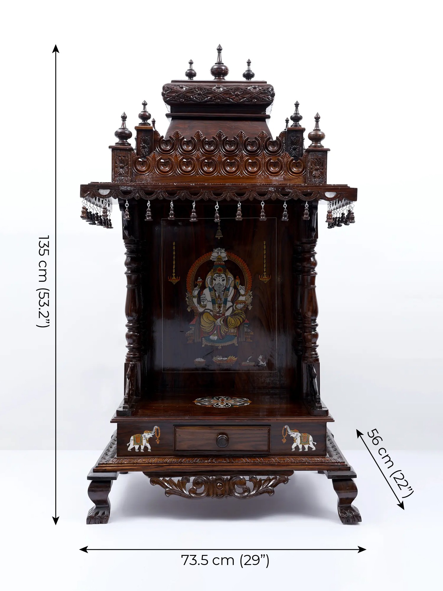 26" Home Temple Altar with Prabhavali and pedestal on Two Elephants Stand