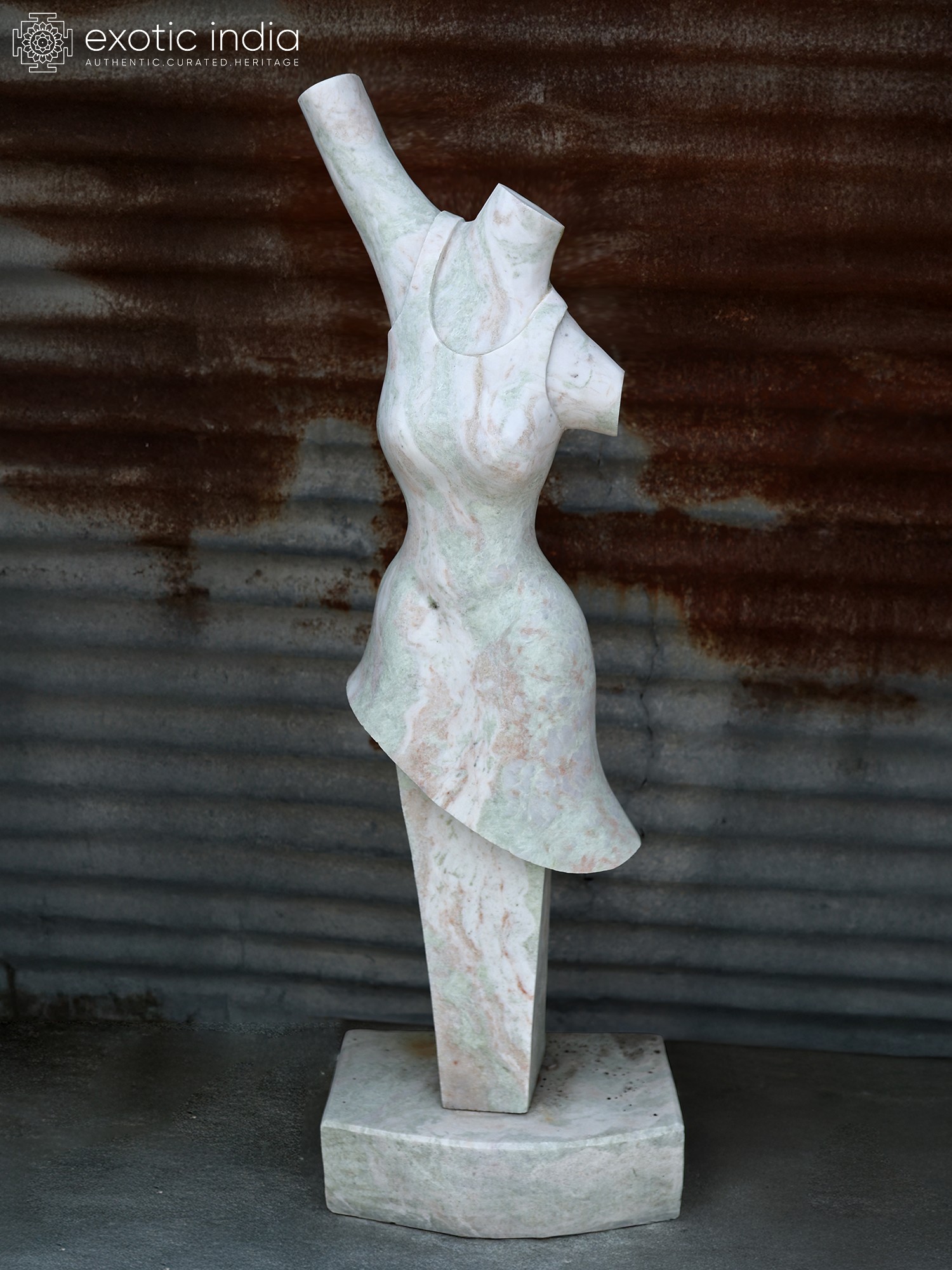 The sculpture transcends mere representation, delving into the realm of abstract modern art. The simplification of the form, with the absence of a head and the sculpted drapery of the garment, allows the viewer to project their own interpretations and emotions onto the piece. It speaks to the elegance and strength inherent in femininity, rendered with a sophisticated artistic sensibility. The clean, smooth finish of the marble highlights the sculptor's skill in working with this natural medium, bringing out the subtle beauty of its texture and color variations. ––––––––––––––––––