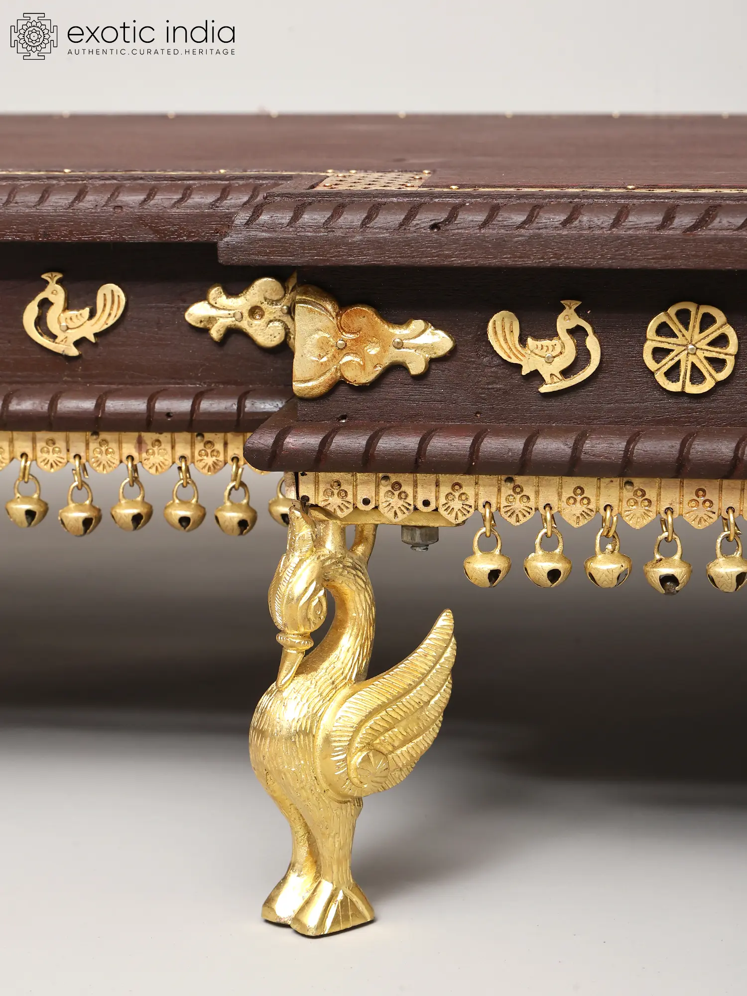 21" Rectangular Shaped Brass Chowki/Pedestal in Brass with Dangling Bells
