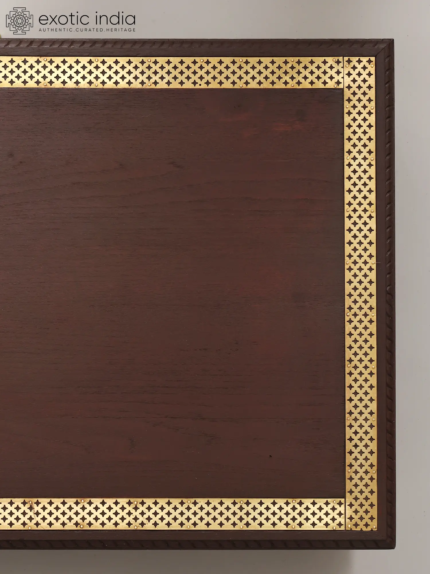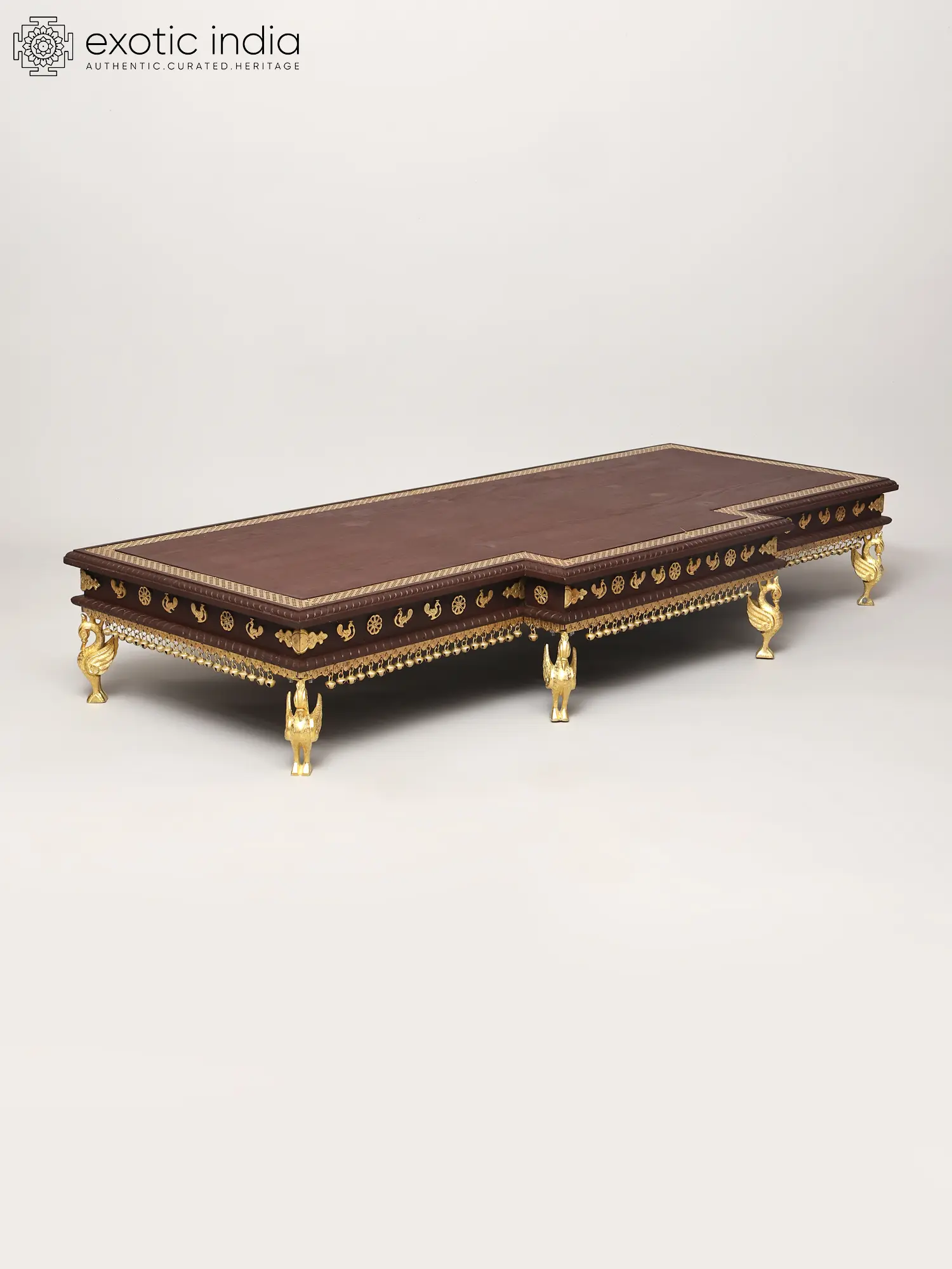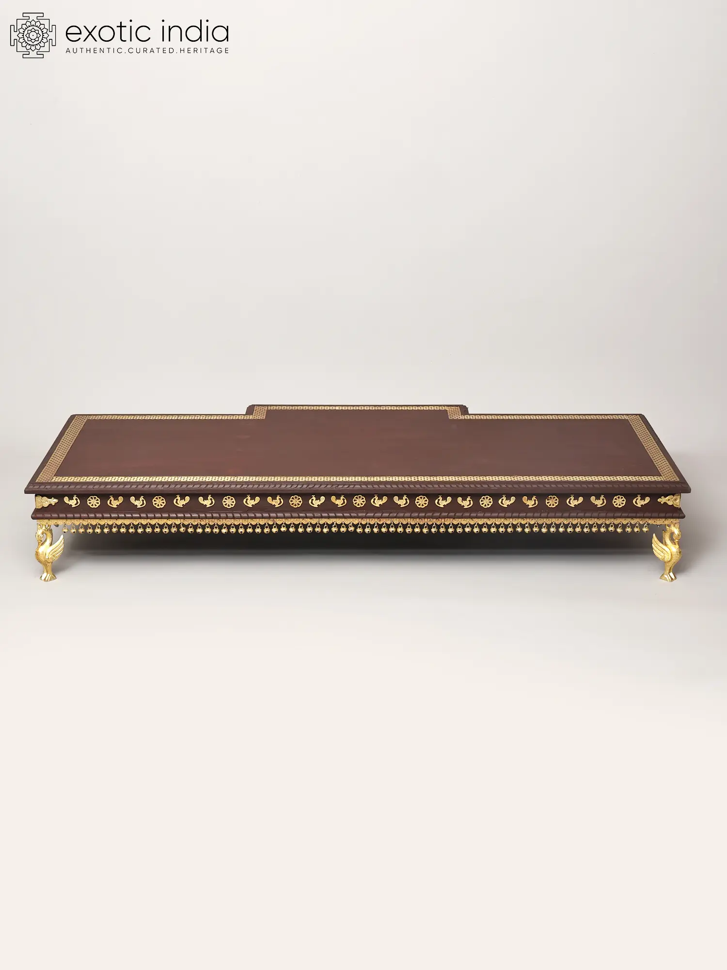 32" Rectangular Shaped Wooden Chowki (Pedestal) with Brass Legs