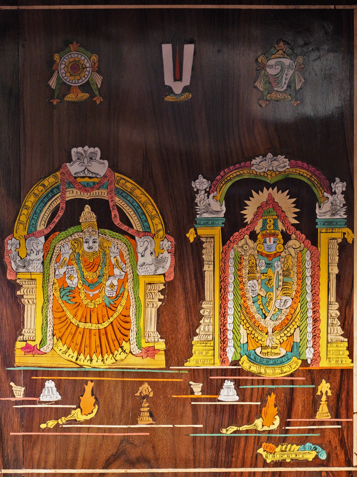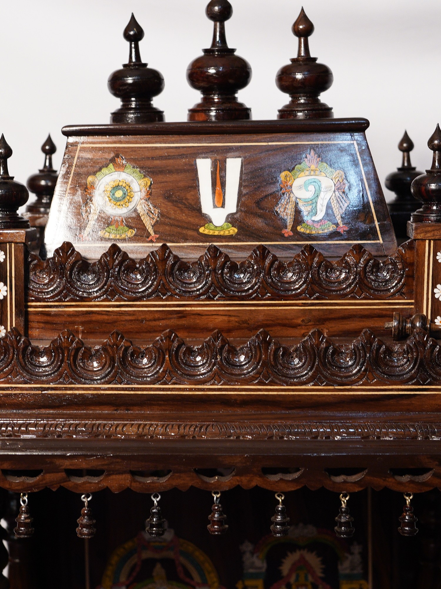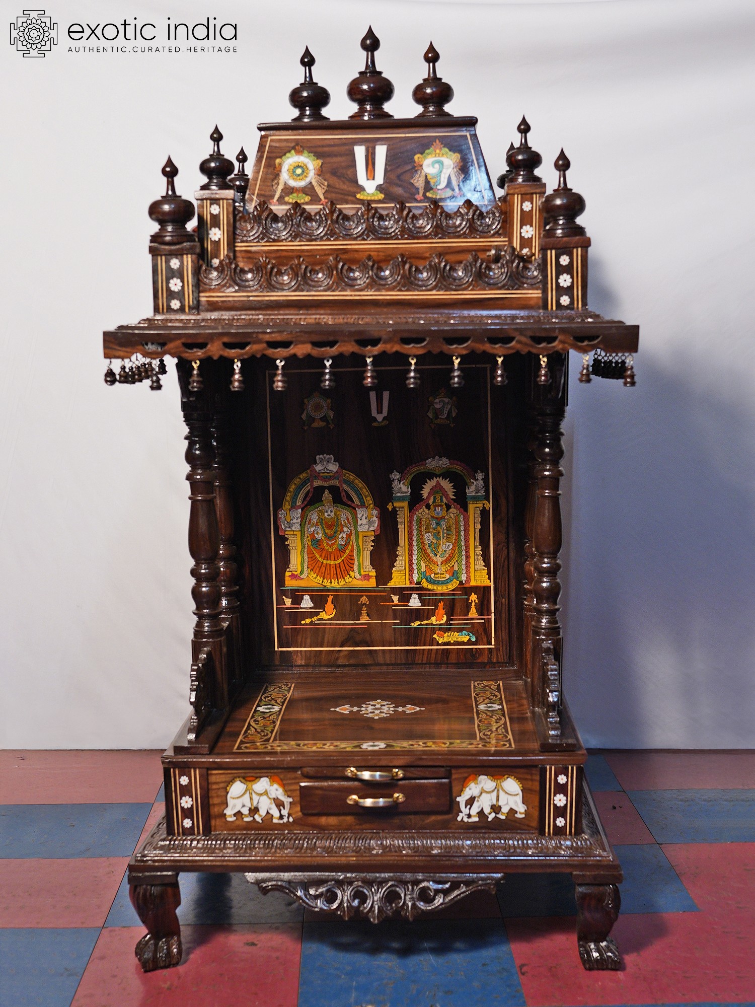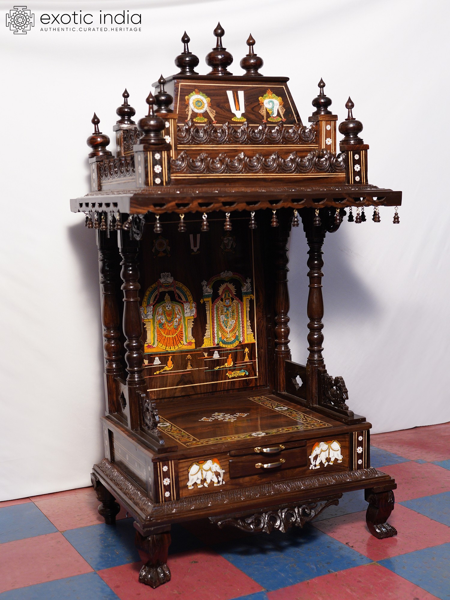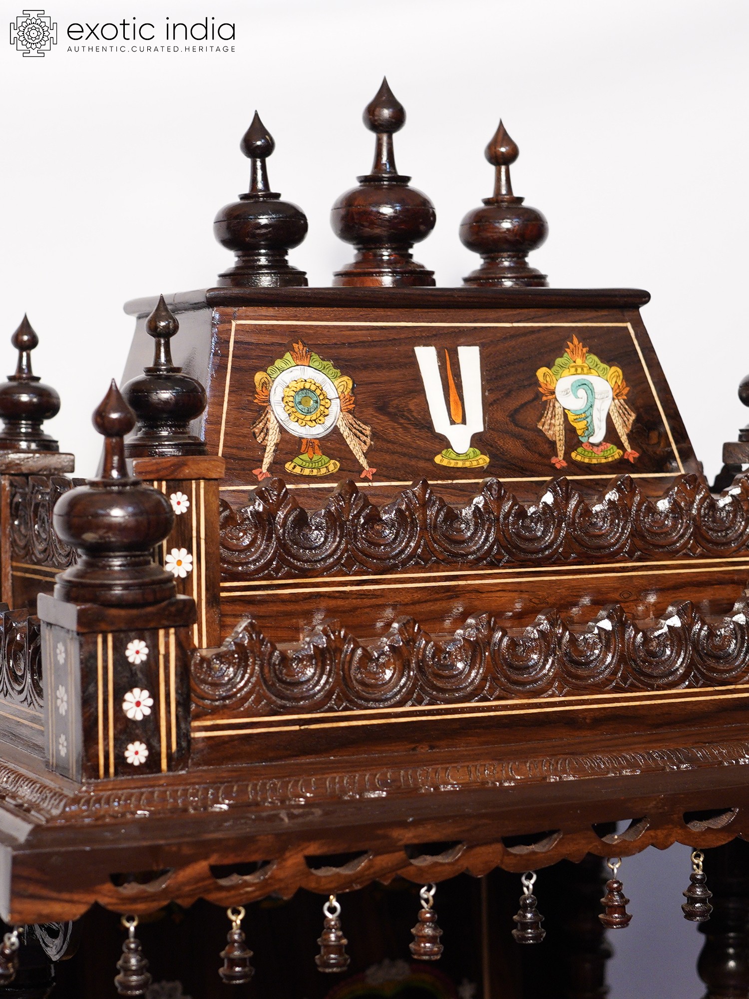 54" Designer Wood Carved Temple with Vaishnava Symbols