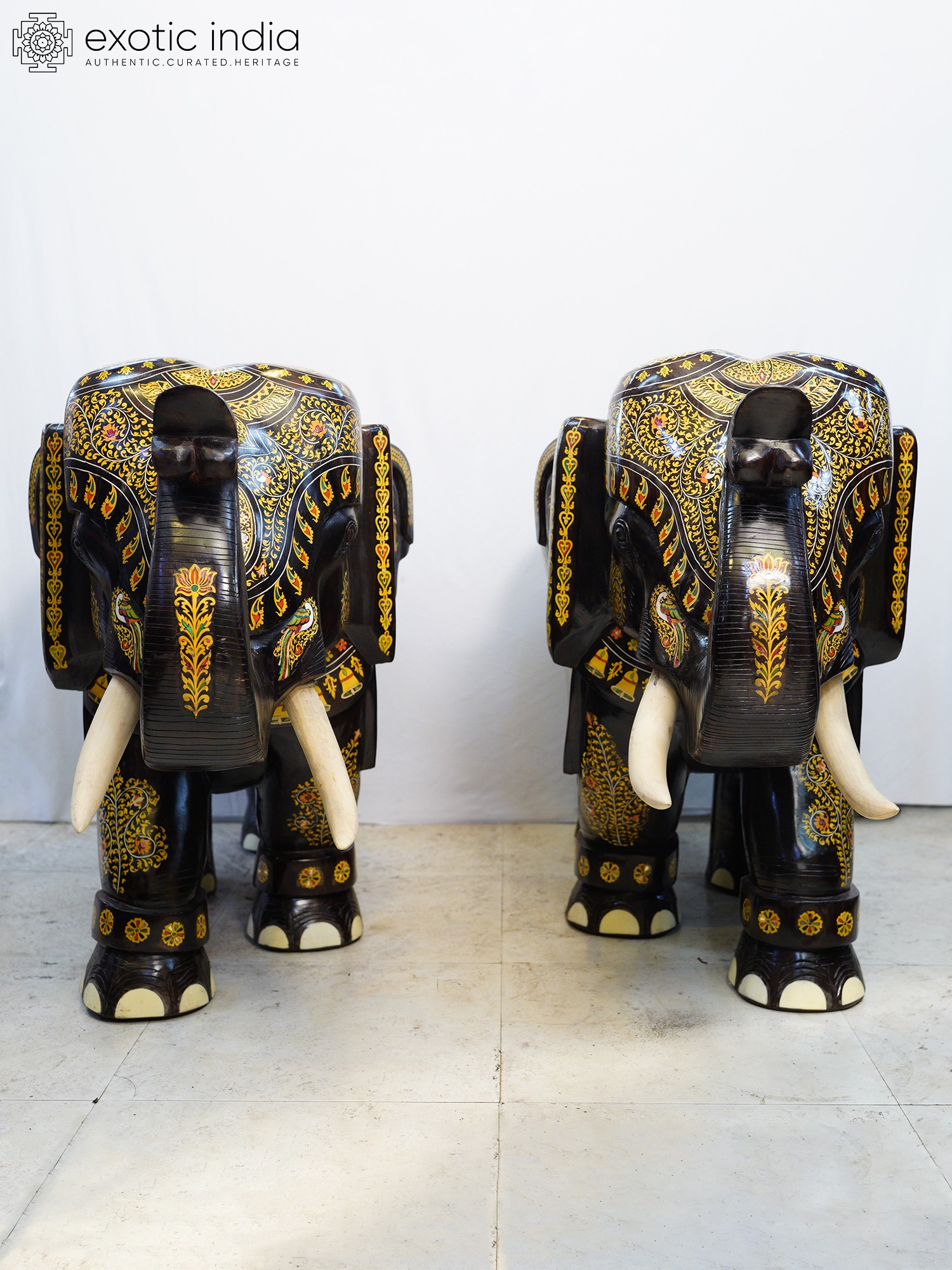 Royal Elephant Pair (Saddle Carved with the Scenes from Wild Life)