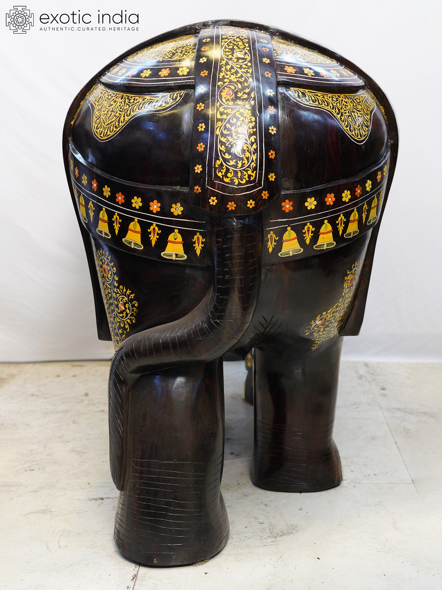 Decorated Royal Elephant with Pedestal (Saddle Carved with Antelope and Floral Motifs)