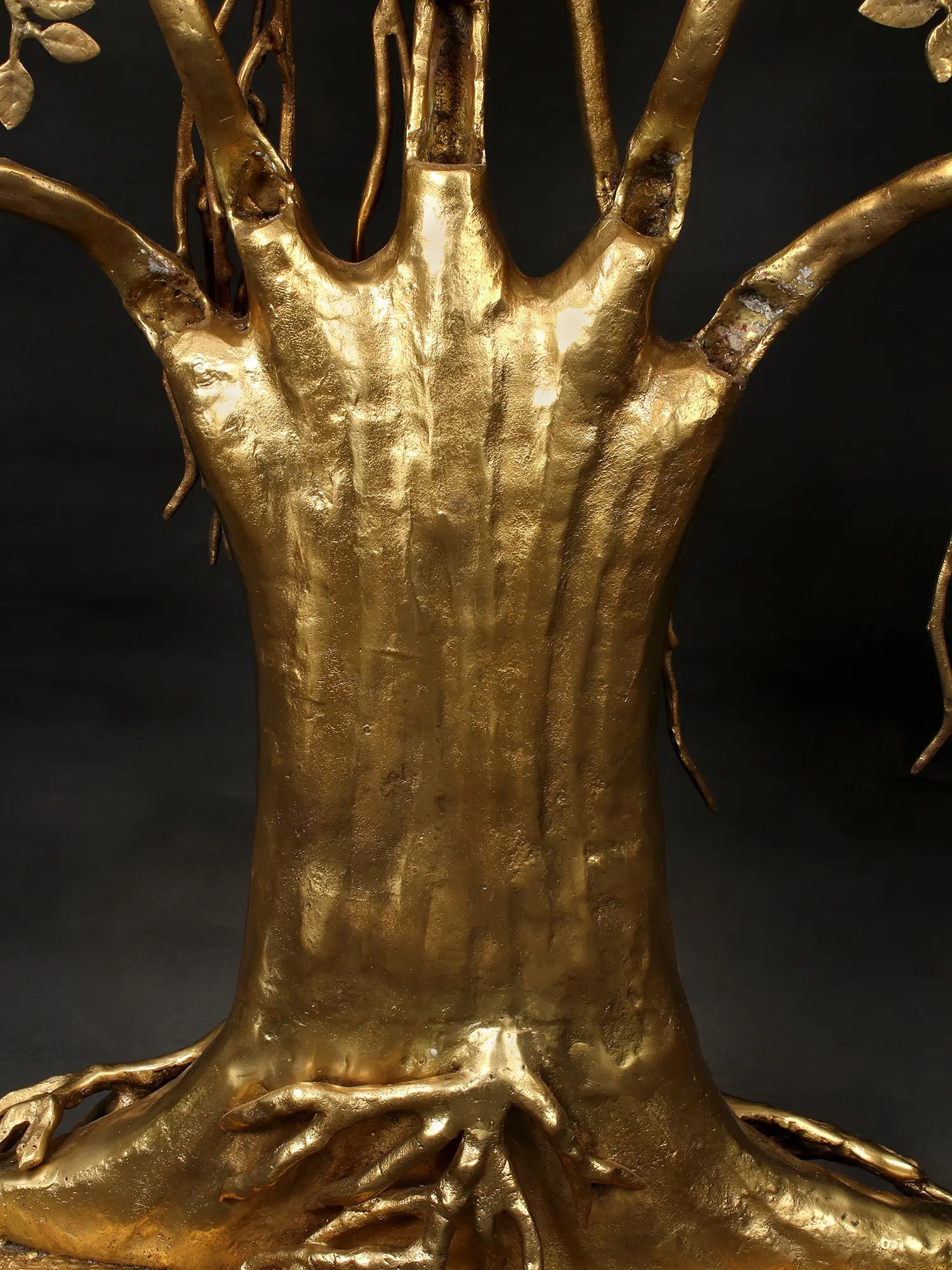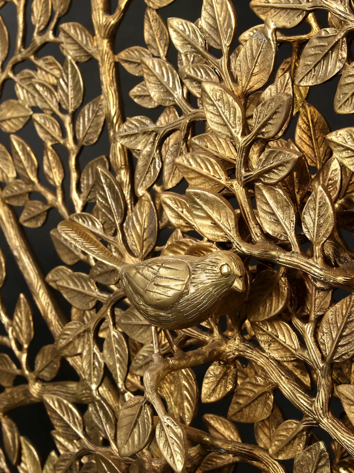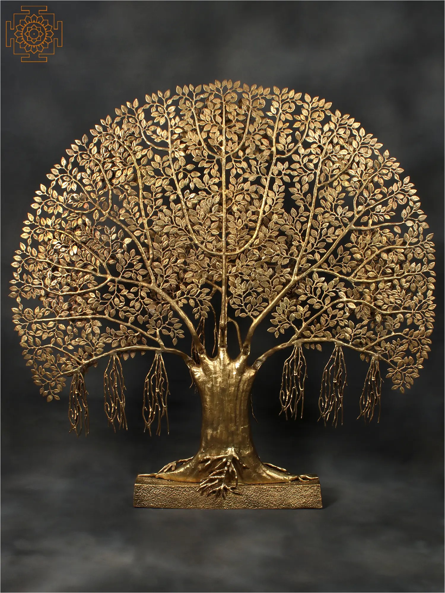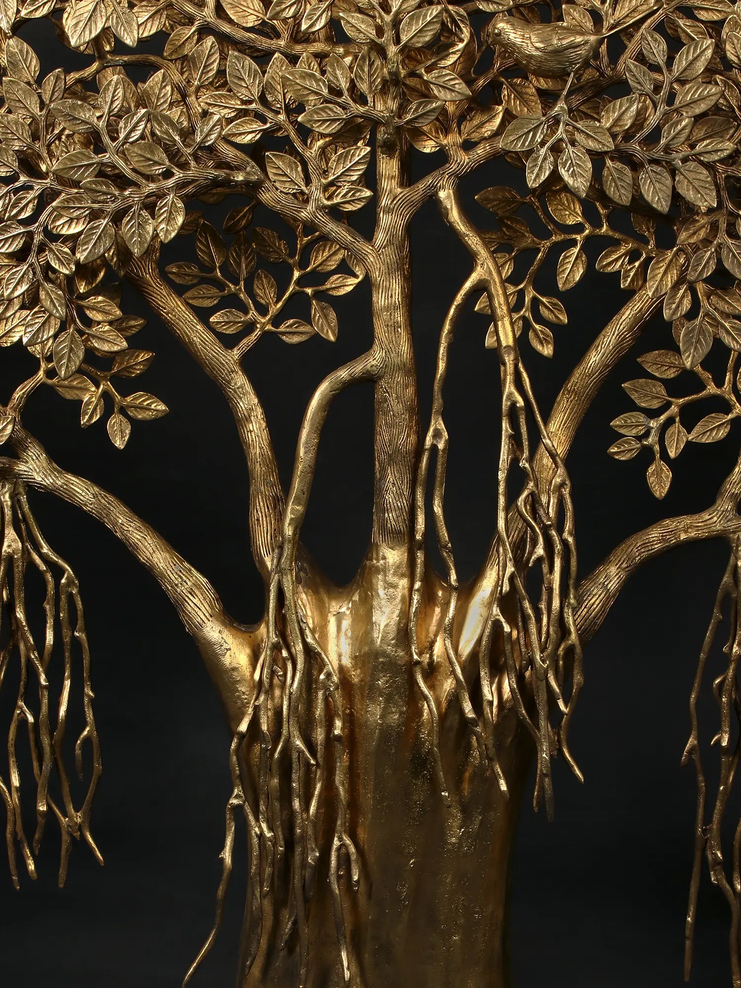 Trees a symbol of immortality are depicted in different art form with great reverence. This imaginary embodied in brass is the majestic definition of a big banyan tree with its roots swinging from its healthy branches. The artists have depicted birds dancing on the vigorous tree’s branches showing the harmony of nature. The shine of the brass metal on the leaves gives them a look of stars twinkling in their full glory. The trunk of the tree looks like a testament of the tree’s fierce battles with nature and time. The roots bulging gout of the soil symbolise the strong foundation that comes with knowledge. Viewers can enter a realm of quiet and beautiful scene of a dense forest with this stunning form. This masterpiece is no doubt a point where nature’s splendour merges with royal traces, eliciting the spirit of beauty, grace, and revitalization.