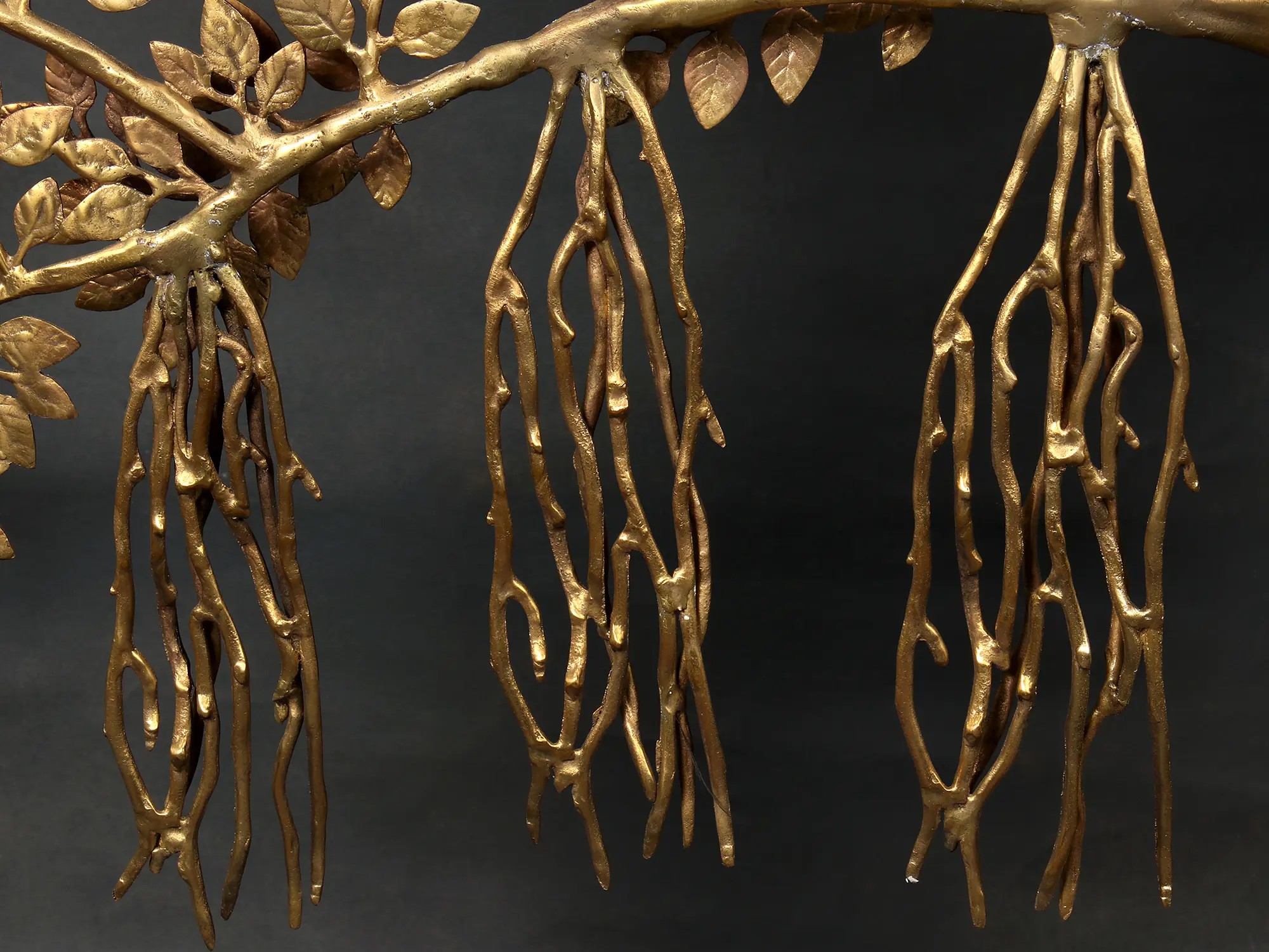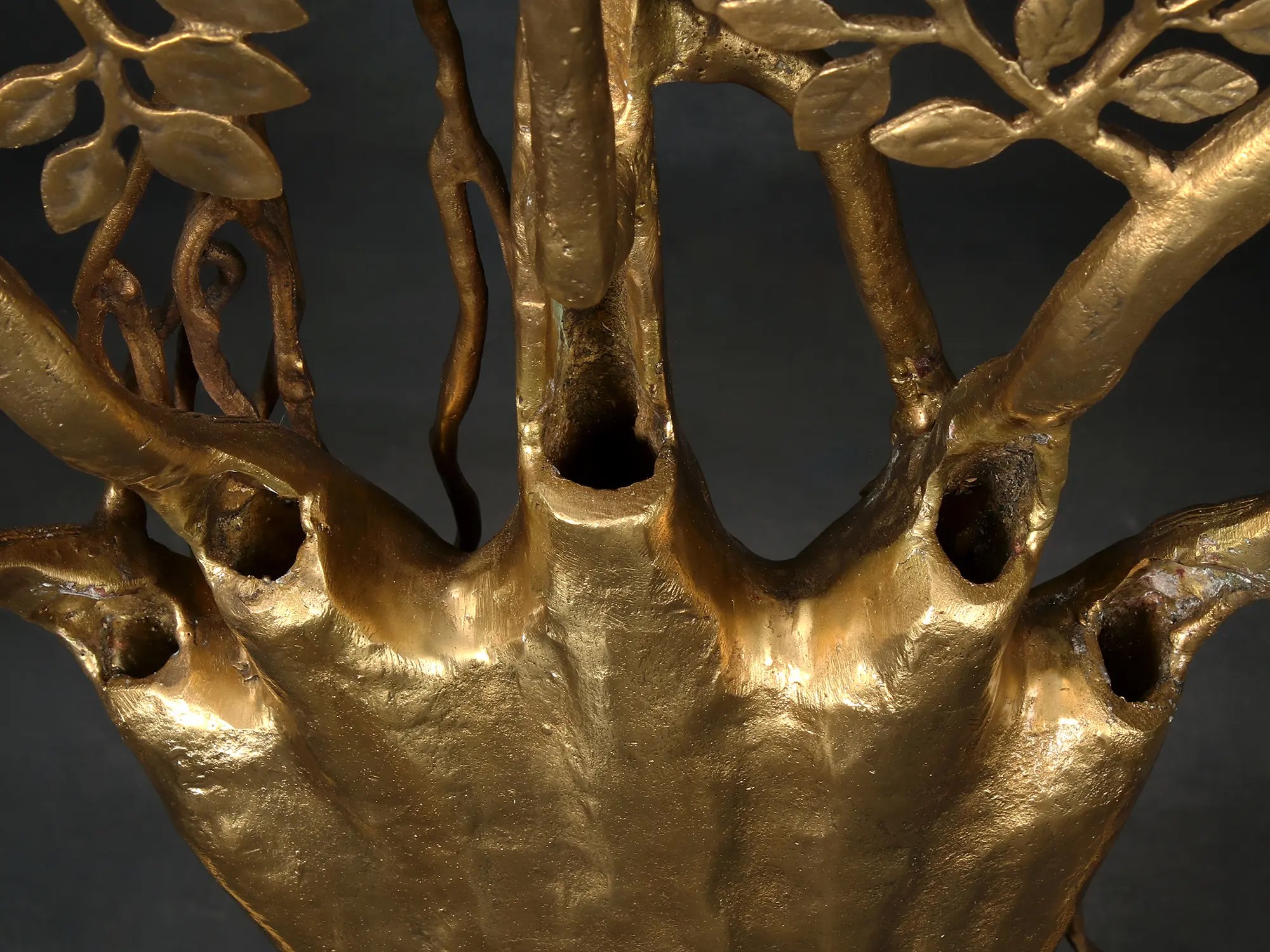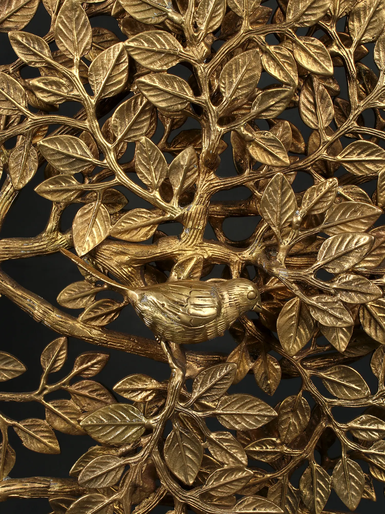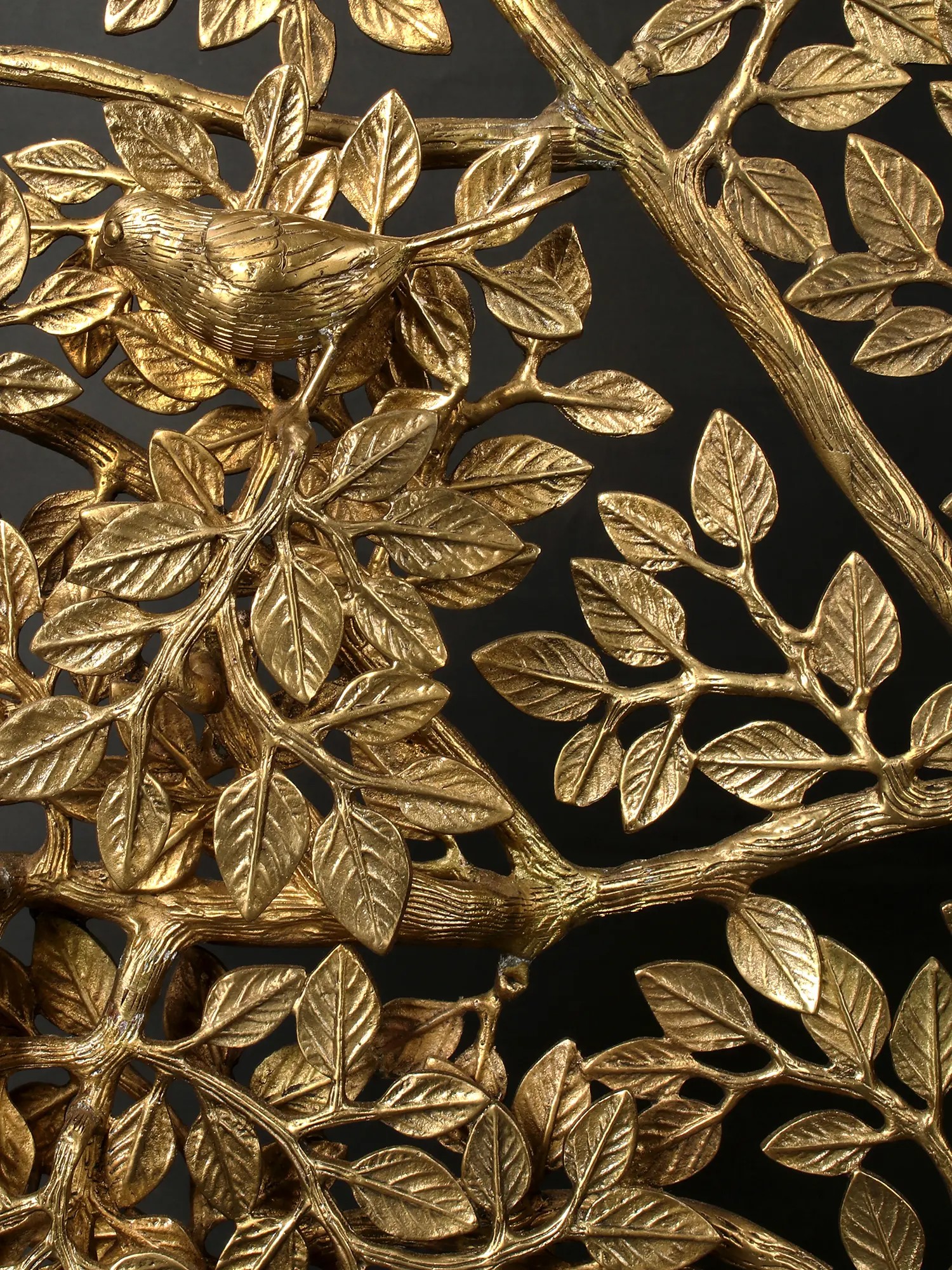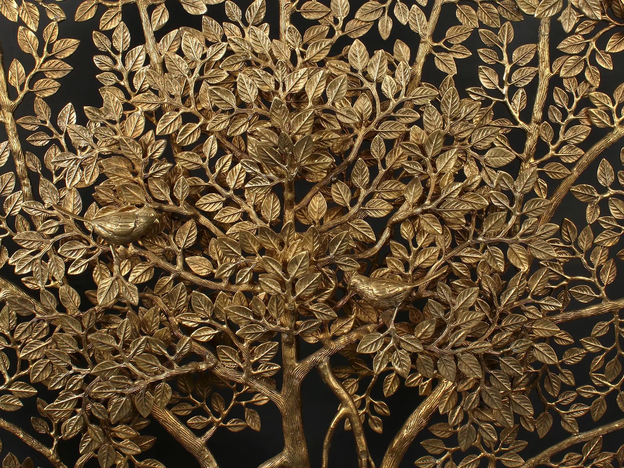Trees a symbol of immortality are depicted in different art form with great reverence. This imaginary embodied in brass is the majestic definition of a big banyan tree with its roots swinging from its healthy branches. The artists have depicted birds dancing on the vigorous tree’s branches showing the harmony of nature. The shine of the brass metal on the leaves gives them a look of stars twinkling in their full glory. The trunk of the tree looks like a testament of the tree’s fierce battles with nature and time. The roots bulging gout of the soil symbolise the strong foundation that comes with knowledge. Viewers can enter a realm of quiet and beautiful scene of a dense forest with this stunning form. This masterpiece is no doubt a point where nature’s splendour merges with royal traces, eliciting the spirit of beauty, grace, and revitalization.