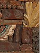 The attention to detail in this piece is truly remarkable. Notice the intricate carvings and patterns that adorn each individual piece of wood. The artist has skillfully arranged these reclaimed elements, creating a harmonious blend of textures and forms. The careful juxtaposition of different wood tones and shades adds depth and visual interest. The result is a wall panel that is both visually arresting and incredibly tactile. Its unique design will catch the eye and spark conversations, creating a focal point in any room.