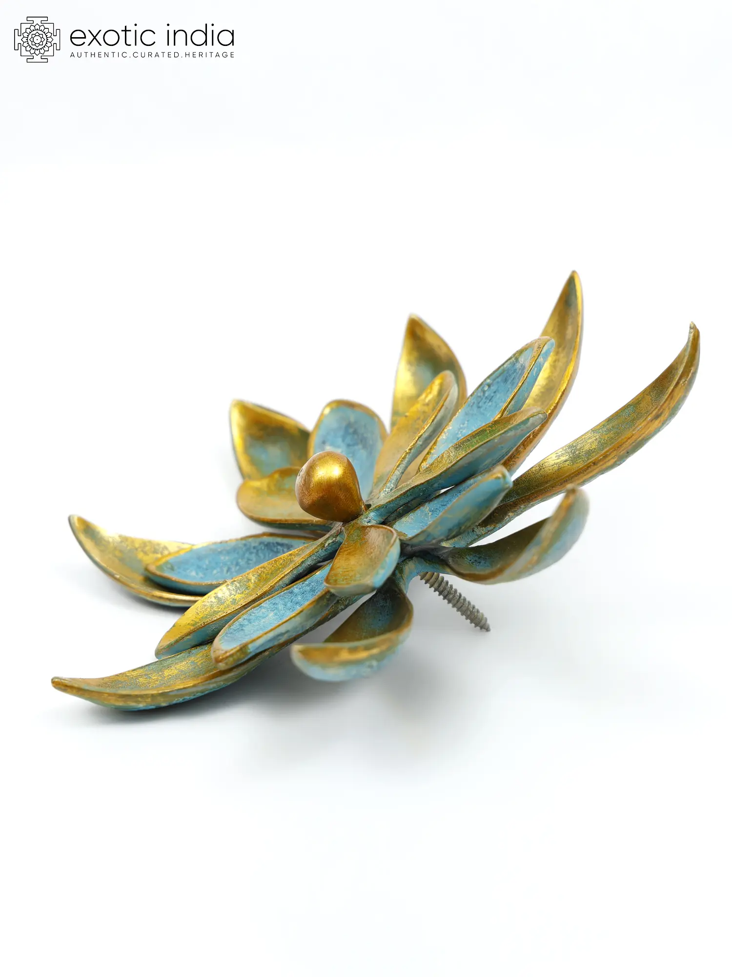 Crafted from gleaming brass, it transcends mere decoration, blossoming into a captivating floral sculpture. Three layers of petals unfurl, each boasting a unique shade of blue patina.