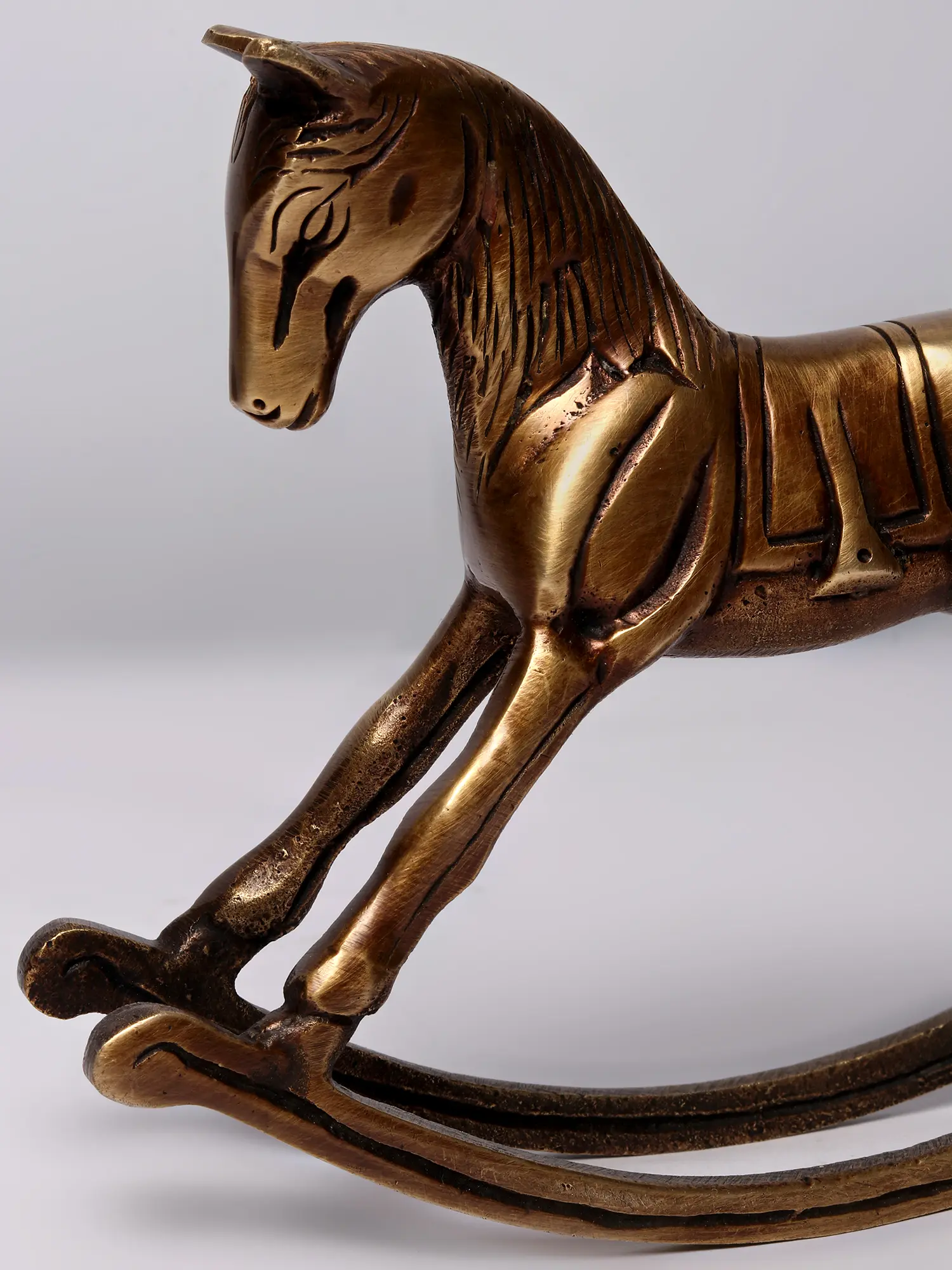 Transforming the simplicity of a child's toy into a fabulous home decor item, this creation melds nostalgia with contemporary elegance. The design of this Brass Rocking Horse captures the essence of playfulness and innocence, turning a traditional toy into an artful decorative piece. The careful craftsmanship and choice of materials elevate it beyond its utilitarian origins, introducing a whimsical touch to any space.