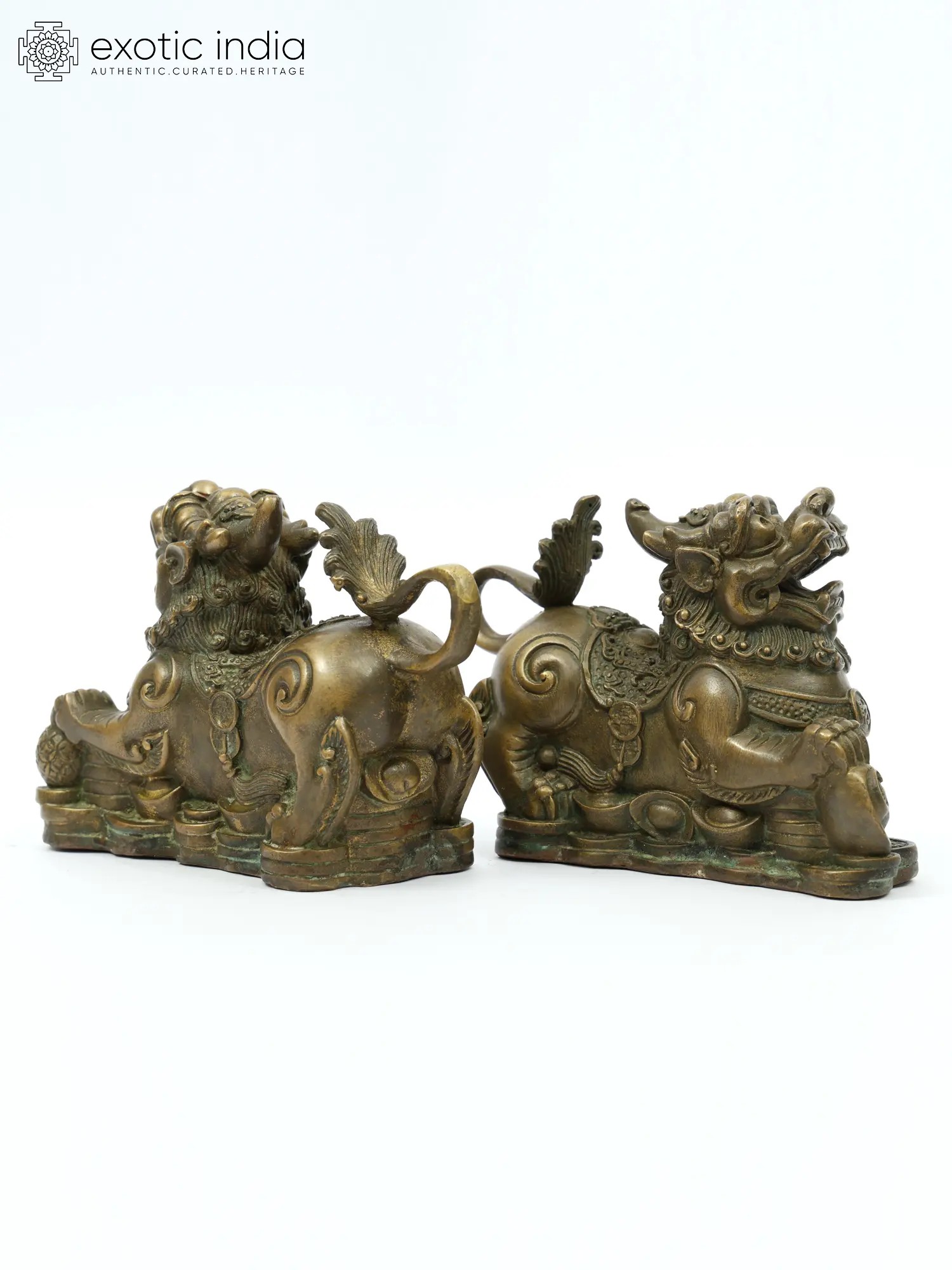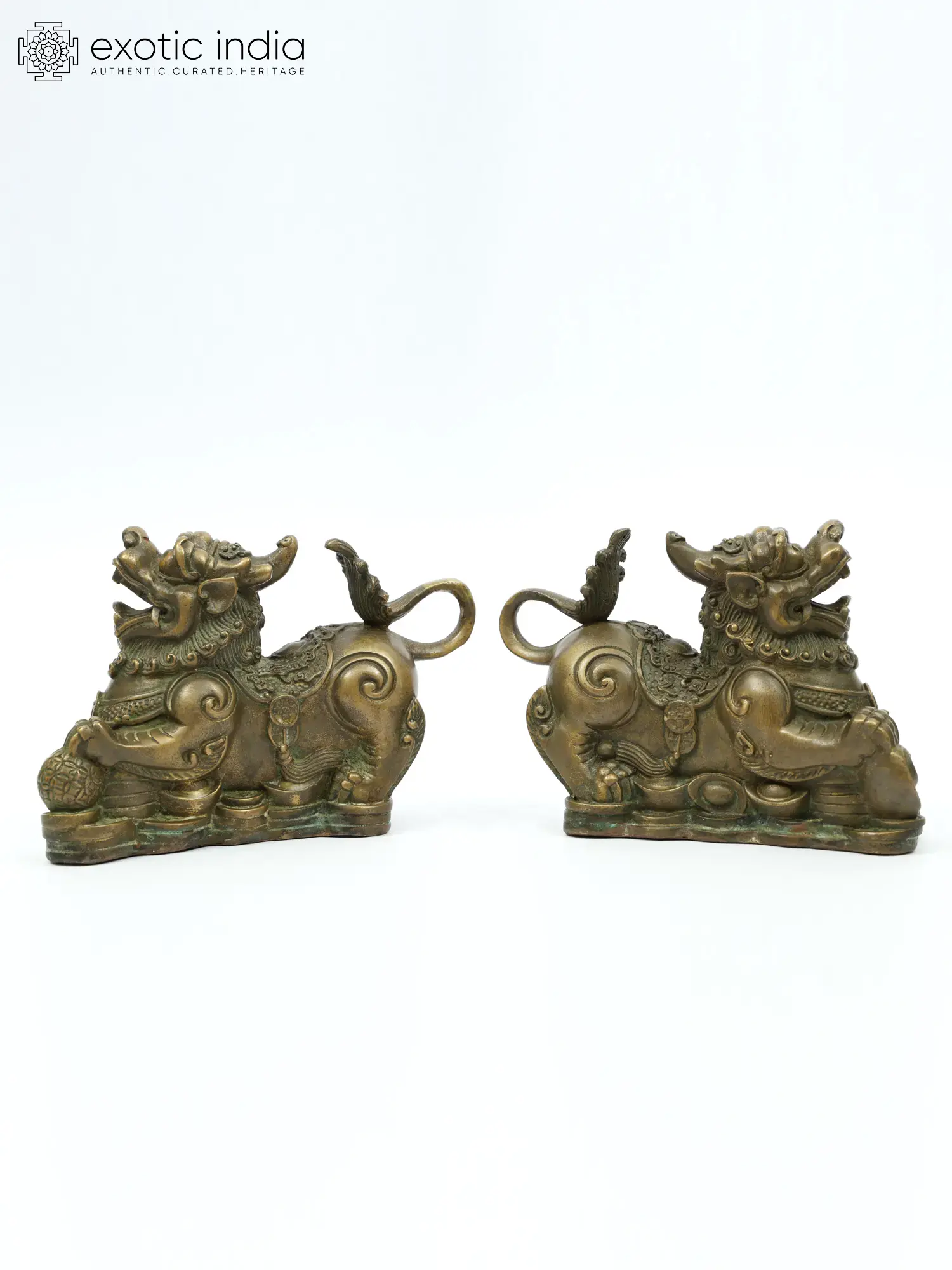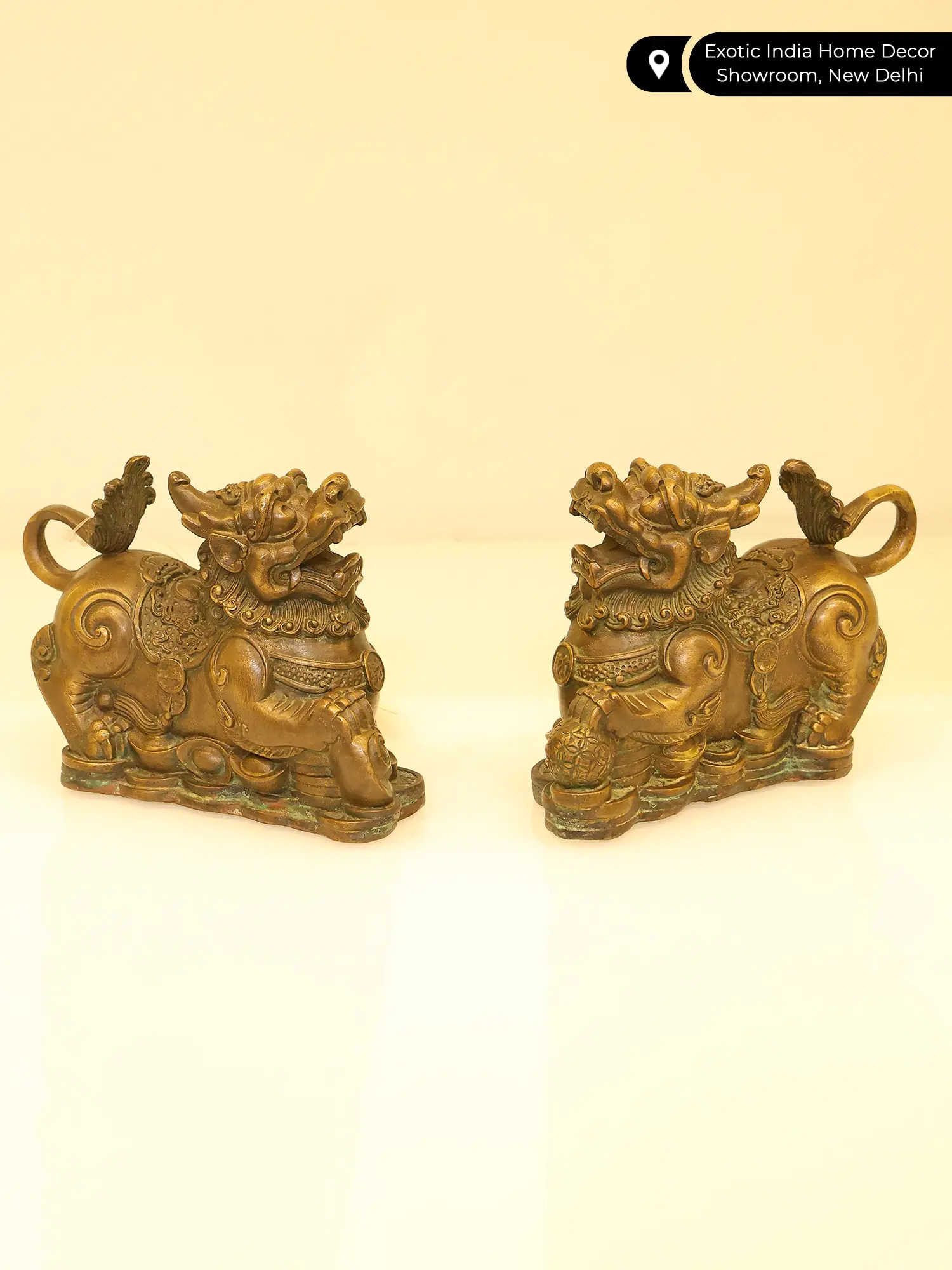 The Bronze Feng Shui Pair of Pixiu (Pi Yao) figurines are beautifully crafted representations of these mythical creatures, revered in Chinese culture for their powerful symbolism of wealth and protection.