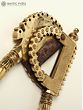 Each nutcracker is meticulously handcrafted, showcasing the skill and artistry of its creators. The detailed brass work is stunning, with ornate patterns and textures that catch the light beautifully. The contrast between the polished brass and the subtly rusted iron cutting mechanism adds a unique visual appeal, highlighting the age-old techniques used in its creation. The handles are ergonomically designed for a comfortable grip, ensuring effortless cracking, while the robust construction promises years of reliable use. This is not a mass-produced item; this is a work of art designed for both function and lasting beauty.