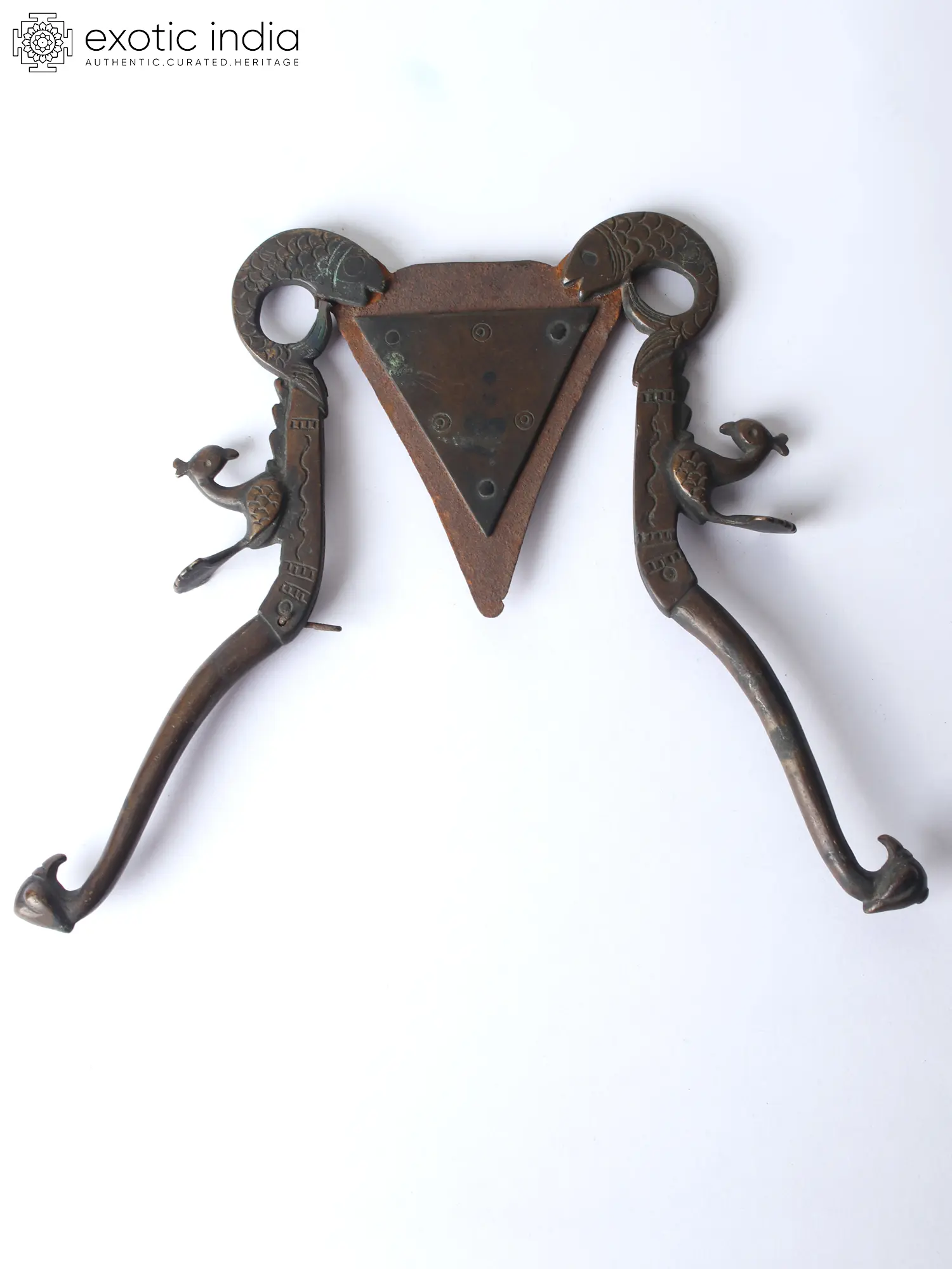 This vintage piece showcases a unique design featuring both fish and peacock motifs, symbolizing prosperity and beauty.
