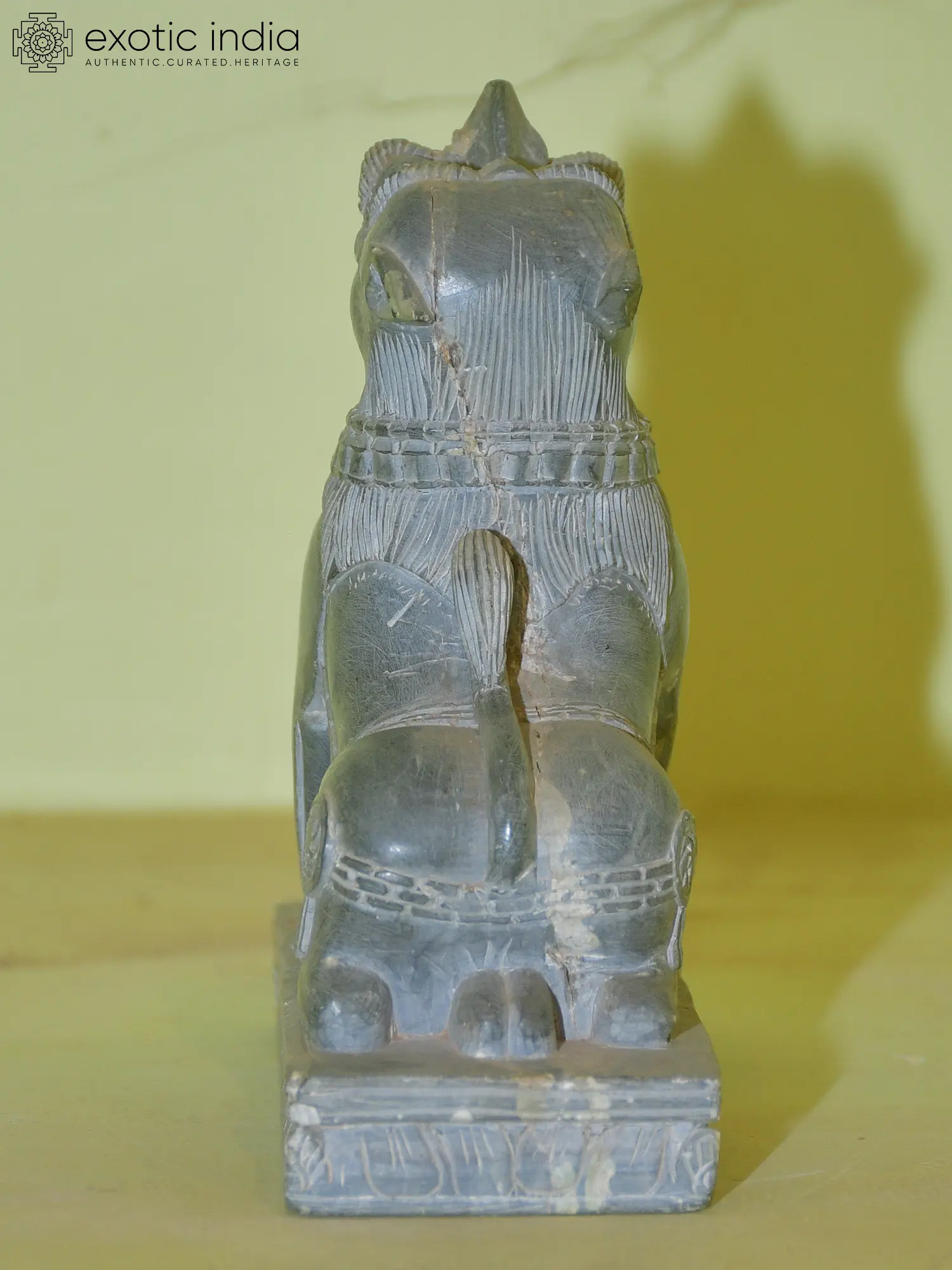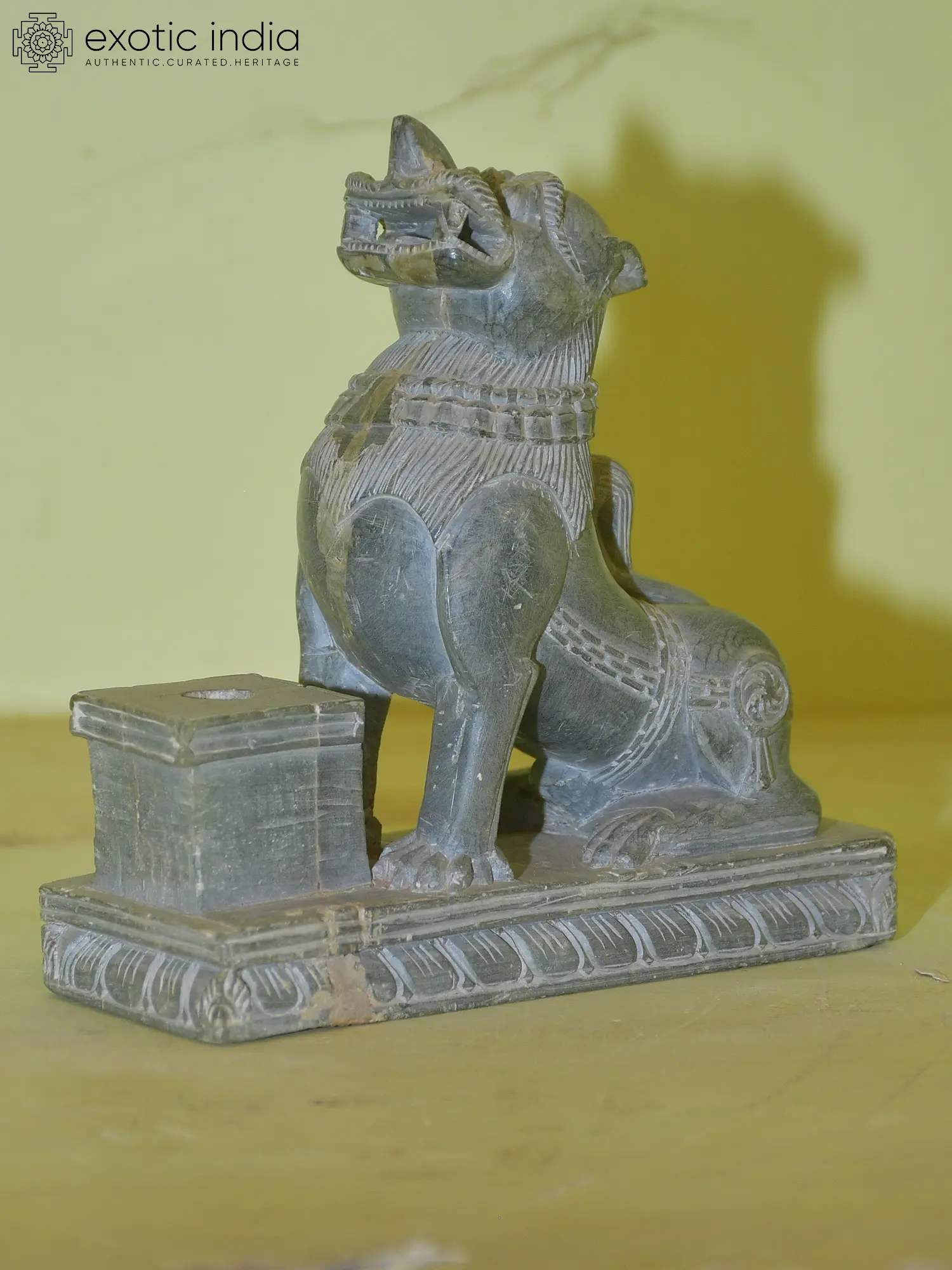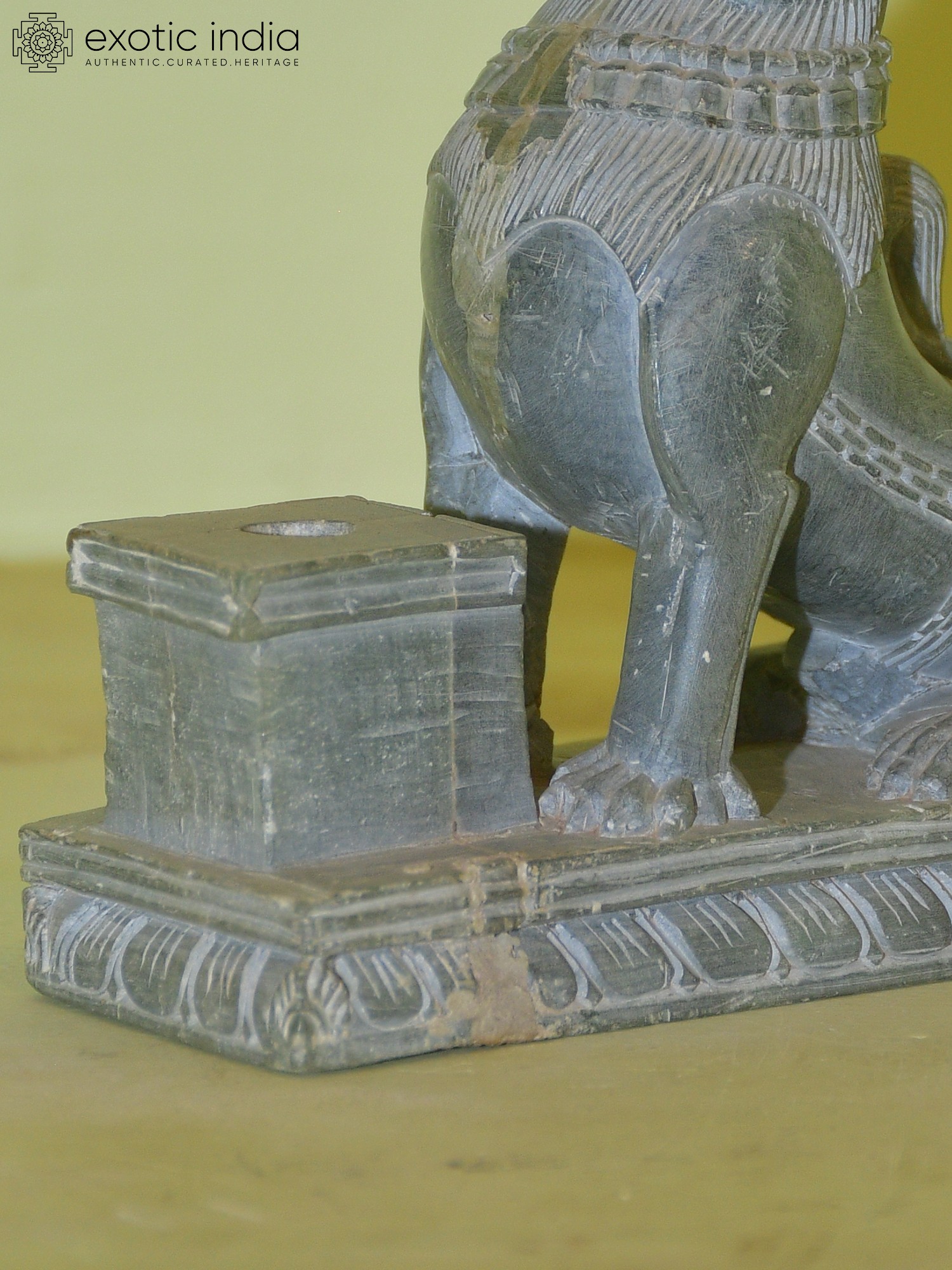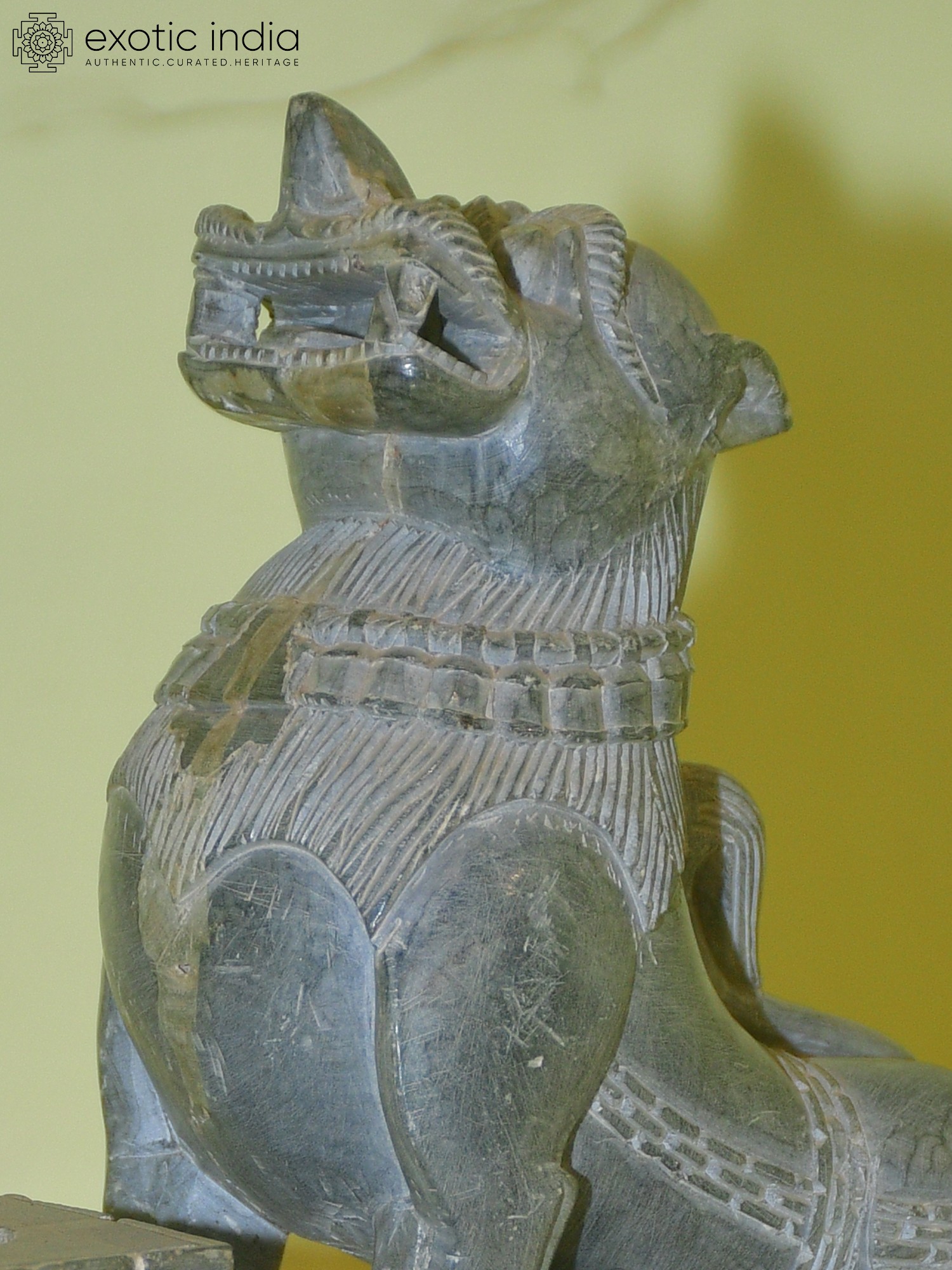 This exquisite stone sculpture captures the very essence of a lion in mid-roar, its powerful presence emanating from the rich, earthy tones of Orissa stone. Expertly hand-carved, each detail speaks of a craftsman's dedication and skill. The lion's head is thrown back, its jaws agape in a mighty roar, revealing sharp, defined teeth. Its mane is rendered with meticulous lines, suggesting both volume and movement, while the texture of the stone lends an air of ancient strength and permanence.