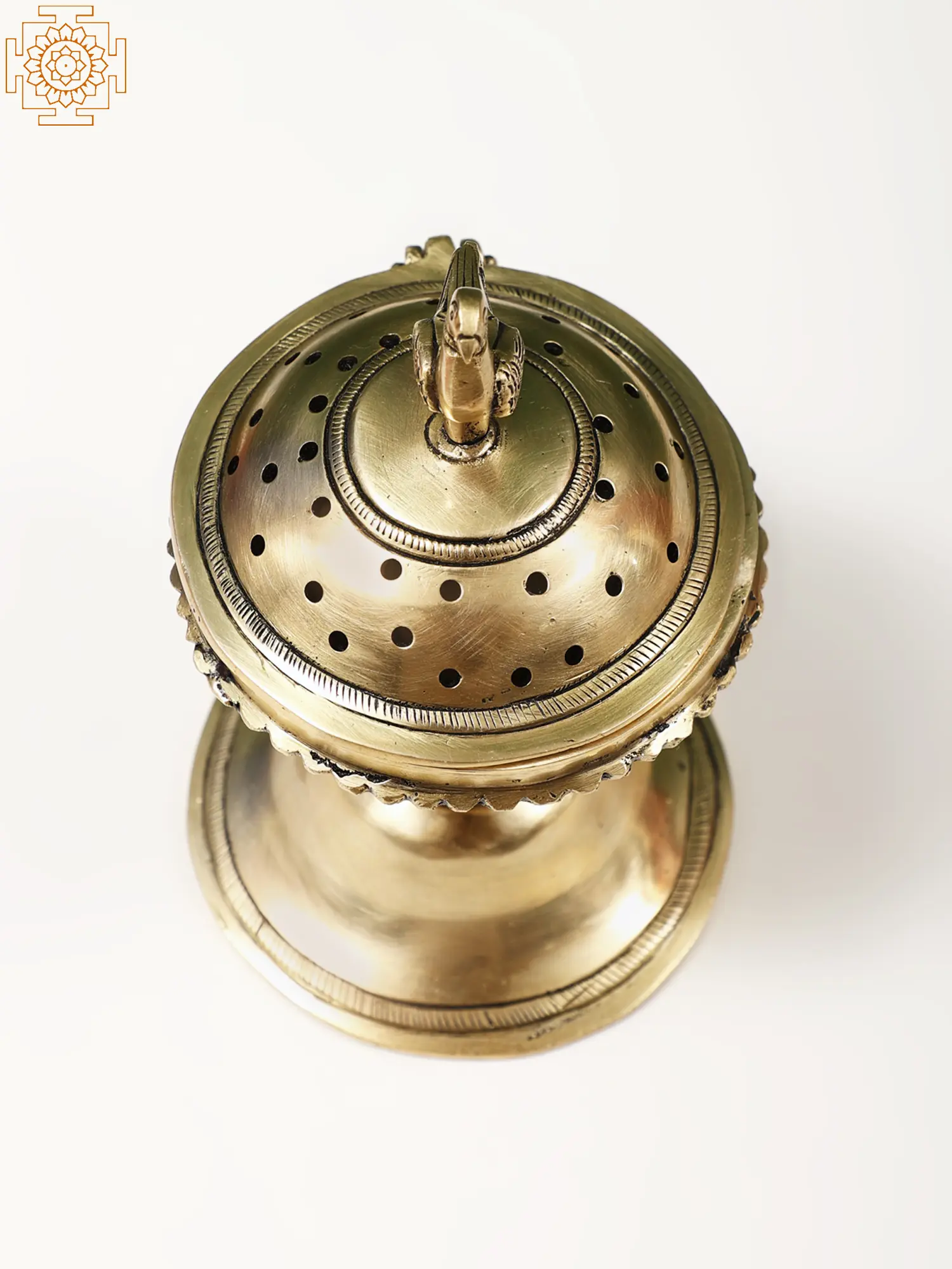 The benefits of Dhuma Pana, or inhaling smoke for health benefits, are stated in Charakh Samhita, a famous Ayurvedic literature. Dhuma Pana is said to be beneficial for treating coughs, colds, and rhinitis, as well as allowing people to breathe more easily. The Dhoop or Dhuma is also used for purification of a space. This Small Brass Incense Burner with a Bird Lid is a graceful fusion of functionality and artistry. Crafted in brass, this burner exudes charm with a delicate bird-shaped lid, adding a touch of whimsy to its design.