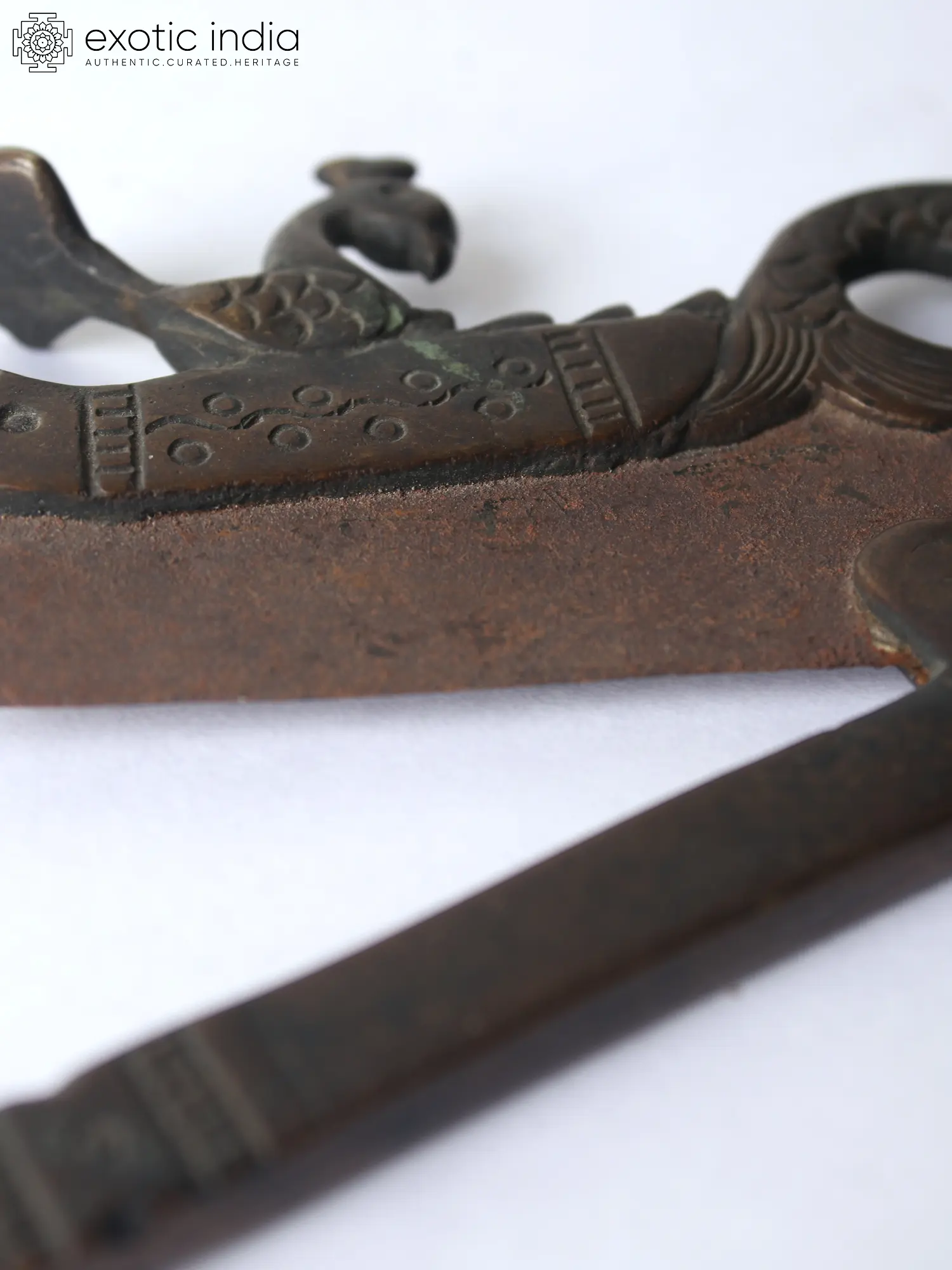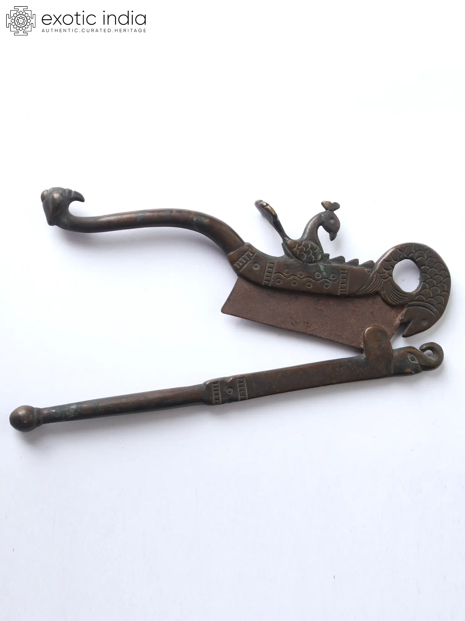 The beauty of this piece lies in its intricate details. A stylized peacock gracefully adorns the top section, its elegant form adding a touch of regal charm. The peacock, a symbol of beauty and immortality, is rendered with careful attention to detail. On the opposite end, a fish motif completes the design, lending a sense of balance and harmony. The fish, an age-old symbol of abundance, and its scale patterns, is stylized with a circular, hollow center, adding an intricate touch. The handle culminates in an animalistic claw detail, adding to the piece's unique character. These thoughtful design choices make this nutcracker far more than just a tool – it's a miniature sculpture that brings a touch of artistry to everyday life.