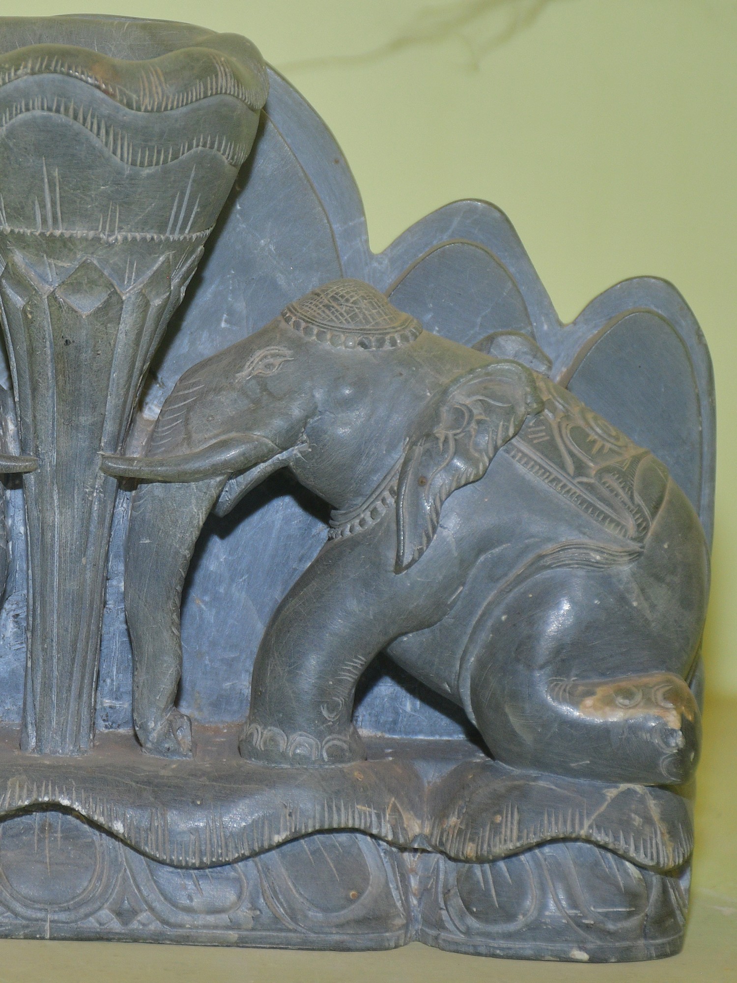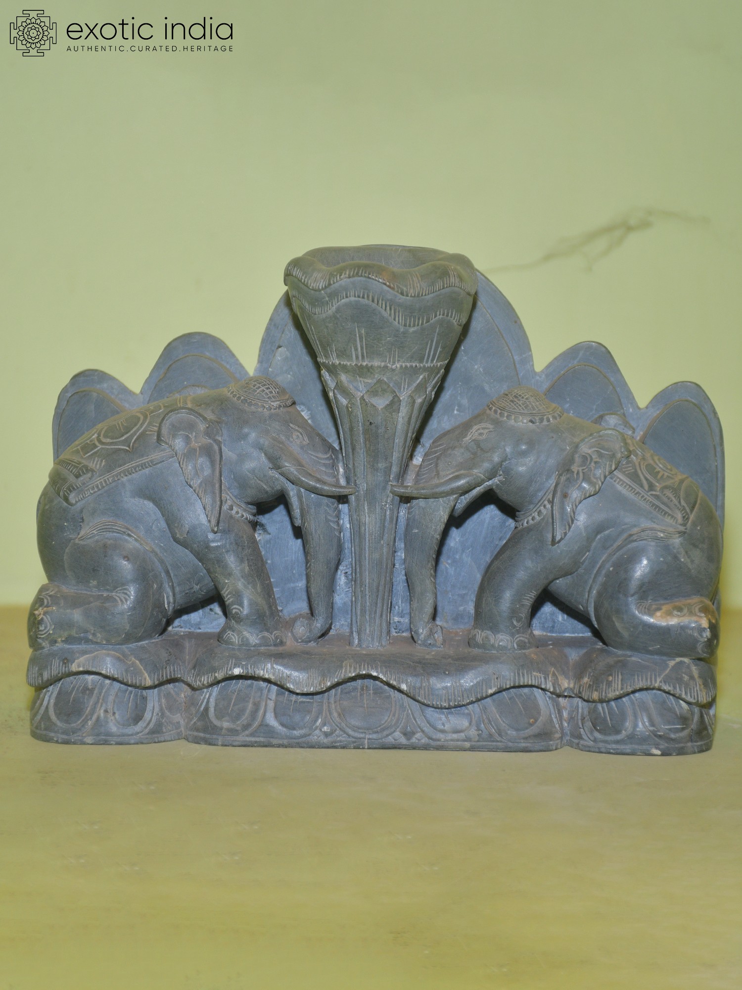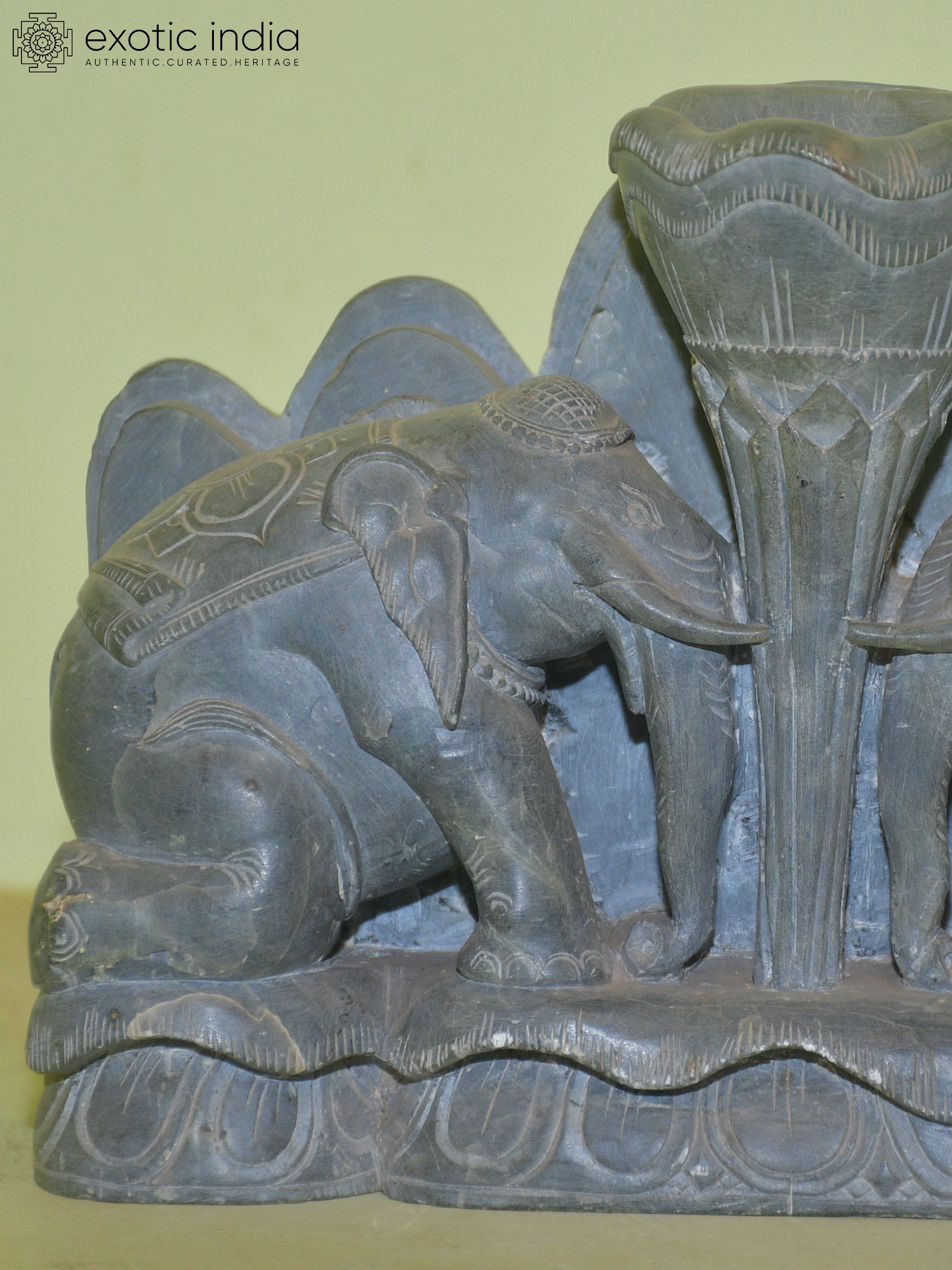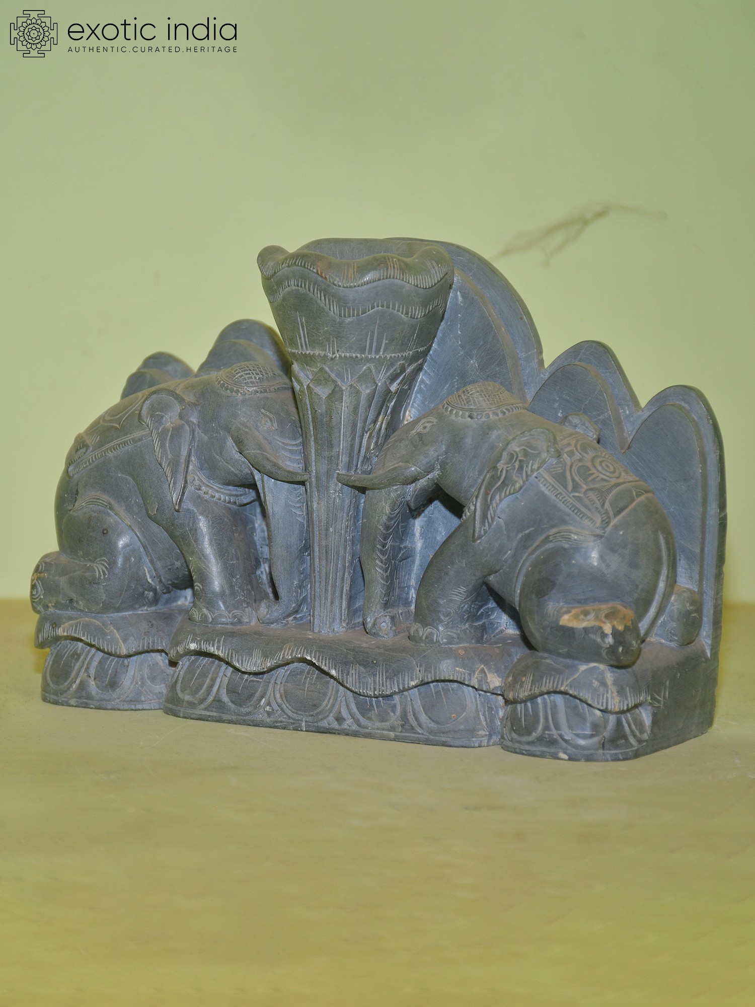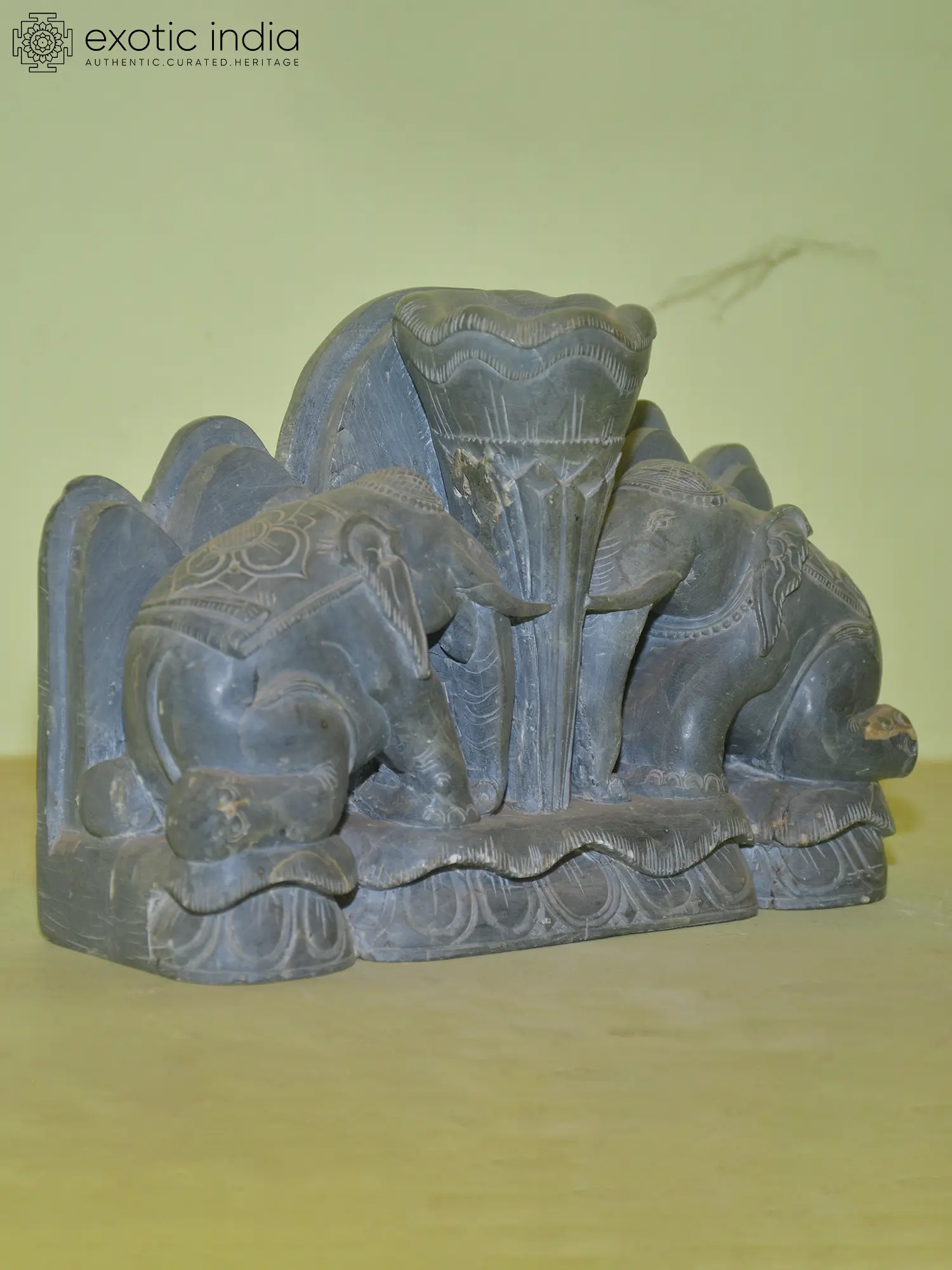 12" Decorative Elephant with Upraised Trunk | Brass Statue with Inlay Work