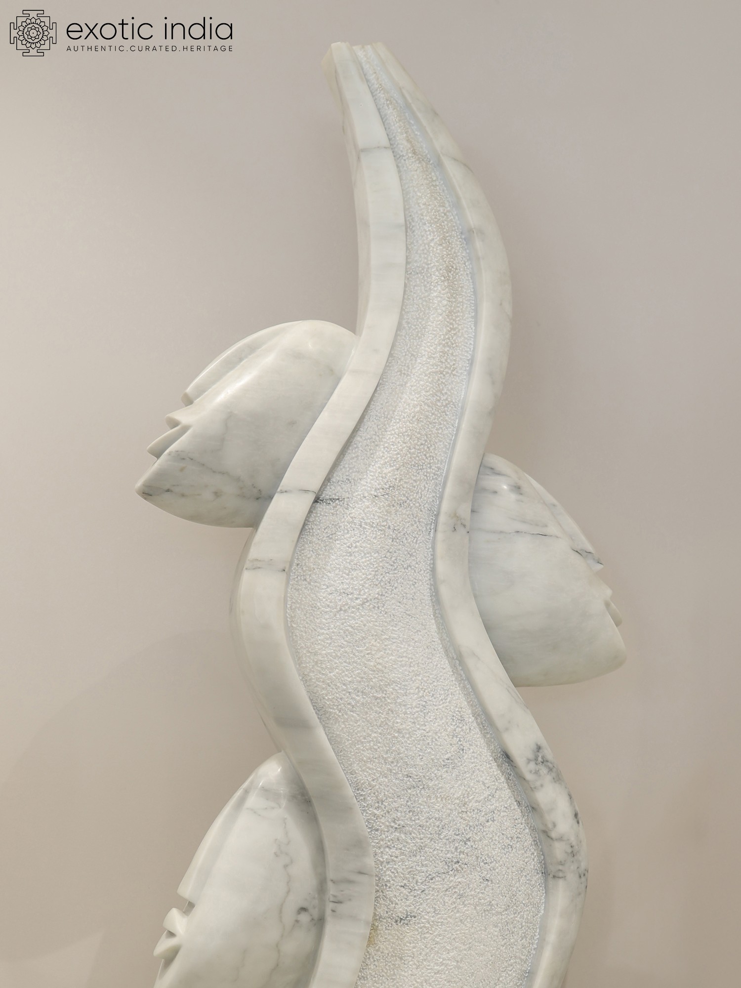 42" Serpent Guardian | abstract Art Statue | White Marble | Exquisite Indian Art