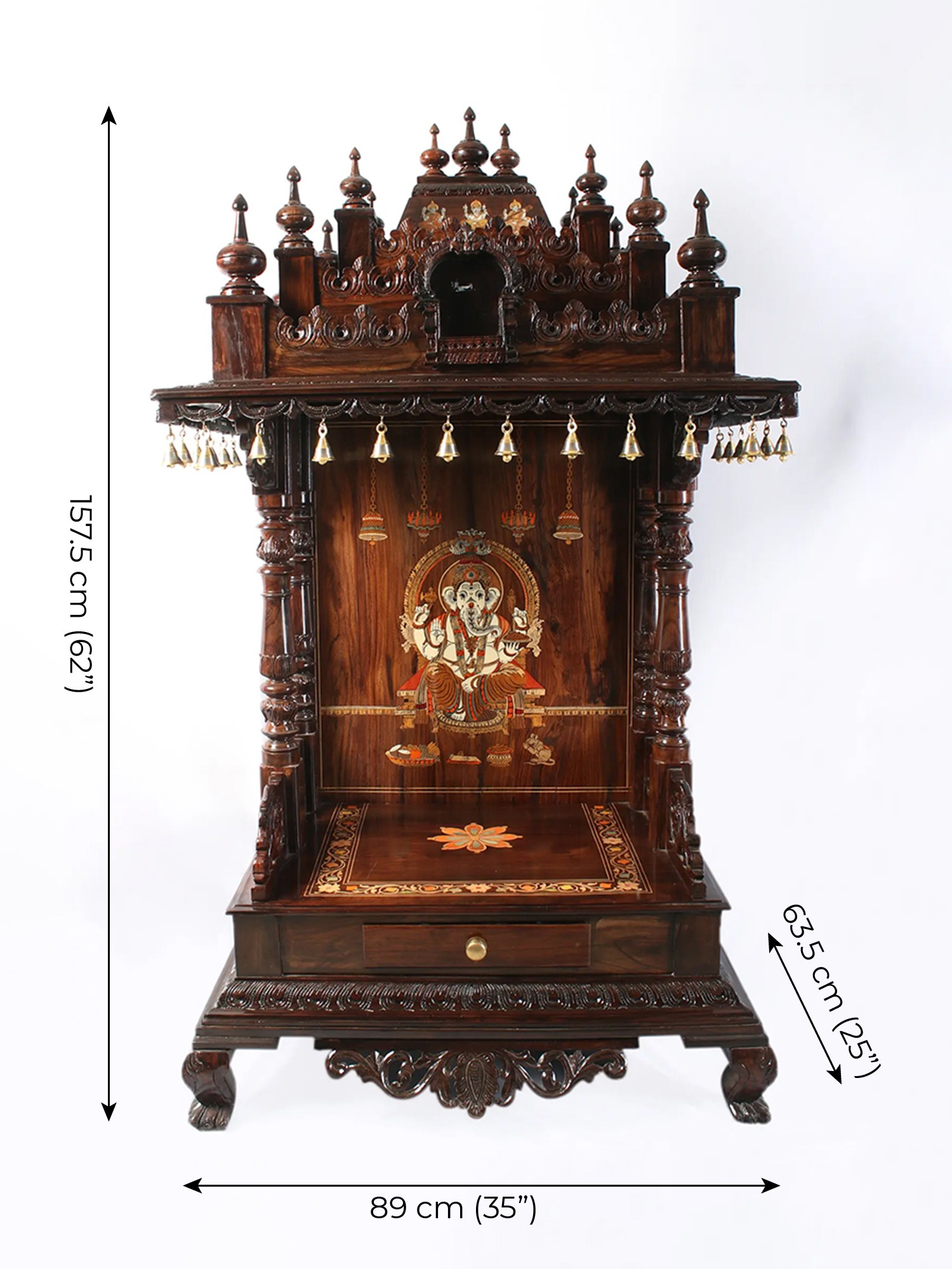 53" Large Designer Wooden Temple with Lord Ganesha Inlay