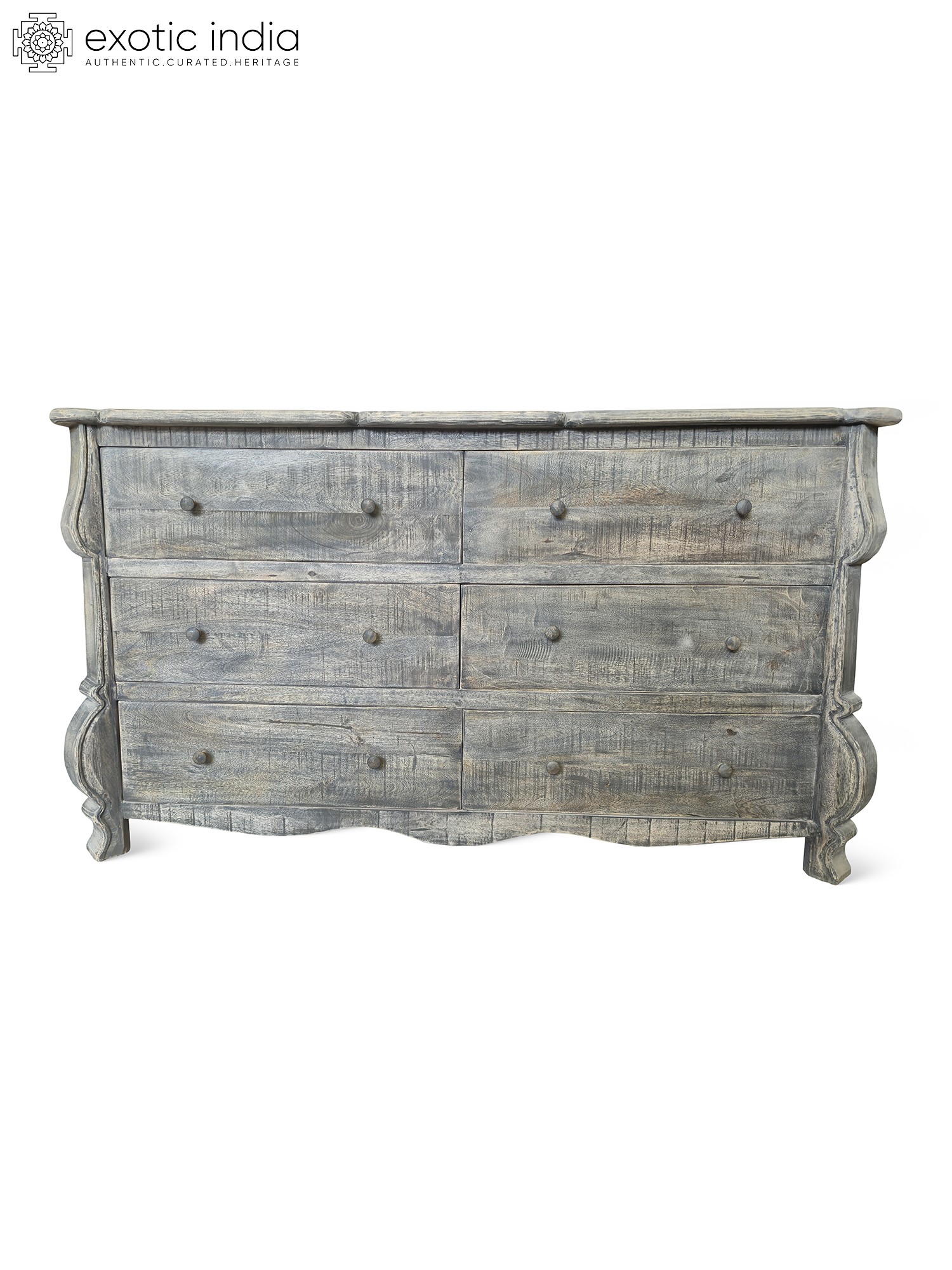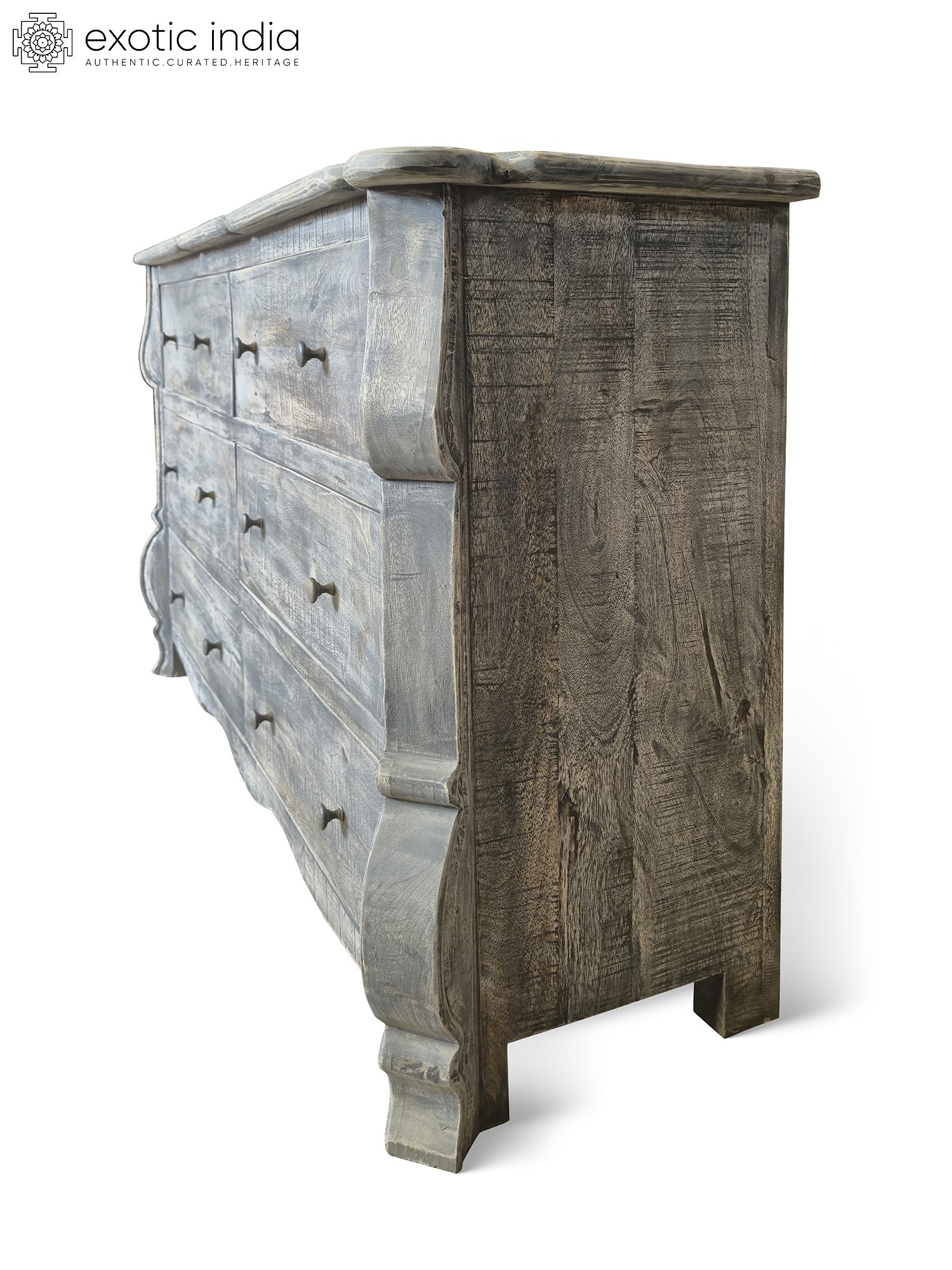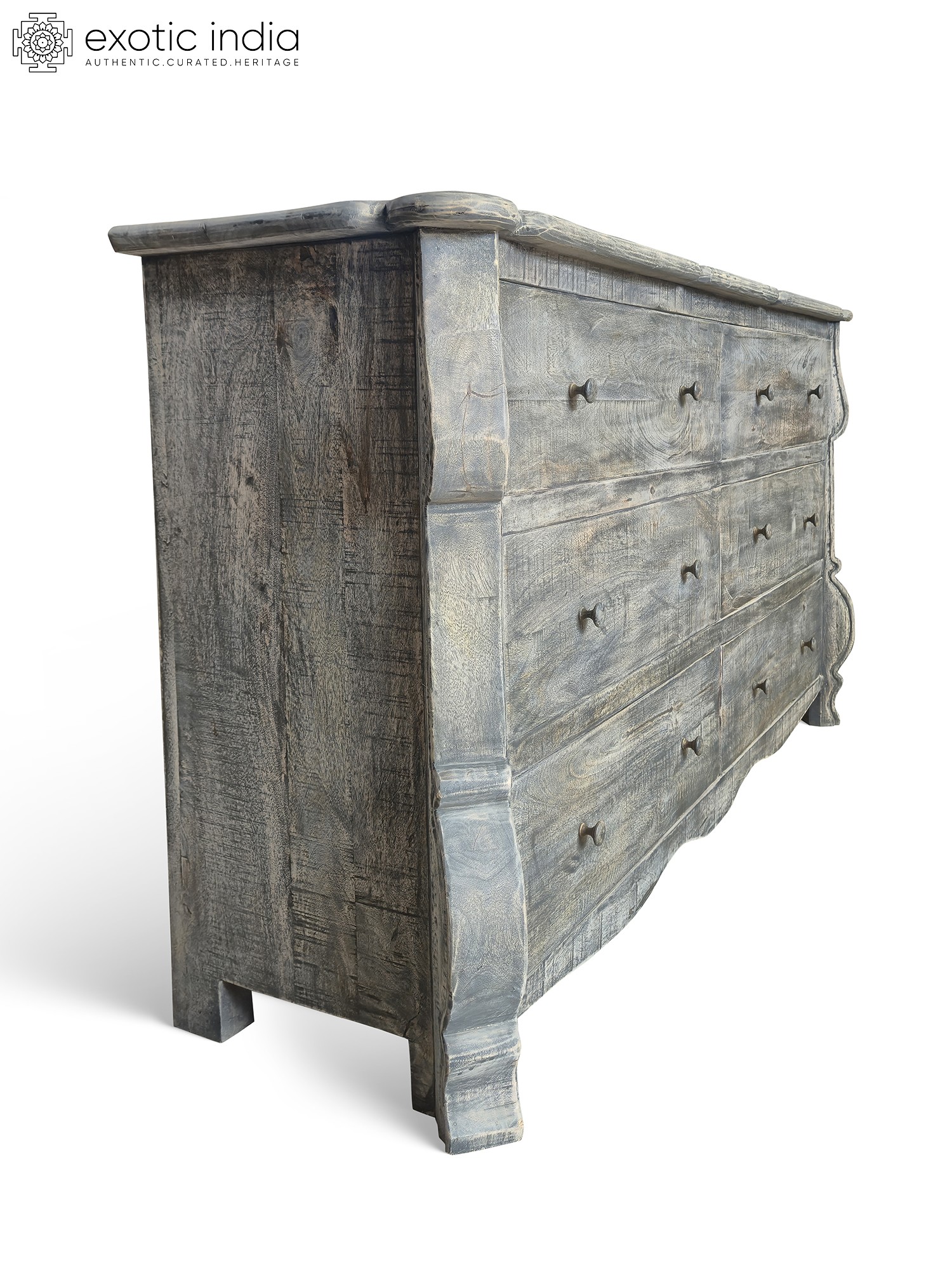64" Reclaimed Wood Hand Carved Multi Drawer Cabinet