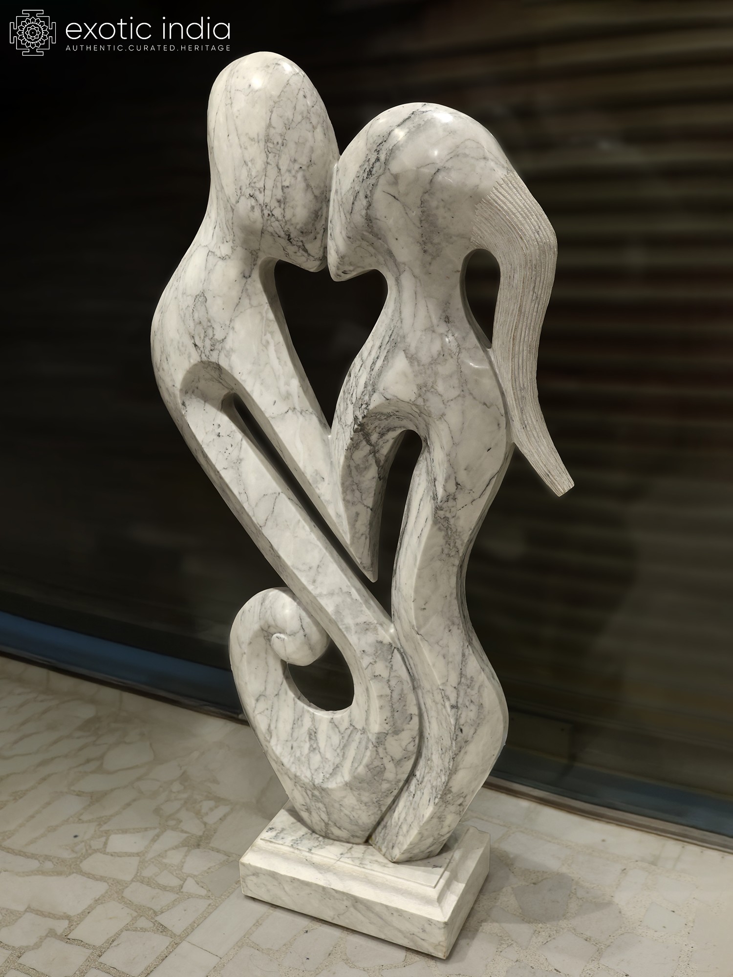 71" Bound By Love | Abstract Art Statue | White Marble | Exquisite Indian Art
