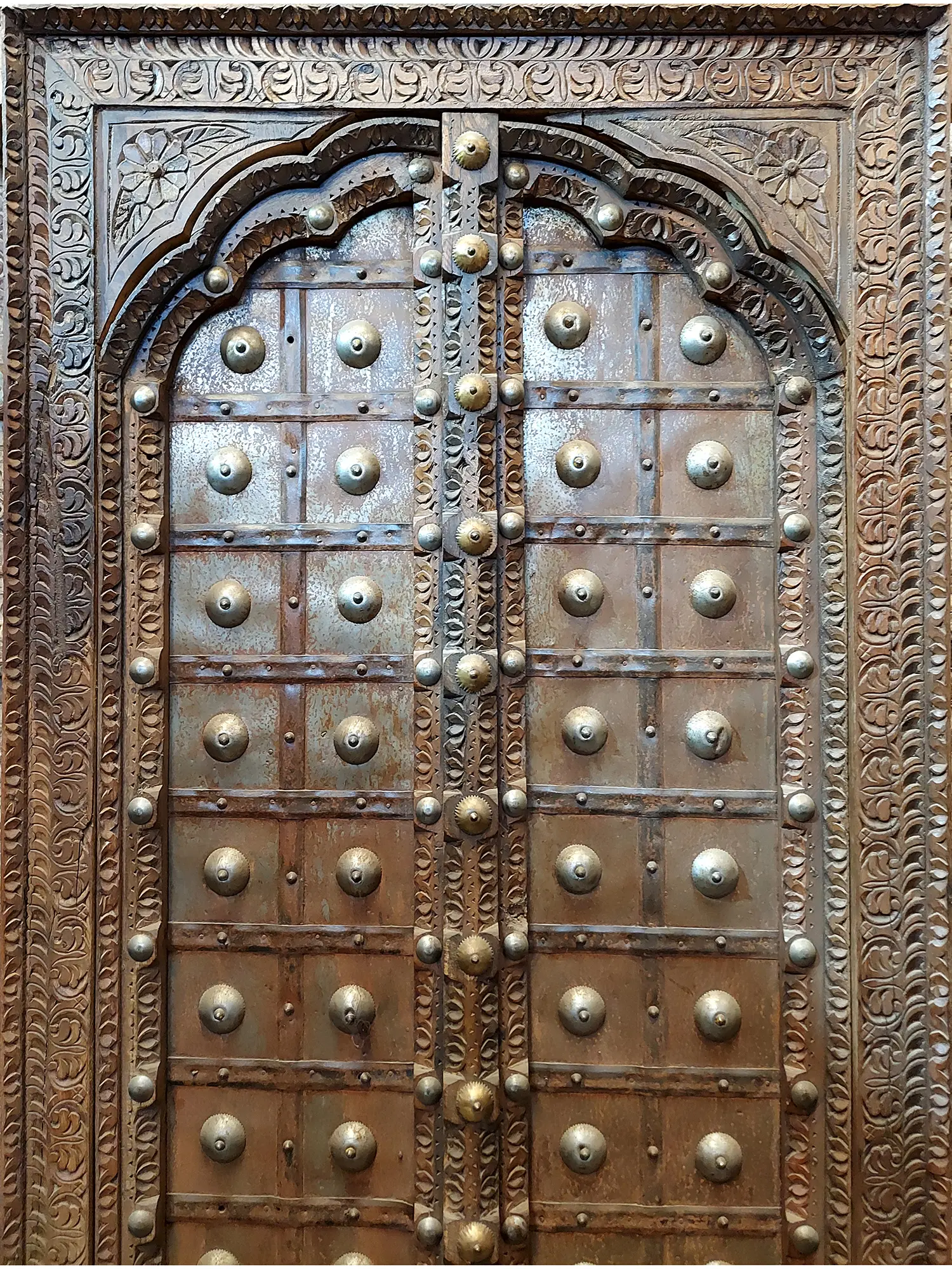 77" Large Indian Village Traditional Flower Pattern Wood Door