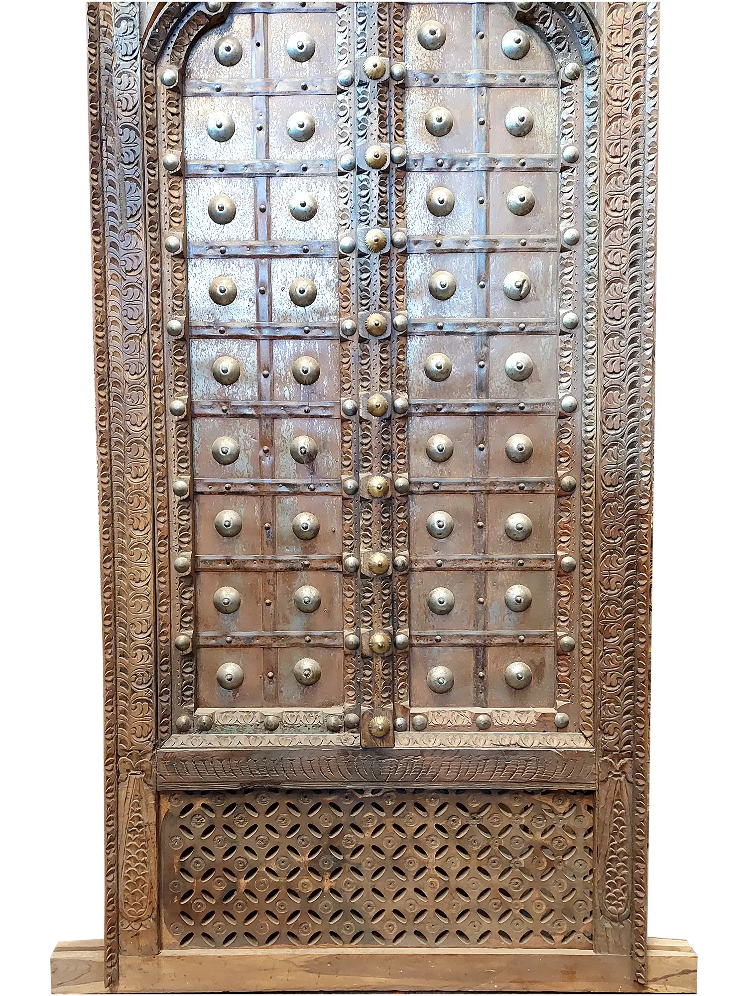 97" Large 100 Years Old Traditional Wood Door And Flower Design In Upper Side