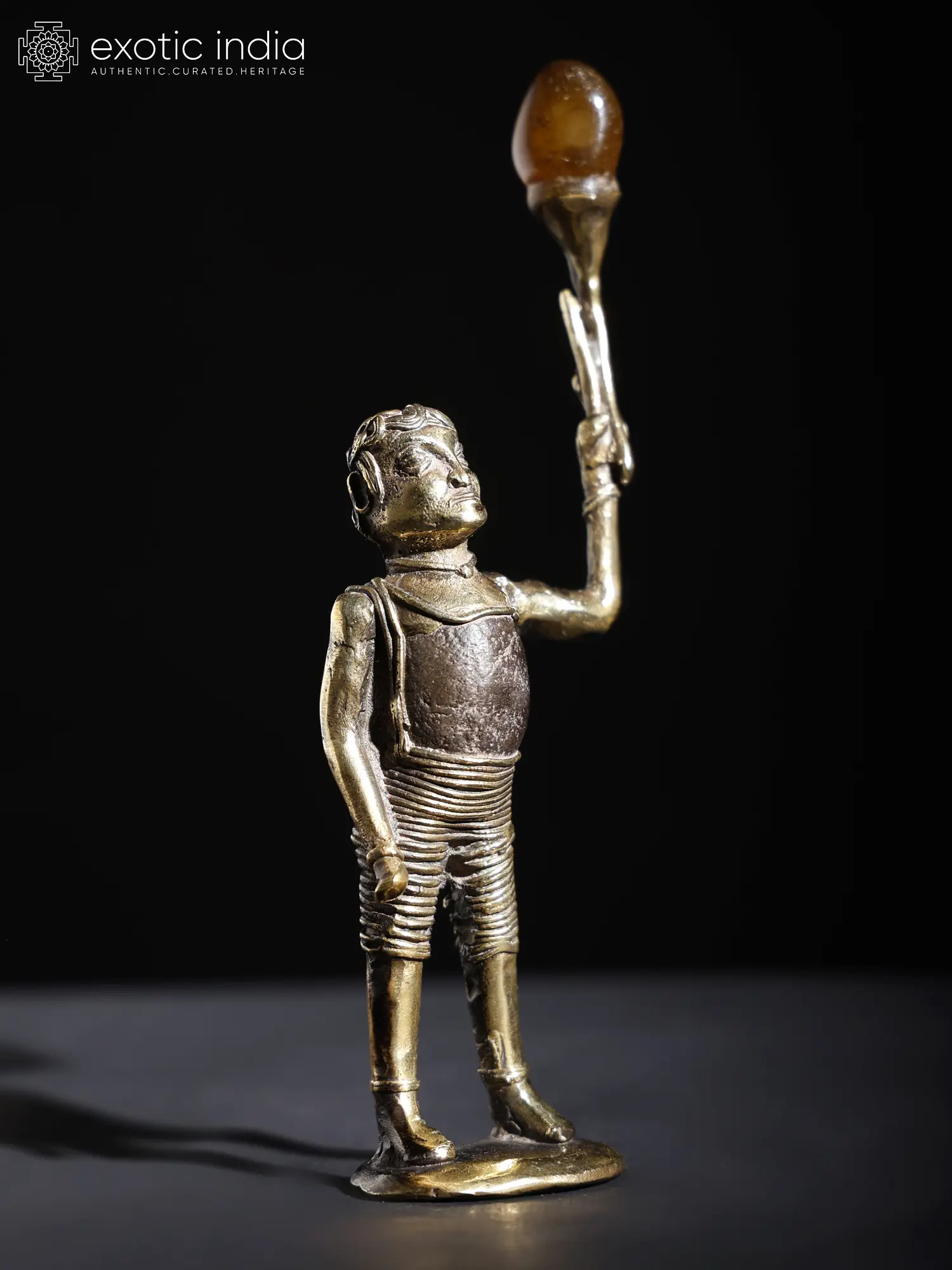 The sculpture, crafted in the Dhokra style, likely reflects the artist's desire to capture the whimsical yet poignant narrative of the film, where a red balloon takes on a life of its own, symbolizing freedom, innocence, and companionship. Just as the balloon accompanies the little boy through the streets of Paris, the sculpture captures the essence of this enduring tale, inviting viewers to ponder themes of friendship, imagination, and the beauty of fleeting moments in life.