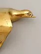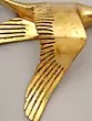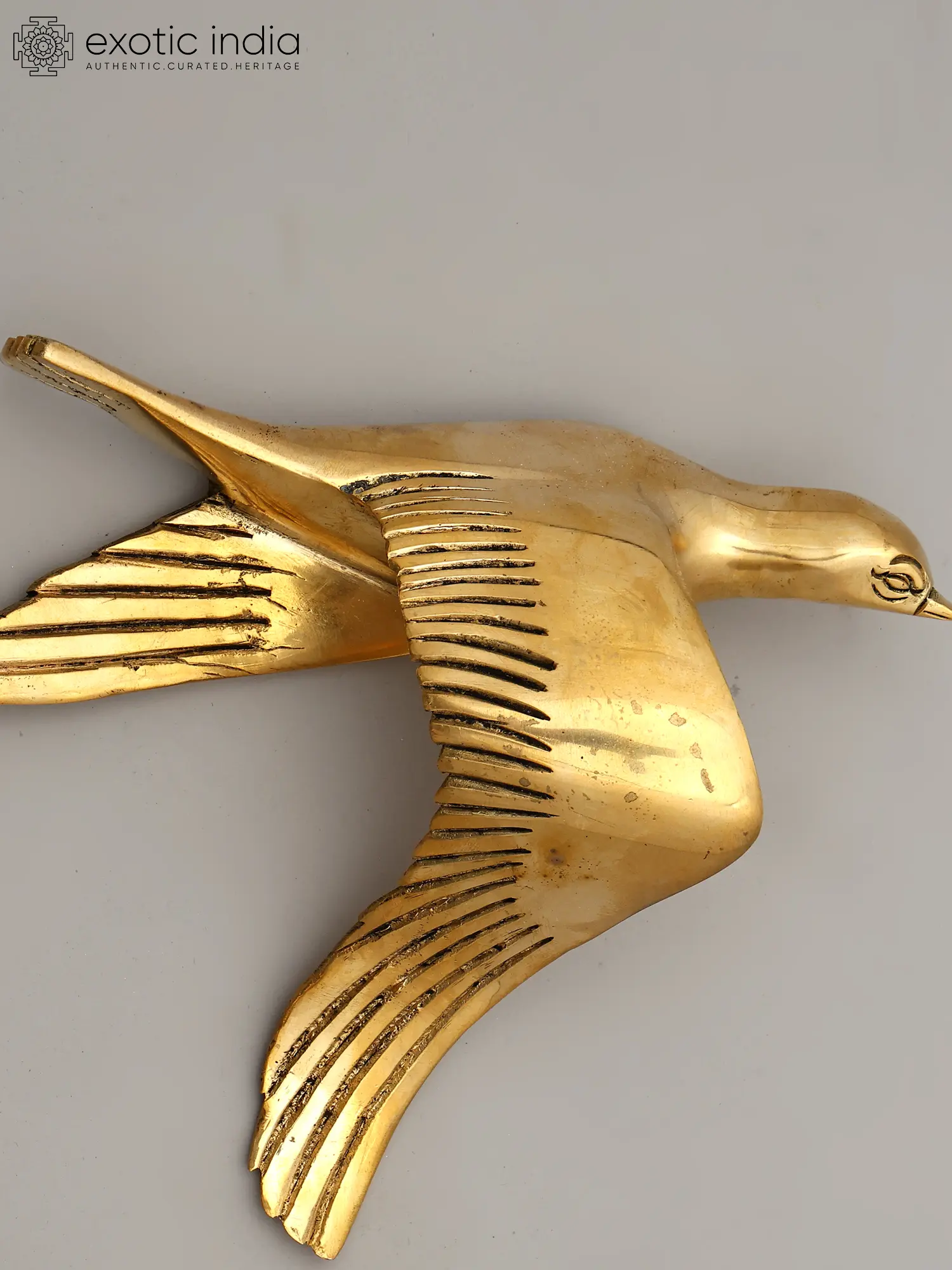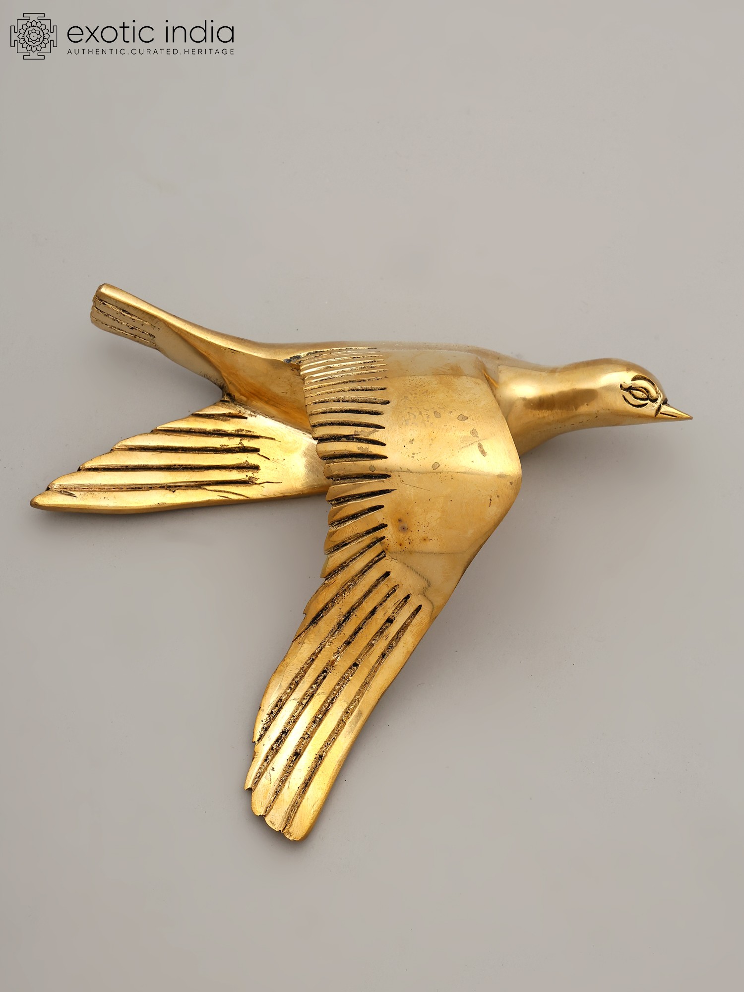 The artisan's hand is evident in every sculpted detail of this flying bird. The wings, fanned out with precision, feature delicate incised lines that mimic the intricate structure of feathers, creating a sense of dynamic movement. The body is smooth and polished, reflecting light and adding to its opulent appeal. The head is poised, with a subtle yet distinctive eye that adds a spark of life to the static form. The craftsmanship involved in bringing this brass sculpture to life is a testament to the enduring legacy of traditional metalworking techniques, passed down through generations. ––––––––––