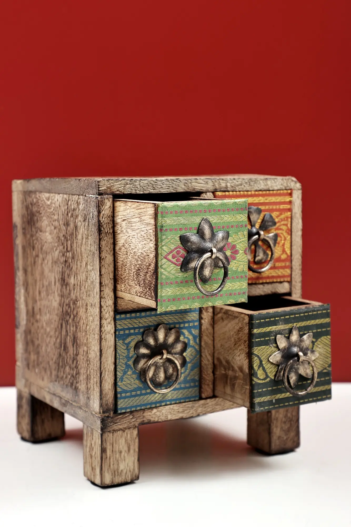 This “Wooden Box”, is a tribute to artisanal prowess. It stands as a masterpiece of elegance carved from the soulful embrace of “Mango Wood”.