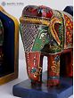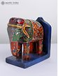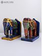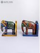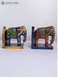 Bring a vibrant splash of Indian artistry to your living space with this exquisite pair of decorative elephants. Meticulously handcrafted from wood, these aren't just bookends; they're statement pieces that infuse your décor with a unique cultural flair. Each elephant is adorned with intricate hand-painted details, showcasing a rich tapestry of colors and traditional motifs. The deep blues and warm reds are beautifully complemented by the dazzling gold accents, creating a visually captivating display. These charming elephants are sure to spark conversation and add a touch of exotic elegance to your shelves, mantelpiece, or any corner that needs a burst of personality.