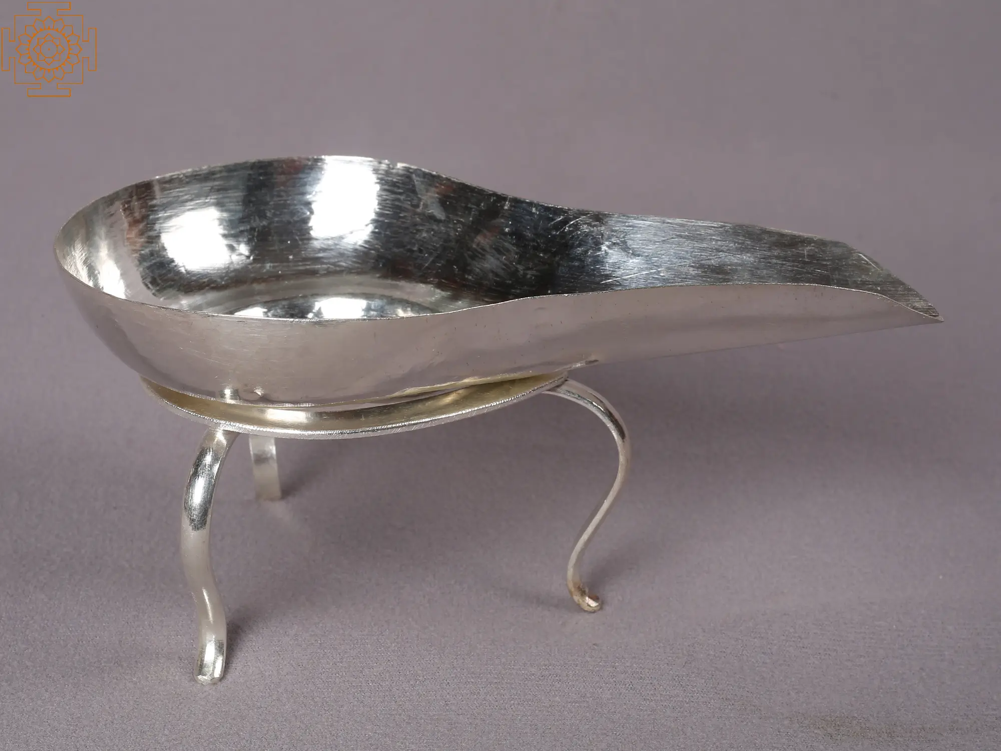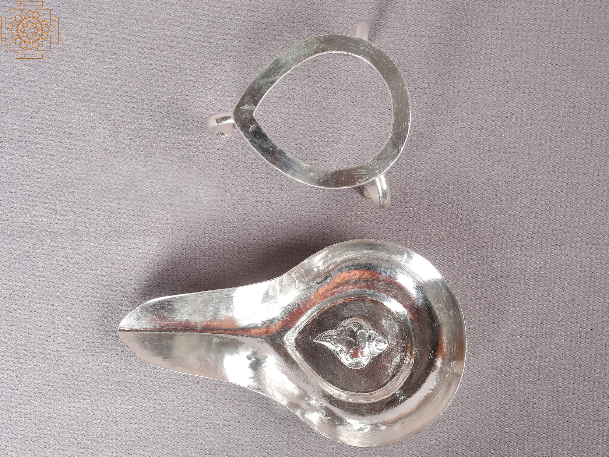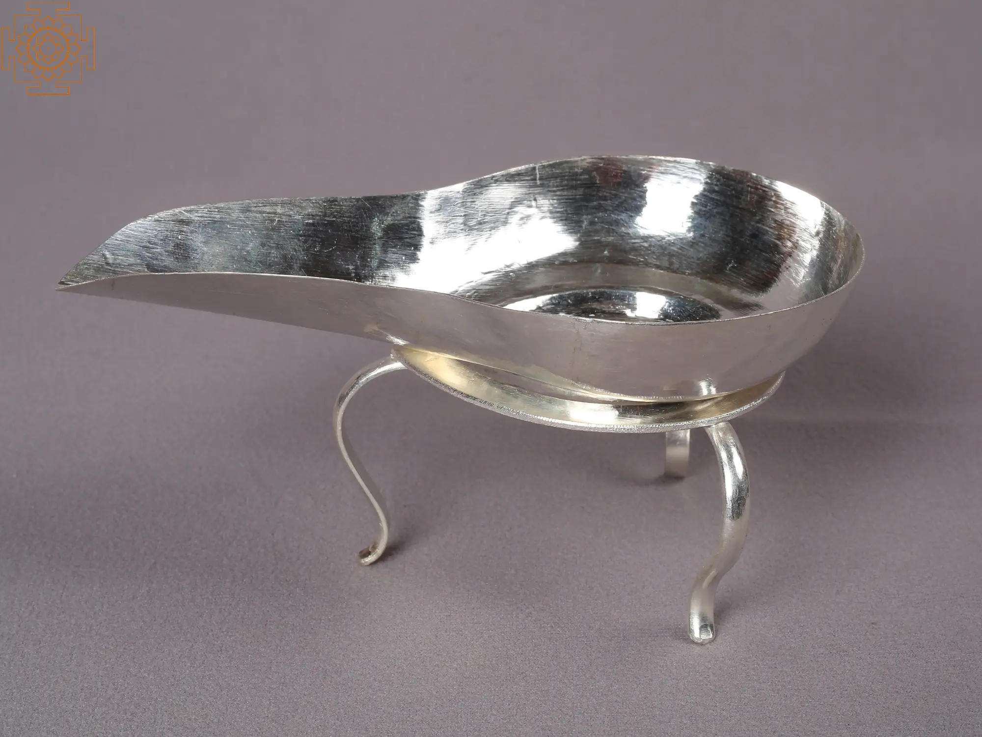 Introducing you to the silver shank design on Deepak with a stand from Nepal, it is a harmonious blend of spirituality and artistic excellence. Crafted with meticulous details and cultural significance, this Deepak (oil lamp) embodies the traditional artistry of Nepalese craftsmanship. The Deepak is intricately designed with the shank conch shell) motif, symbolizing purity and auspiciousness in Hindu traditions. The stand holds the Deepak security, creating a stunning centerpiece for worship or meditation.